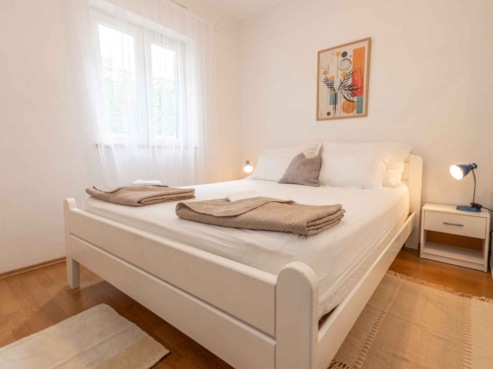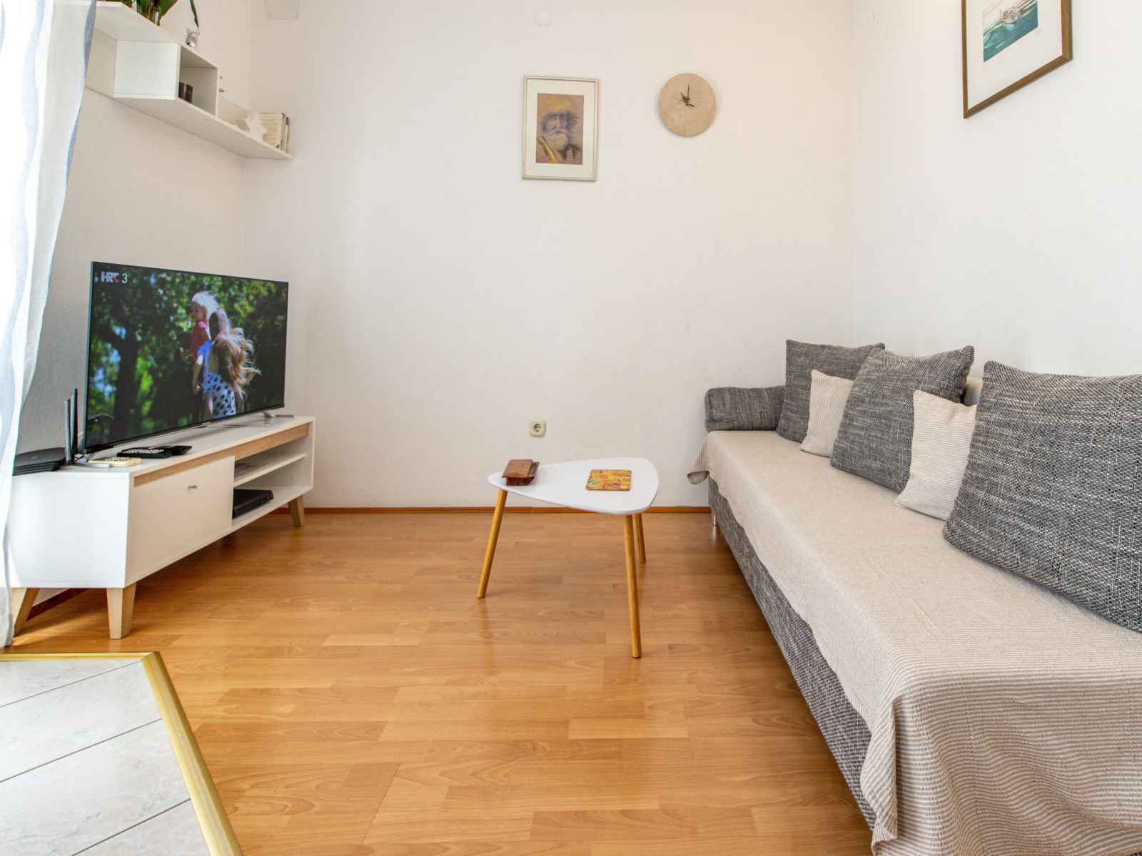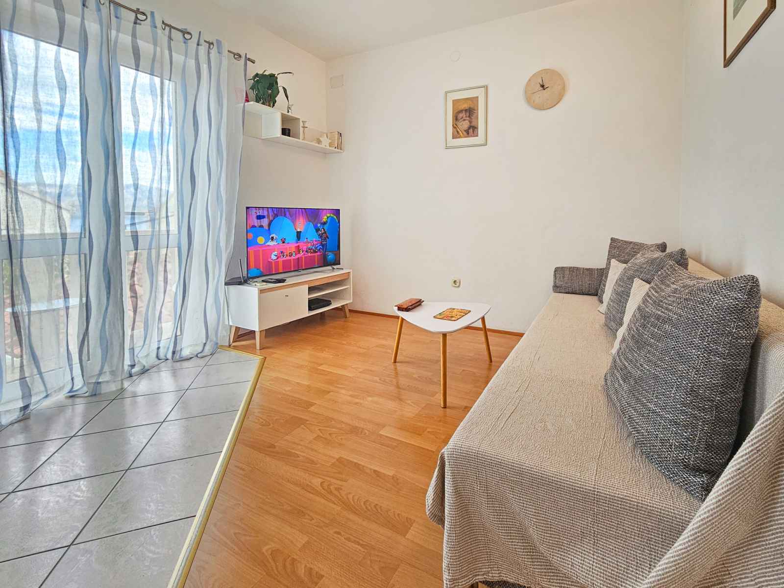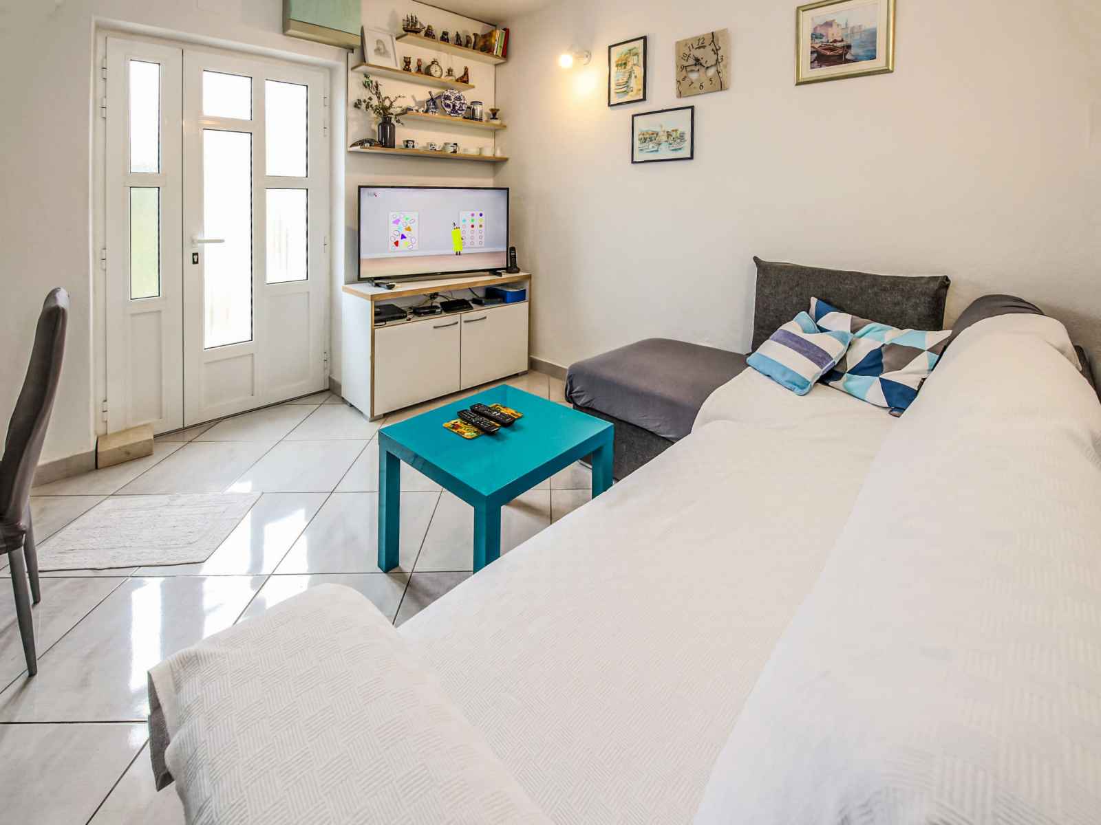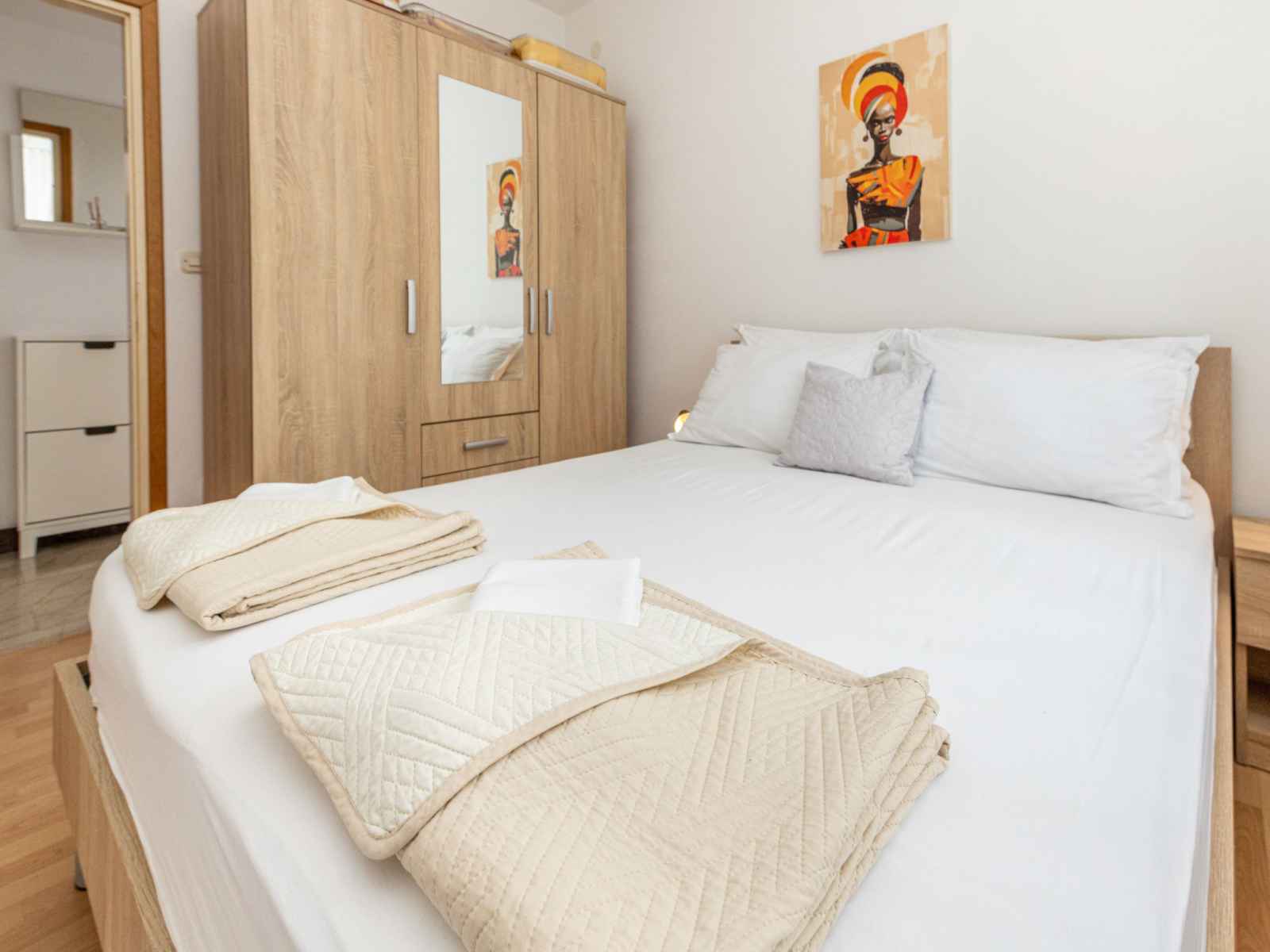 séjour/salle à manger avec 1 divan-lit, TV (satellite) et air-conditionné. Sortie sur le balcon. 1 chambre avec 1 lit double. 1 chambre avec 2 lits. Cuisine ouverte (4 plaques de cuisson, four, grille-pain, cafetière électrique). Douche/WC. Pas de chauffage. 2 balcons, terrasse. Meubles de terrasse, mobilier de balcon. Vue sur la mer. A disposition: Internet (Connexion WIFI, gratuit). Veuillez noter: maison non-fumeur.