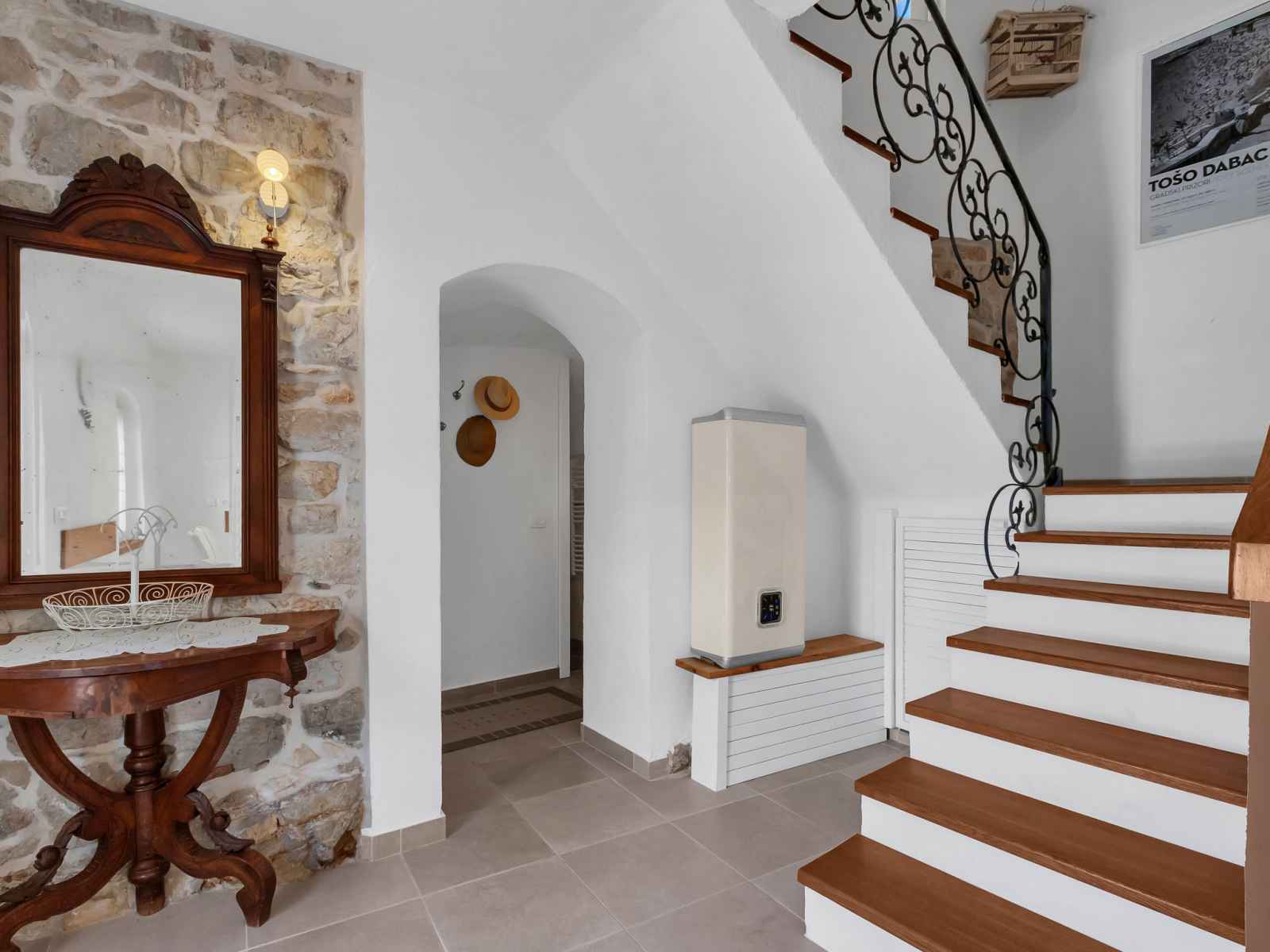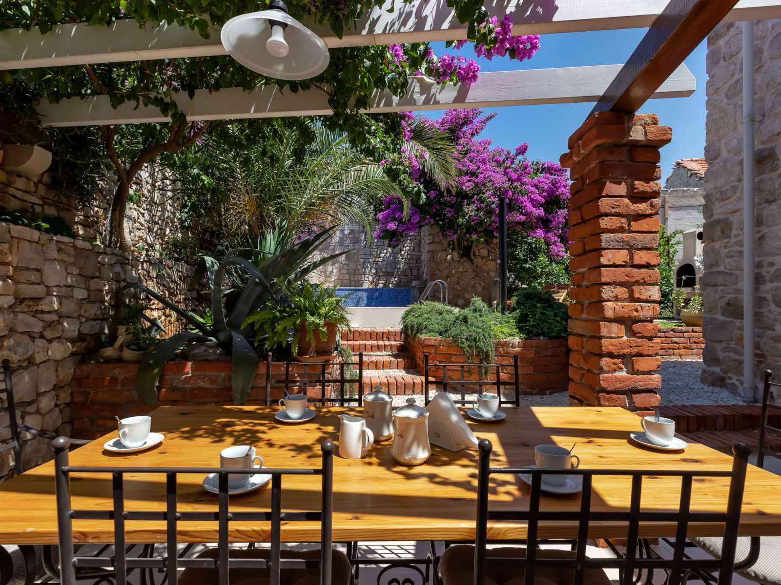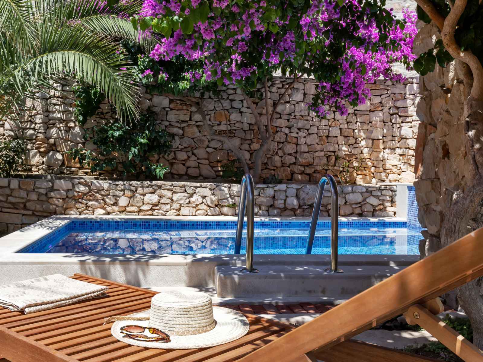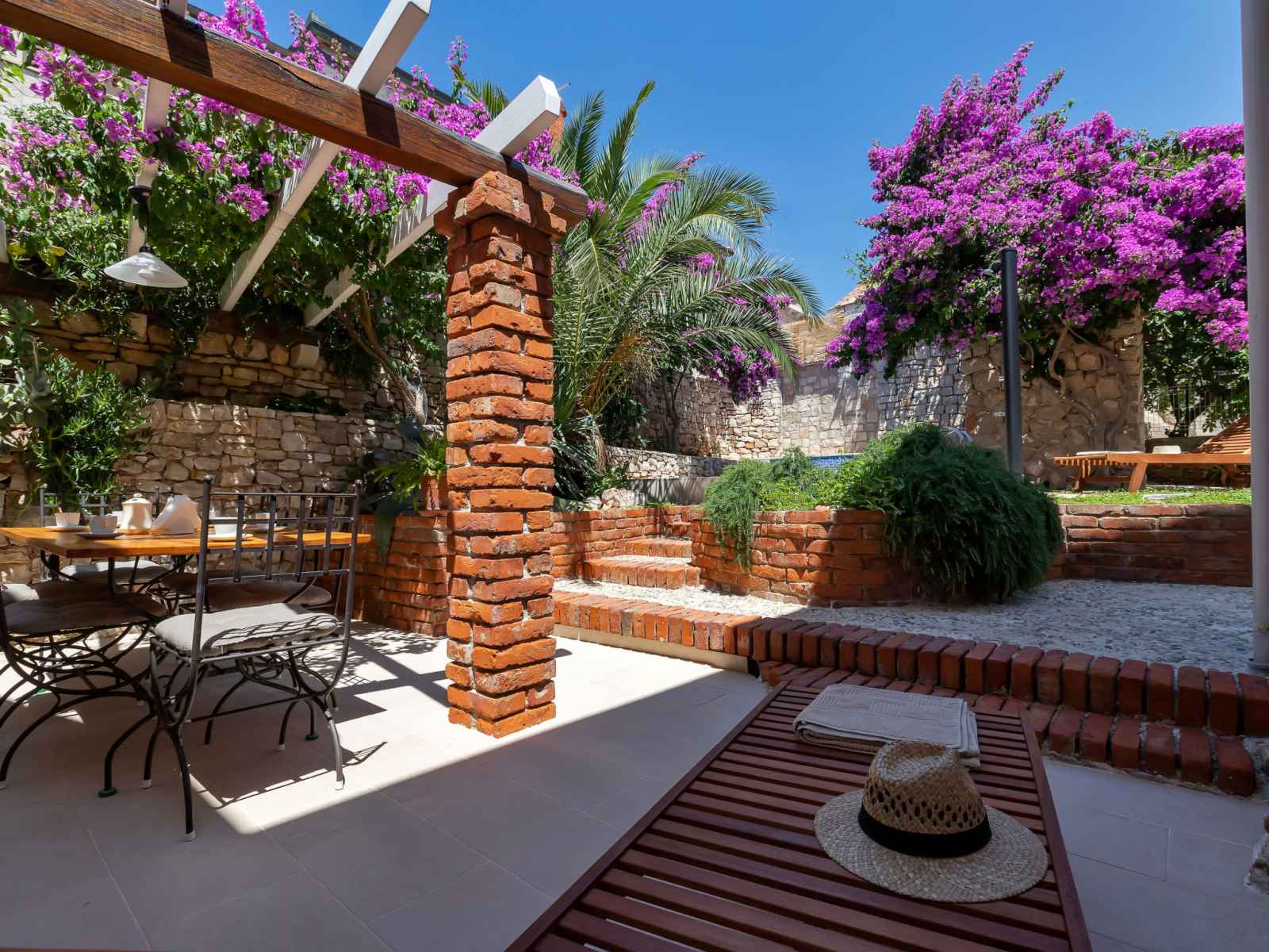 Maison individuelle "marijan", de 2 étages. situation ensoleillée, excellente situation: centrale mais tranquille, au cœur de la ville, à 50 m de la mer, à 50 m de la plage. a usage privé: terrain 120 m2 (clôturé), jardin sur plusieurs niveaux entretenu, piscine rectangulaire, chauffée (4 x 3 m, 14 m2, profondeur 150 cm, disponibilité