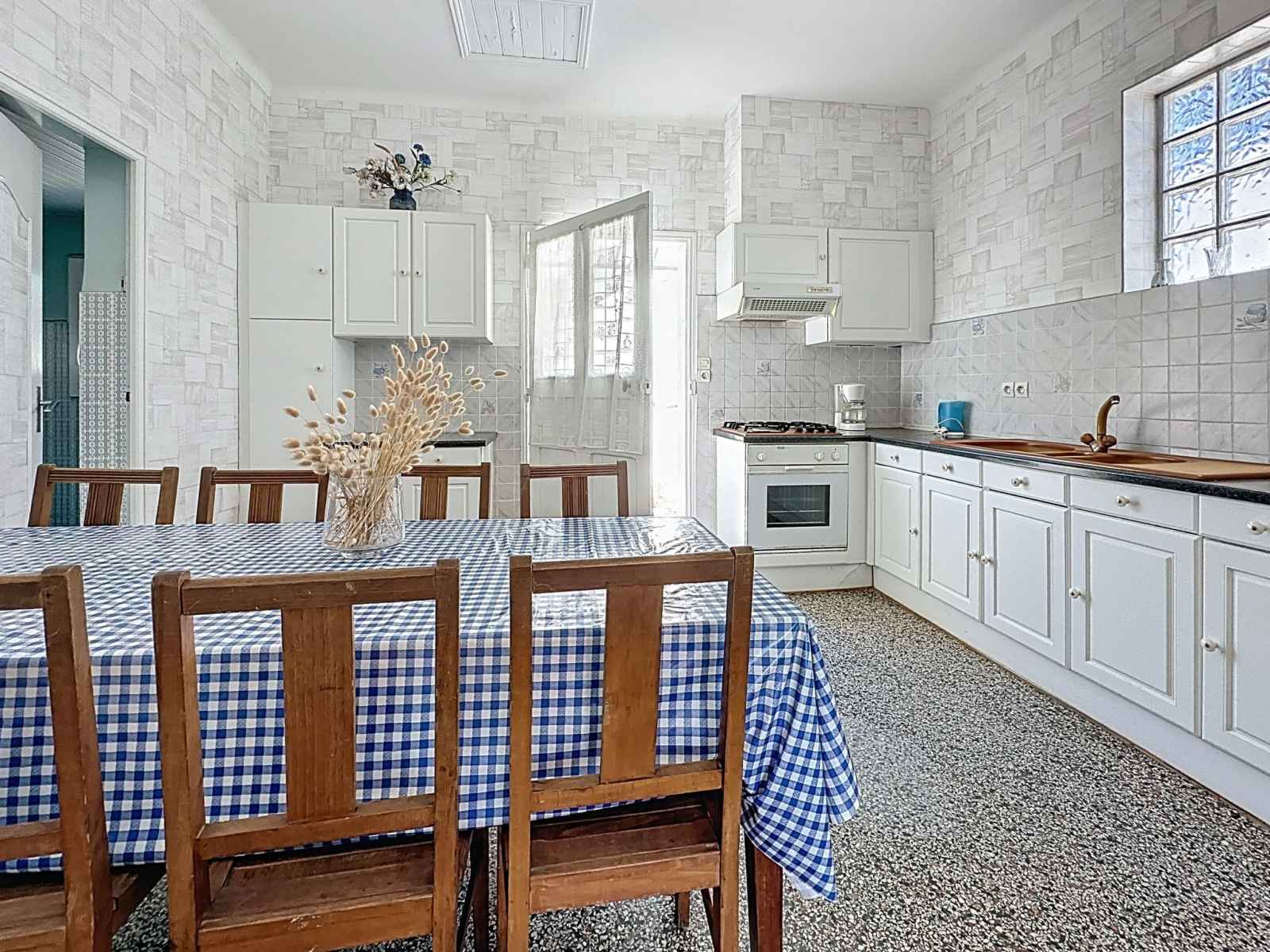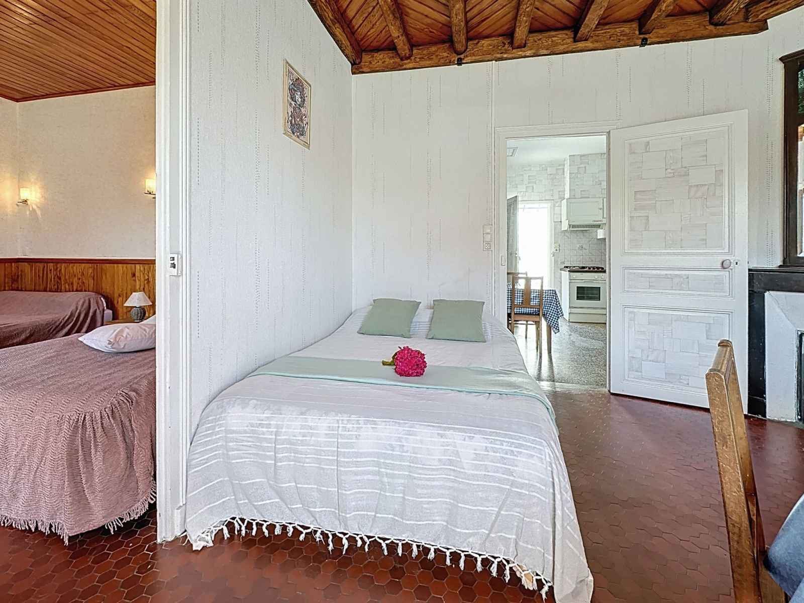 "brin de muguet", maison 3 pièces 50 m2. aménagement rustique: séjour/salle à manger avec 1 grand-lit (1 x 140 cm, longueur 190 cm), tv (écran plat). 1 chambre avec 2 grands-lits (140 cm, longueur 190 cm). 1 petite chambre avec 1 grand-lit (140 cm, longueur 190 cm), lavabo. sortie sur le jardinet. cuisine (4 plaques de cuisson, four,