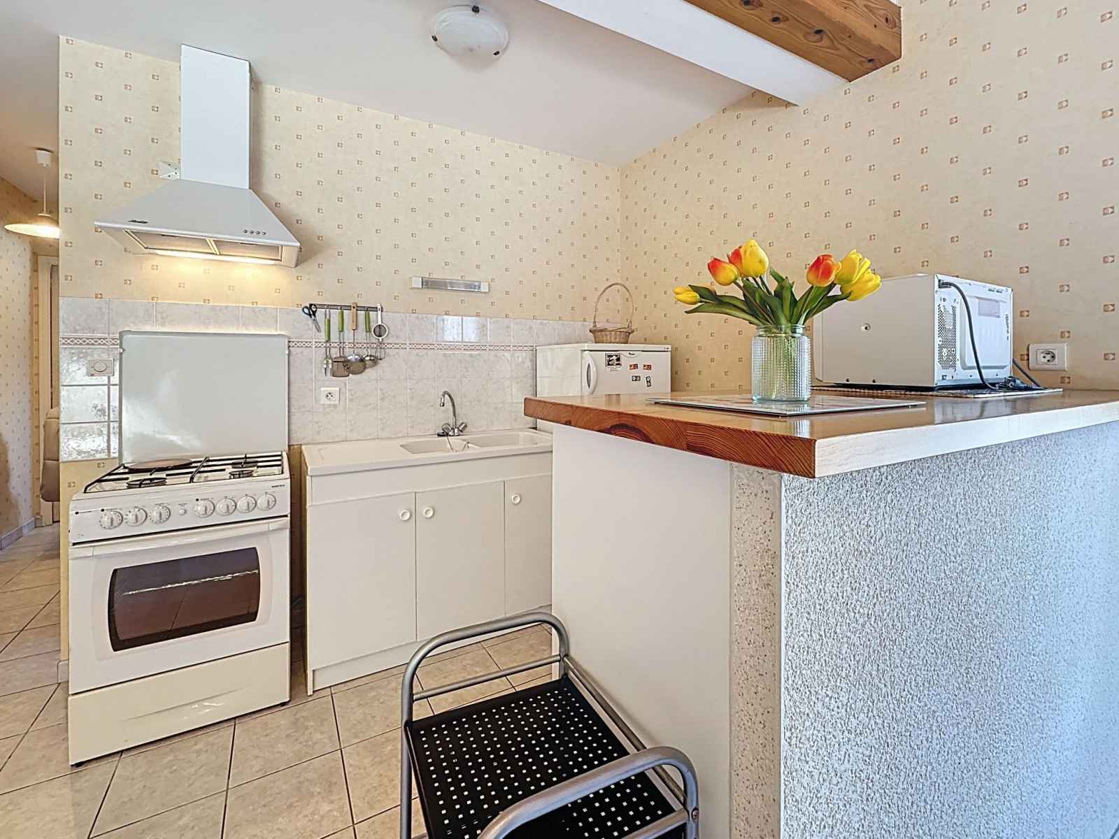 Maison 2 pièces 50 m2. logement idéal pour 2 adultes + 2 enfants. aménagement rustique: séjour/chambre à coucher avec 1 divan-lit double (140 cm, longueur 190 cm), tv (écran plat). sortie sur la terrasse. 1 chambre avec 1 grand-lit (140 cm, longueur 190 cm). coin cuisine (4 plaques de cuisson, grille-pain, bouilloire électrique,