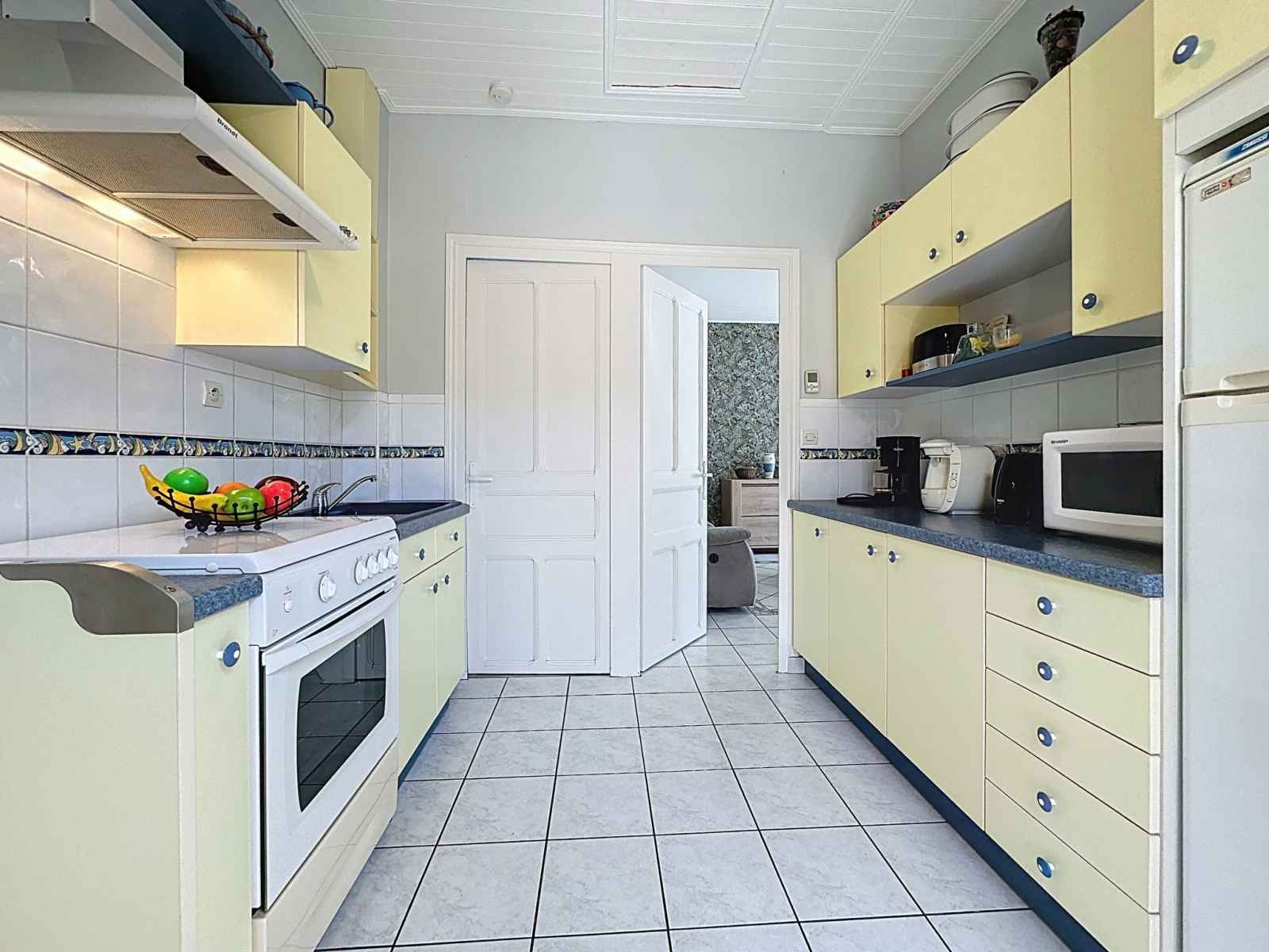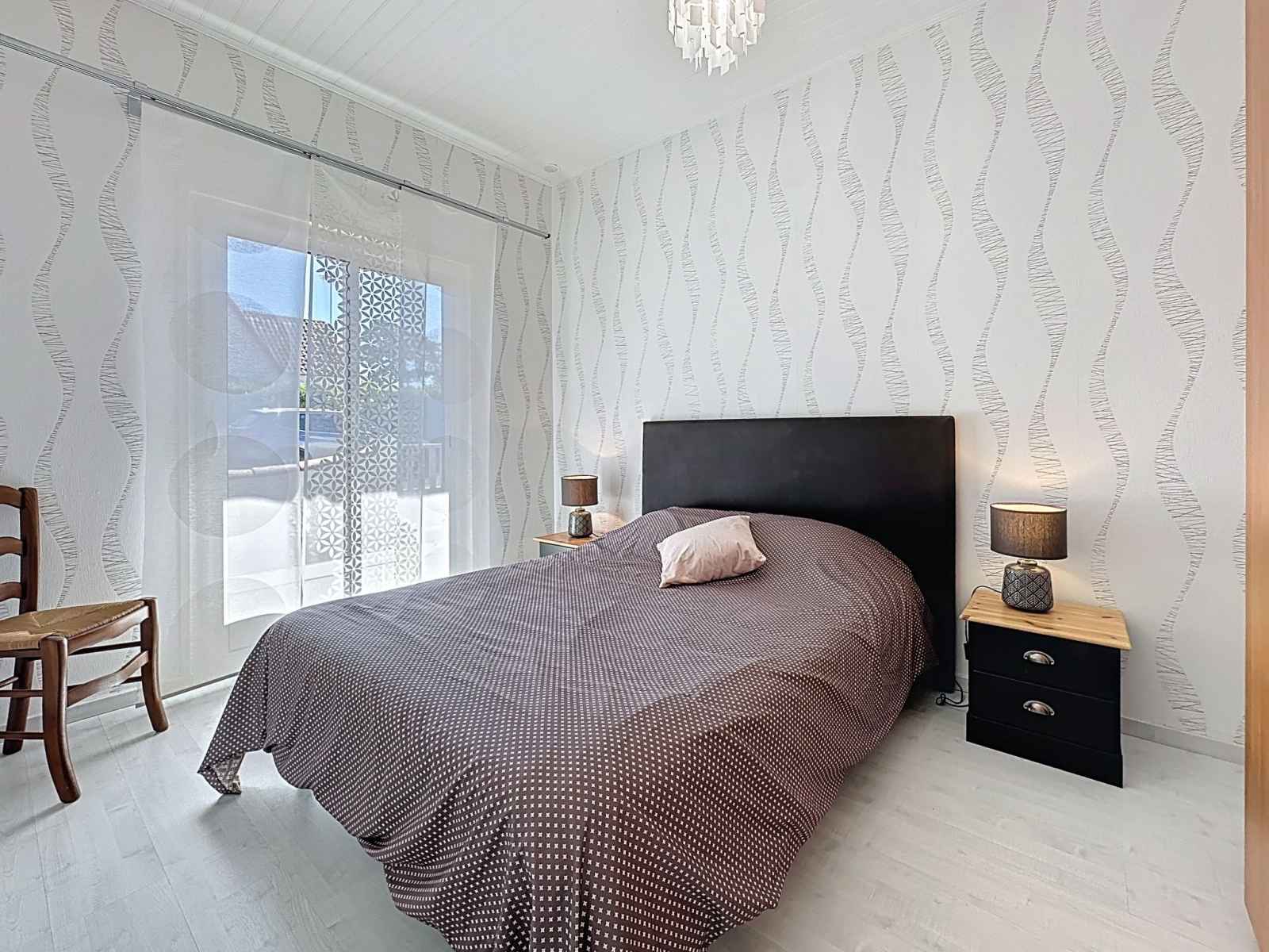 "ker eric", maison 3 pièces 50 m2. aménagement plaisant: séjour/salle à manger avec tv (écran plat). sortie sur le jardinet. 1 chambre avec 1 grand-lit (140 cm, longueur 190 cm). 1 chambre avec 1 grand-lit (1 x 160 cm, longueur 200 cm). cuisine (4 plaques de cuisson, four, grille-pain, bouilloire électrique, micro-ondes, congélateur,