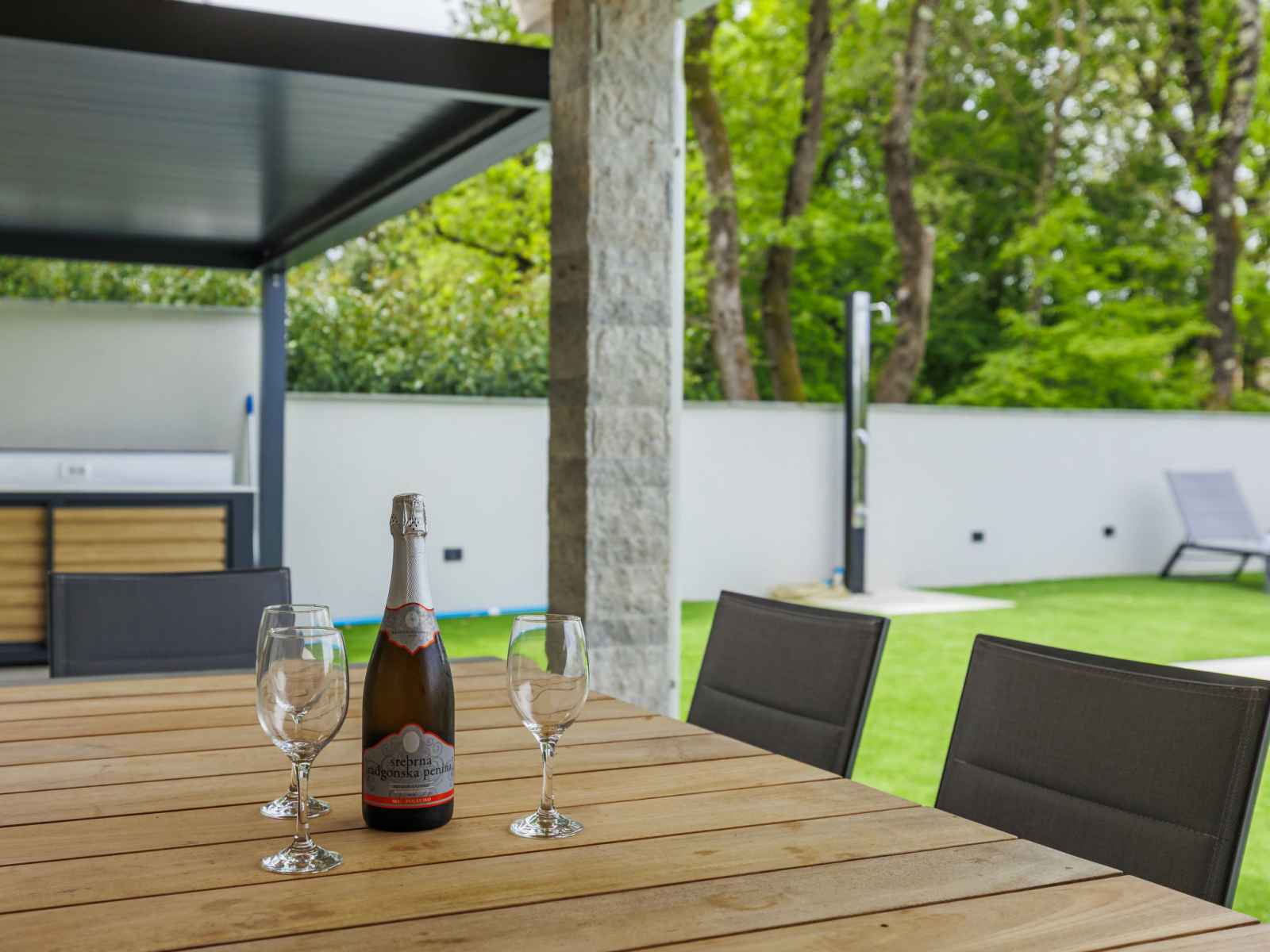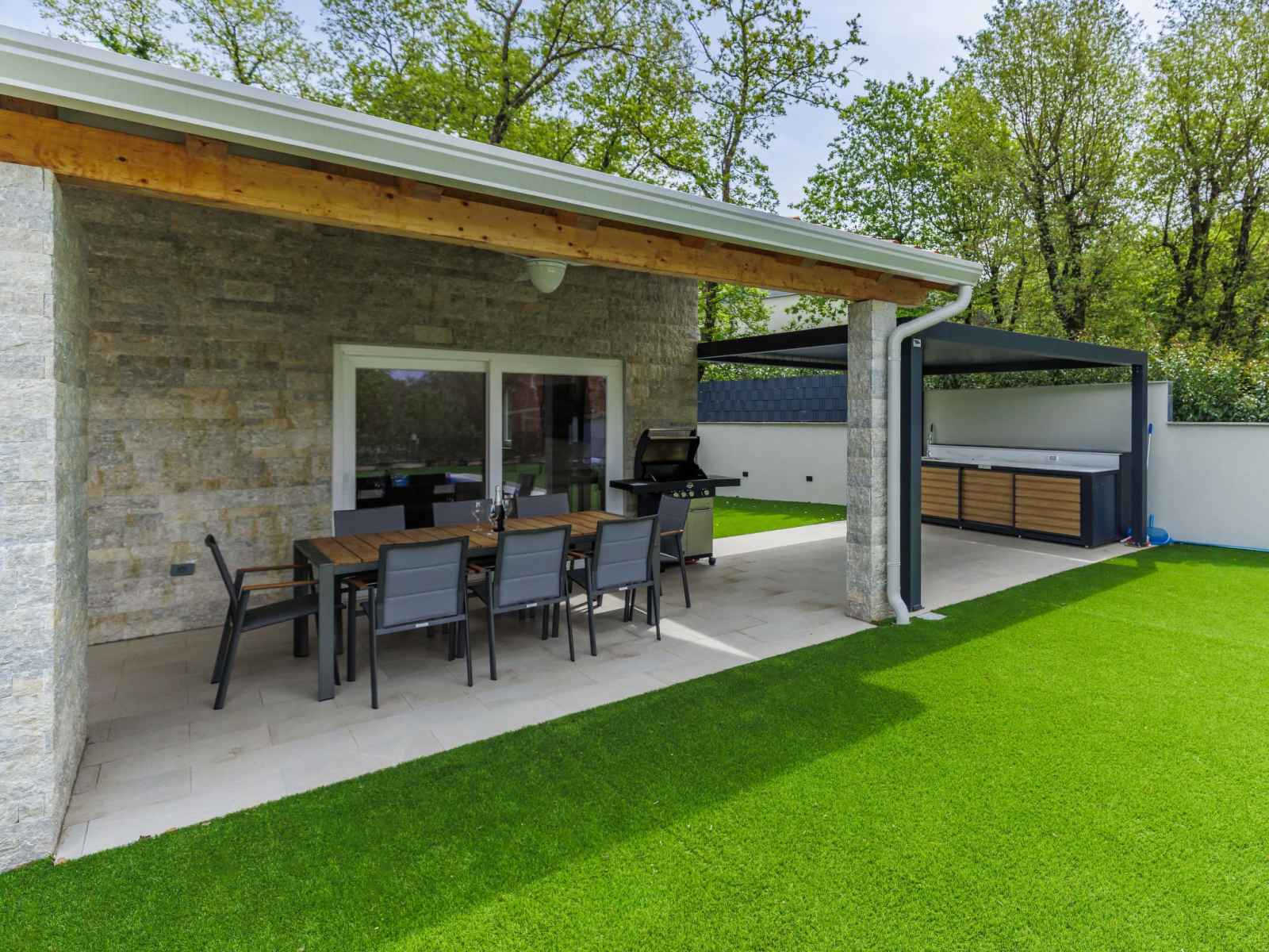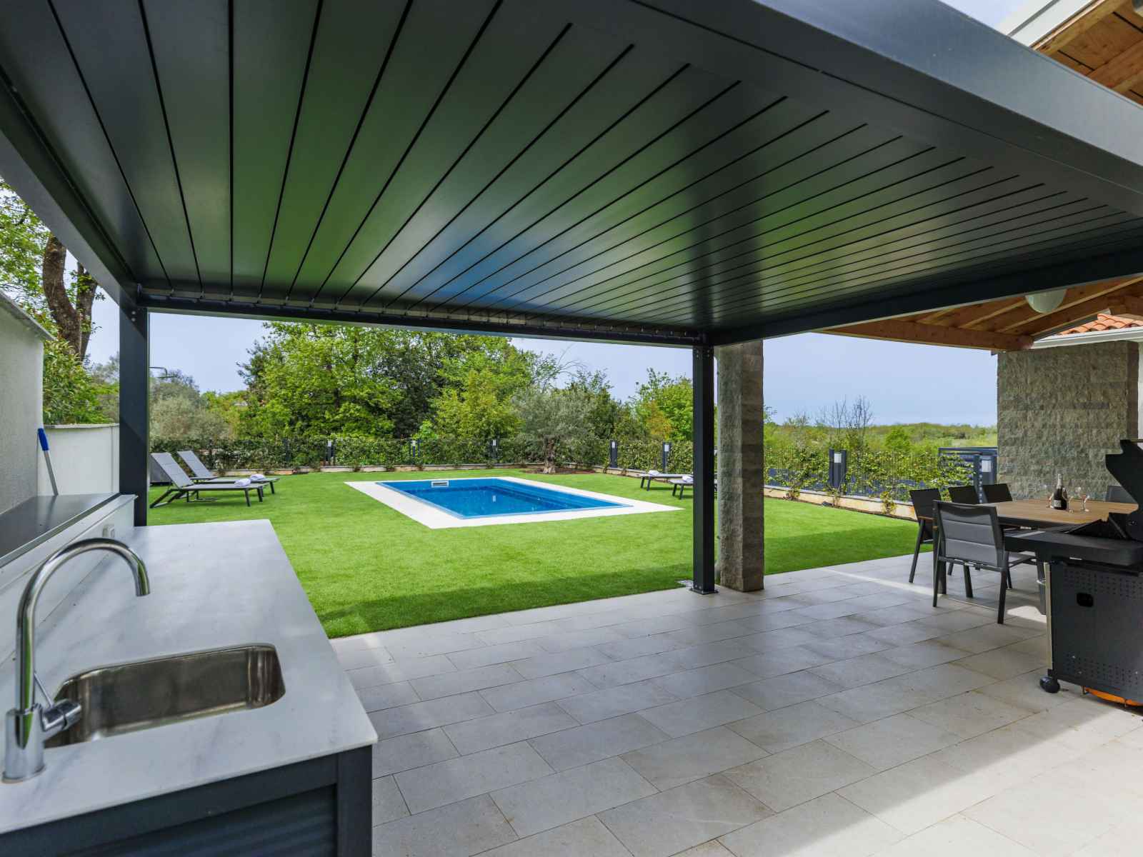 Maison individuelle "villa zoia", année de construction 2024. dans le hameau de frleti, à 9 km du centre d'umag, situation tranquille, ensoleillée, à 4 km de la mer, dans une impasse, dans la verdure. a usage privé: terrain 200 m2 (clôturé), piscine rectangulaire, chauffée (6 x 3 m, profondeur 145 cm, disponibilité saisonnière: 01.mai. -