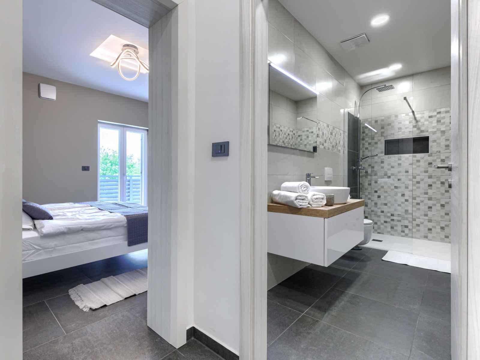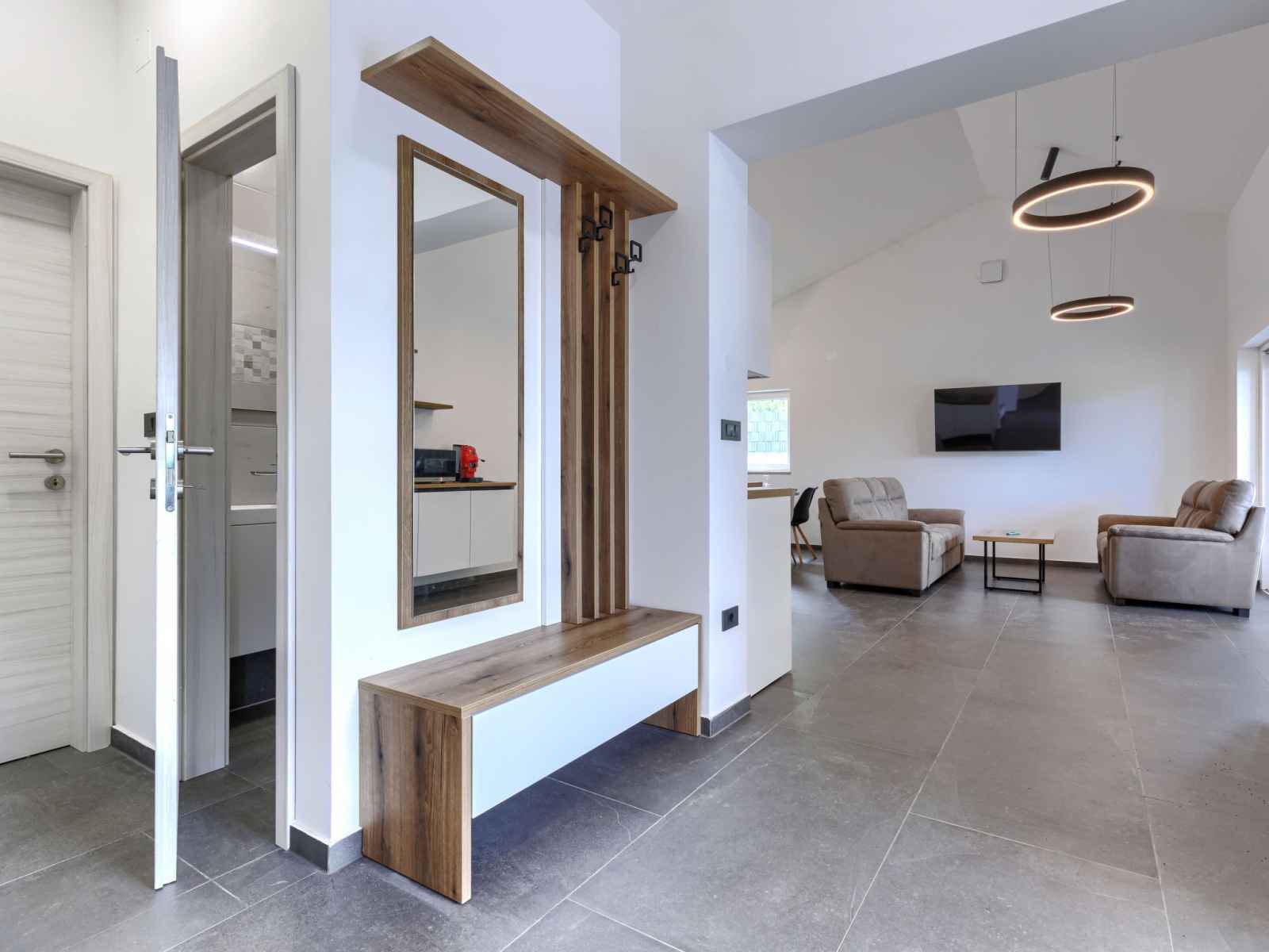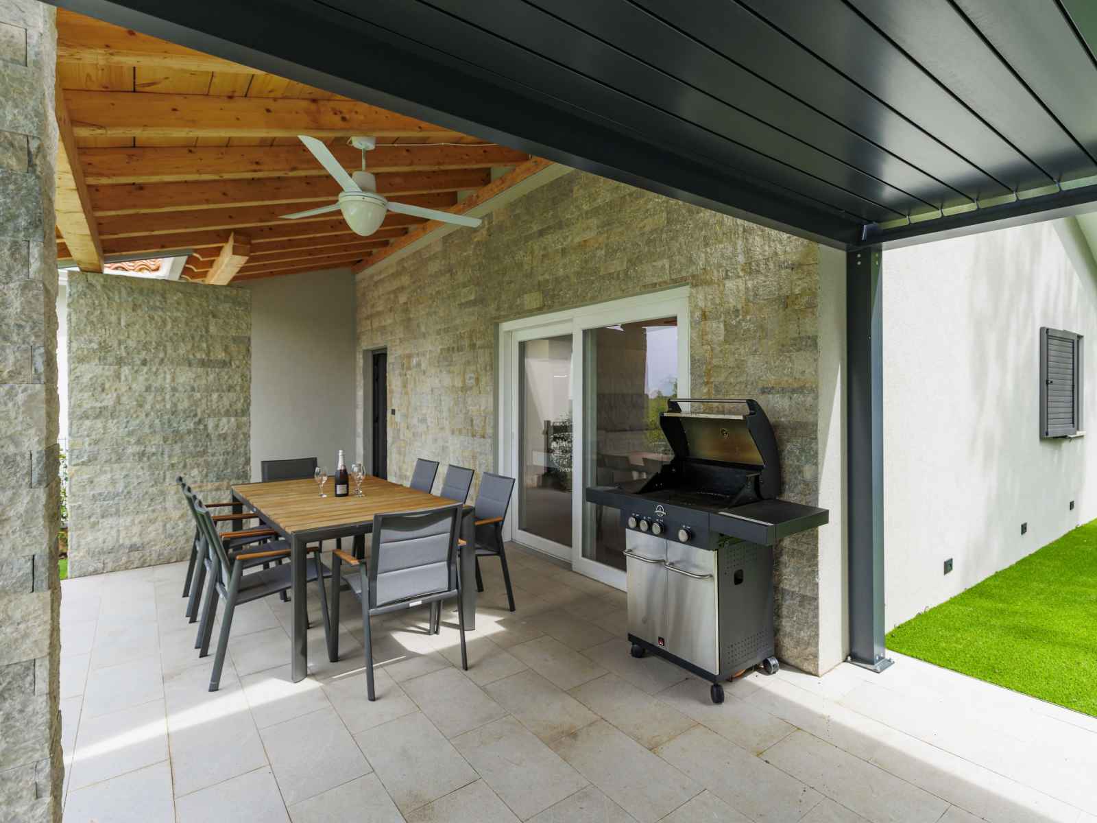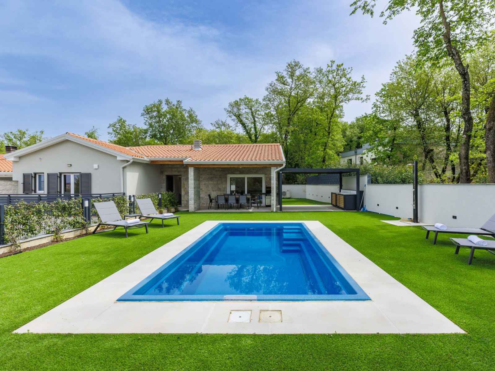 Maison individuelle "villa zoia", année de construction 2024. dans le hameau de frleti, à 9 km du centre d'umag, situation tranquille, ensoleillée, à 4 km de la mer, dans une impasse, dans la verdure. a usage privé: terrain 200 m2 (clôturé), piscine rectangulaire, chauffée (6 x 3 m, profondeur 145 cm, disponibilité saisonnière: 01.mai. -