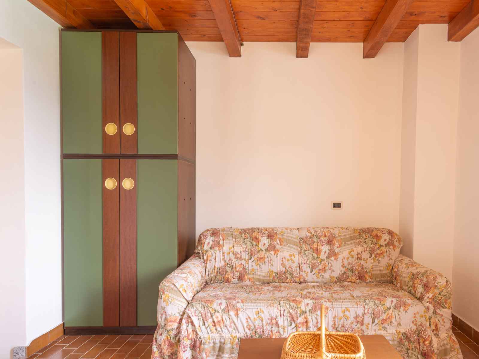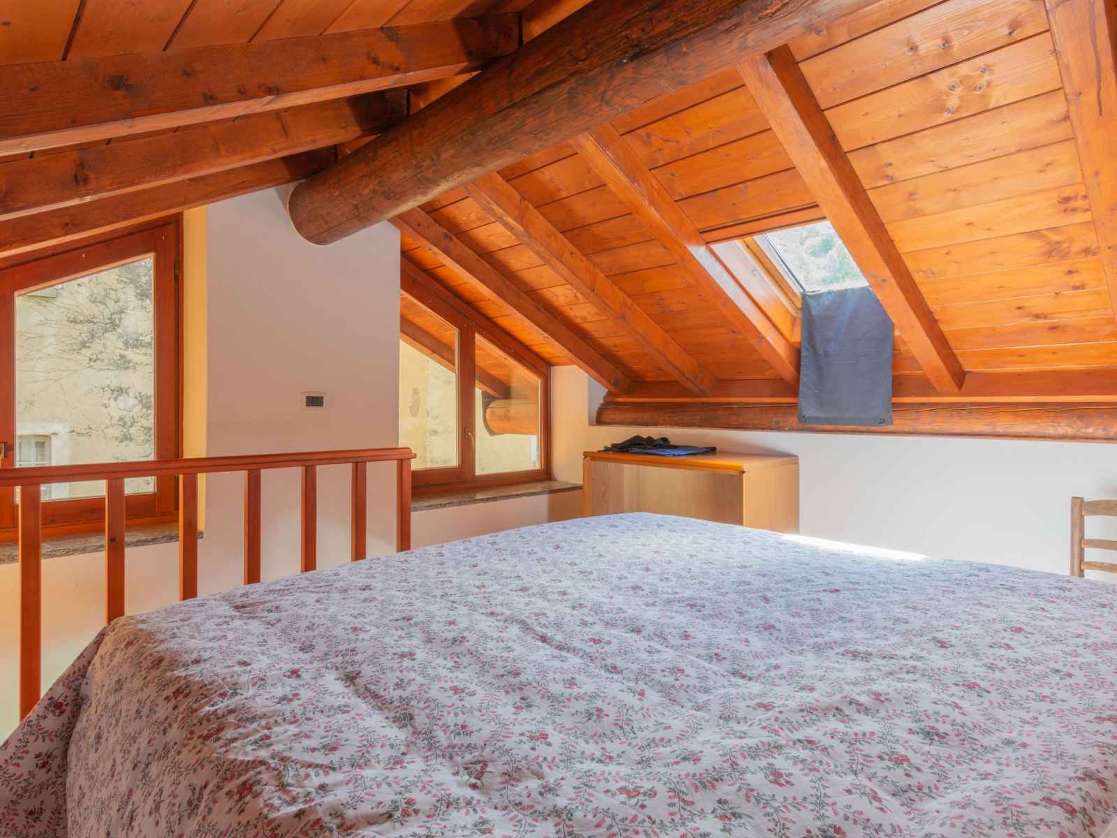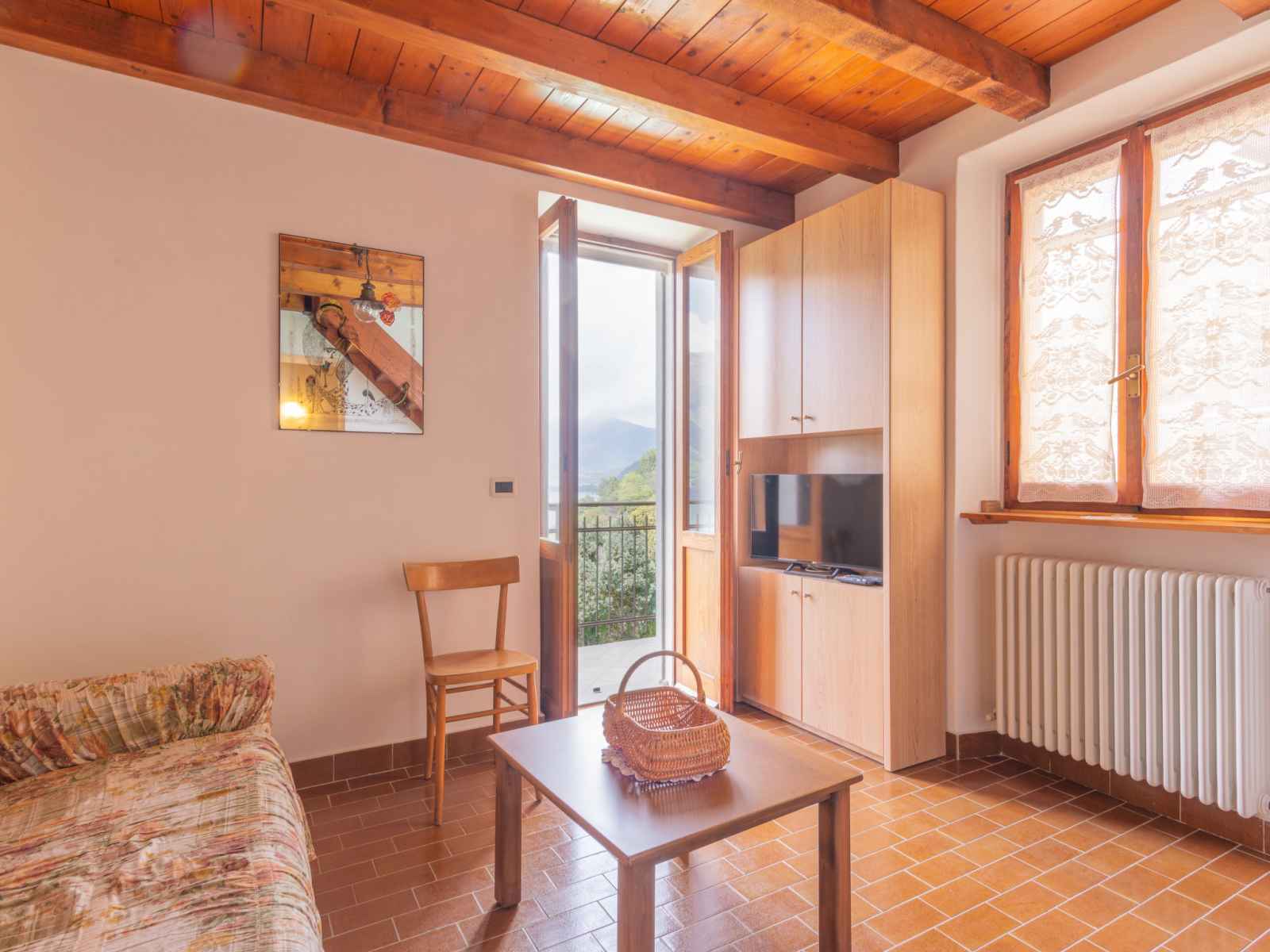 "casa rina", maison 2 pièces 64 m2 sur 3 niveaux. partiellement rénovée en 2021, aménagement fonctionnel et rustique: cuisine dans l'entrée (4 plaques de cuisson, four, grille-pain, bouilloire électrique) avec table pour les repas, cheminée. sortie sur le jardin. douche/wc. À l'étage supérieur: séjour/chambre à coucher ouvert avec 1