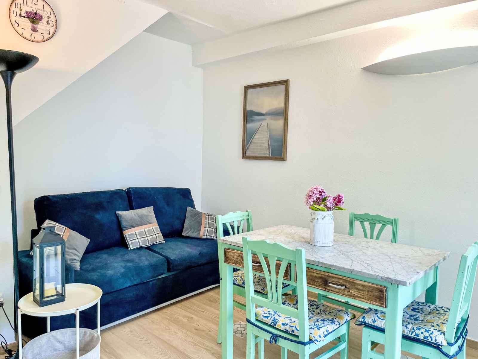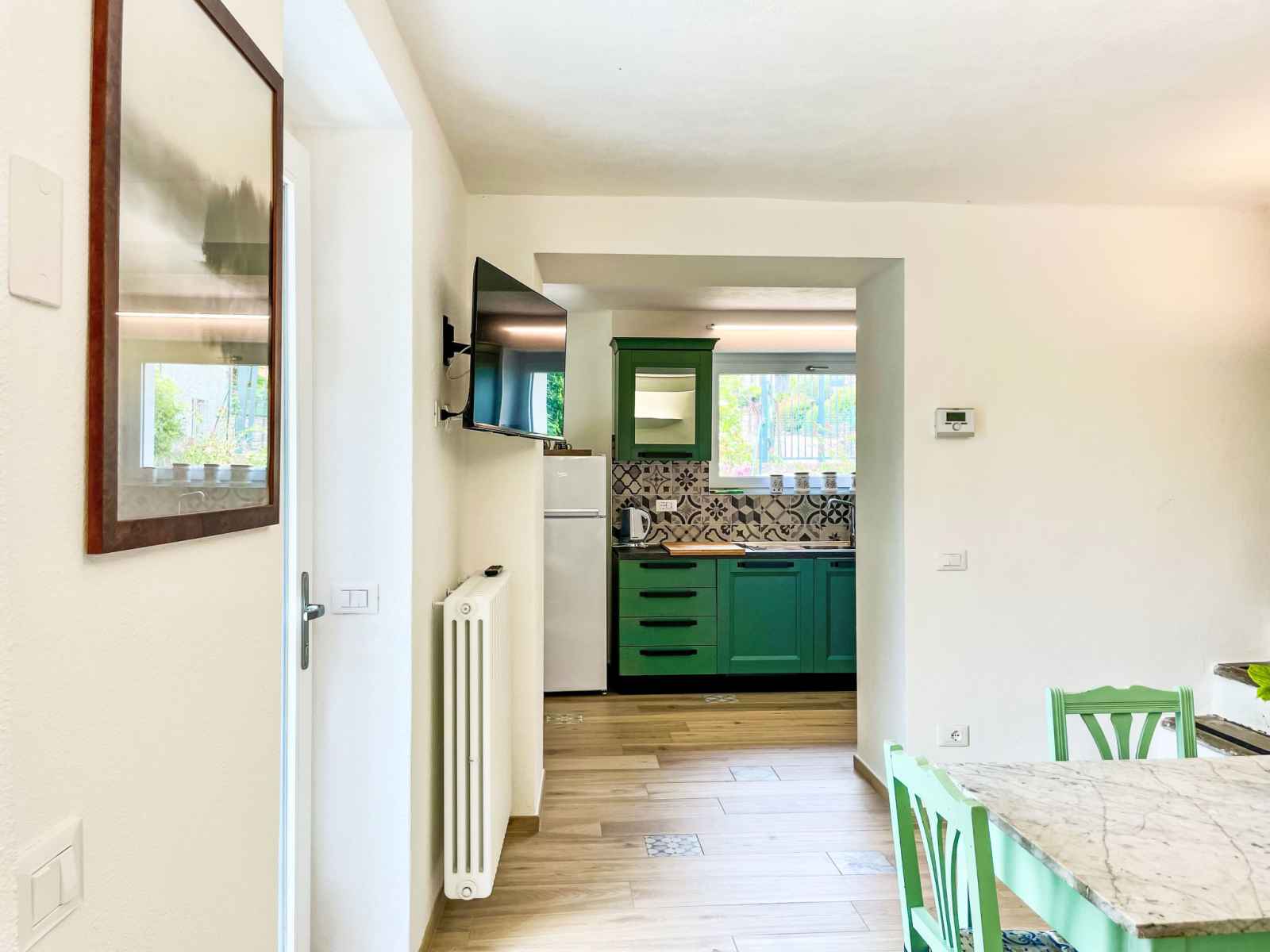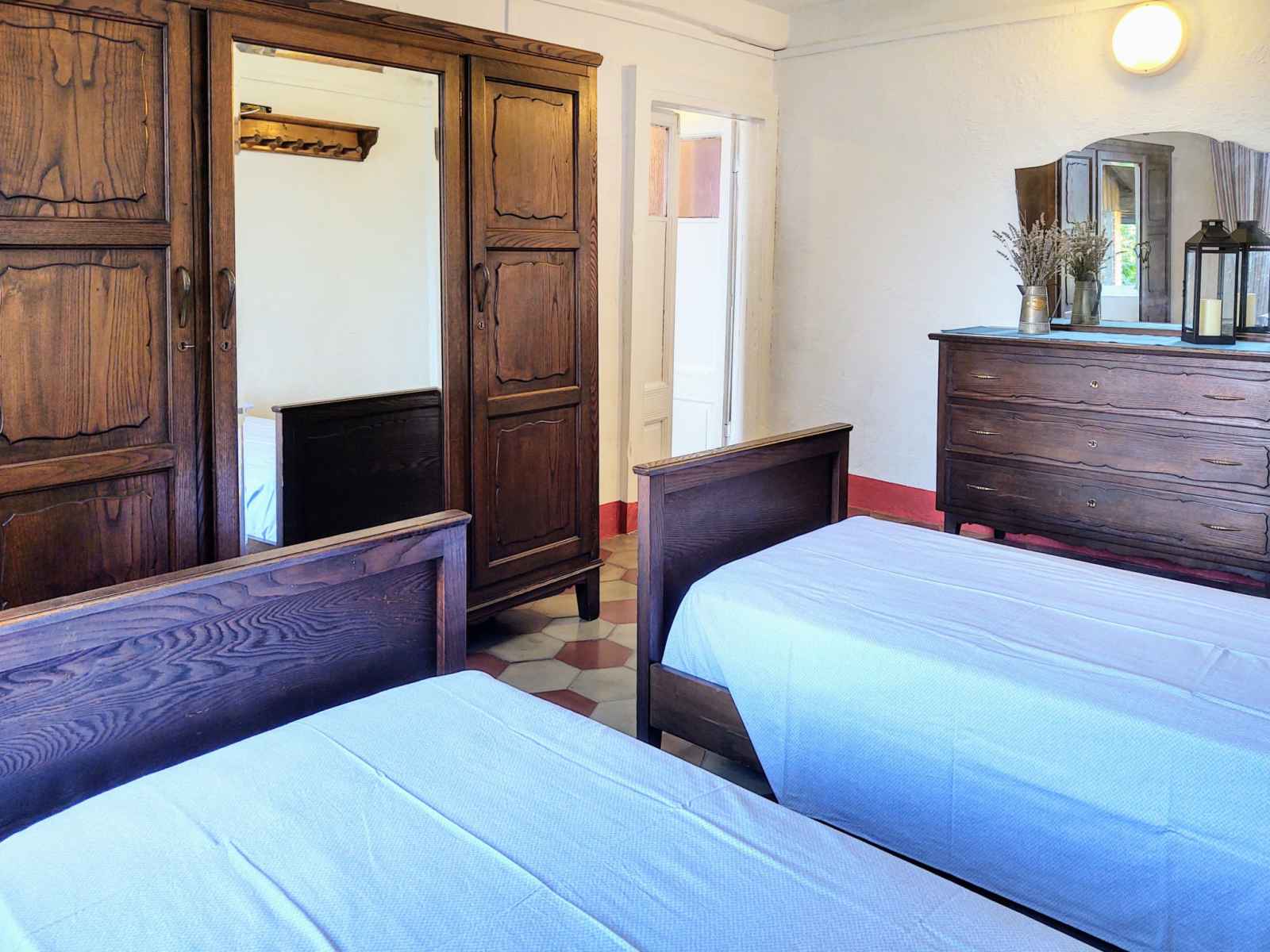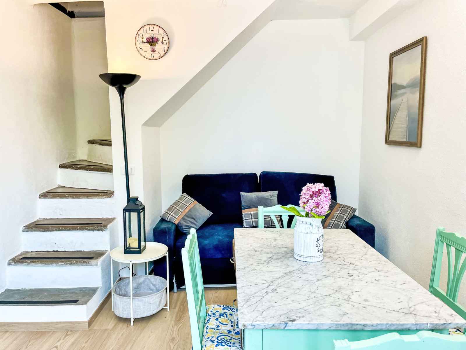 Maison 3 pièces sur 2 niveaux. aménagement confortable et rustique: séjour/chambre à coucher ouvert avec 1 divan-lit double (140 cm), table pour les repas et tv. sortie sur le jardin. cuisine ouverte (four, lave-vaisselle, 4 feux, grille-pain, micro-ondes, cafetière électrique). douche/bidet/wc. chauffage. À l'étage supérieur: 1 chambre