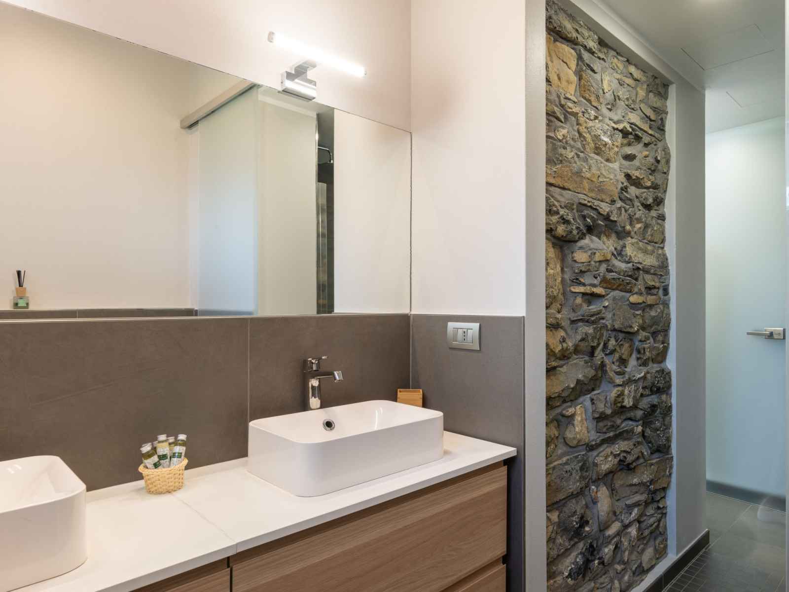 privé: terrain 300 m2, jardin sur plusieurs niveaux (clôturé), champ, piscine rectangulaire (6 x 3 m, disponibilité saisonnière: 01.mai. - 01.oct.). jardinet, meubles de jardin. infrastructures de la maison: sauna, bains de vapeur (hammam). accès en voiture par un chemin difficile, étroite de 1.5 km de long (150 m chemin non goudronné). 150 m sentier jusqu'à la maison. parking public 150 m possible dans la rue. magasins 3.4 km, supermarché 3 km, arrêt de bus 2.8 km, plage de graviers "riva gittana" 1 km, plage de galets "bau bau beach" 4.5 km. marina 3.4 km. veuillez noter: 1 er étage est fermé et inoccupé.