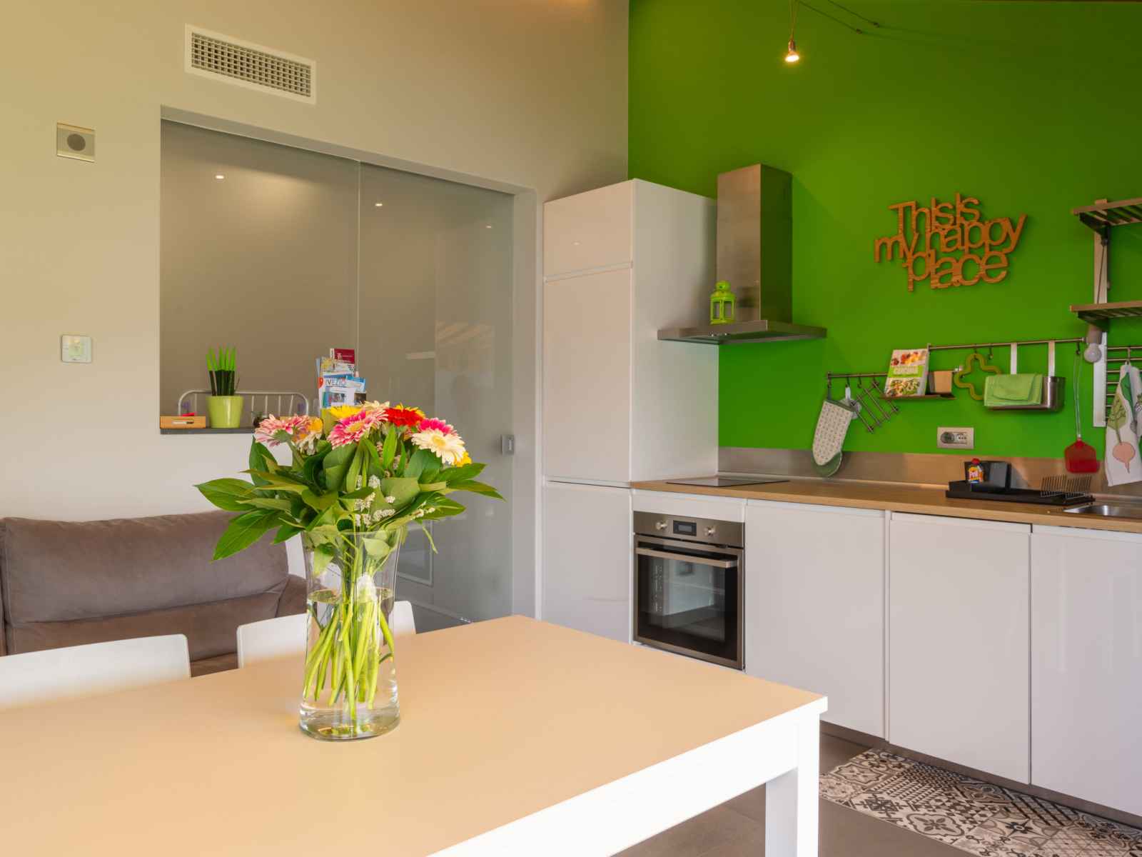 Maison 2 pièces 150 m2. clair, aménagement moderne et de bon goût: séjour/chambre à coucher avec 1 divan-lit double (160 cm), tv (satellite). sortie sur le jardin, sur la terrasse. 1 chambre double avec baie vitrée avec bain à remous et radiateur. cuisine ouverte (four, lave-vaisselle, 2 plaques à induction, grille-pain, bouilloire