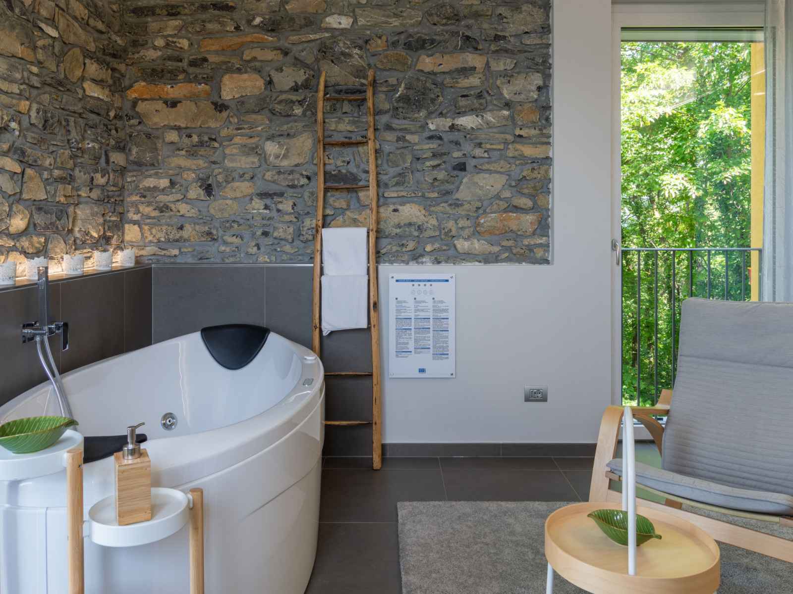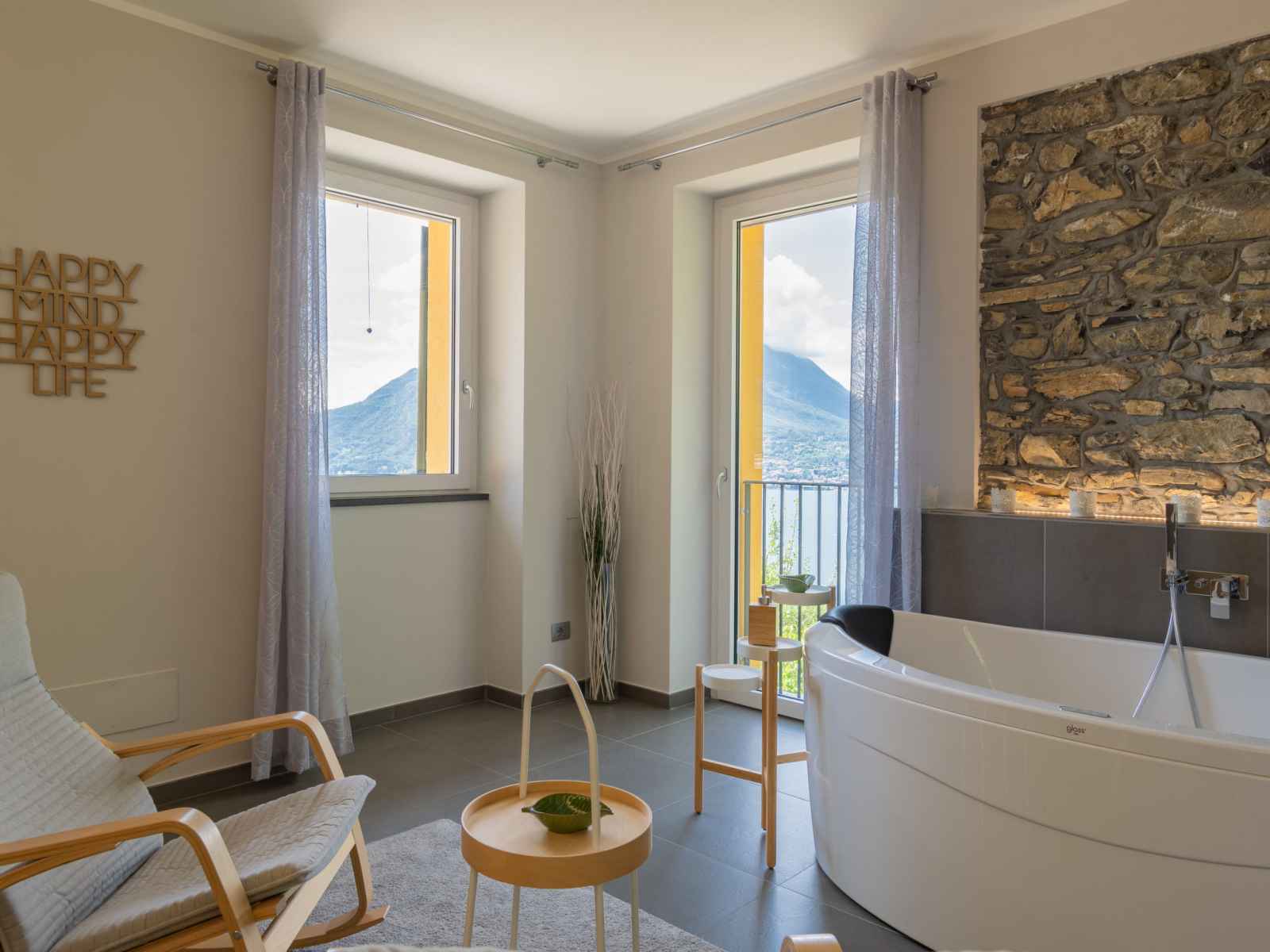 Maison confortable "lacum lux resort", 300 m au dessus du niveau de la mer, année de construction 2018. dans le haut de la station de varenna, à 3.4 km du centre de varenna, à 24 km du centre de lecco, à 55 km du centre de como, situation isolée, surélevée sur un versant, juste au bord de la forêt, à 1 km du lac, dans la verdure. a usage