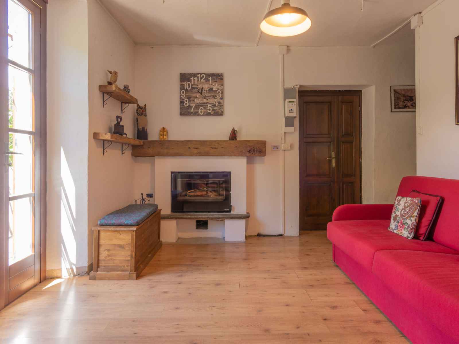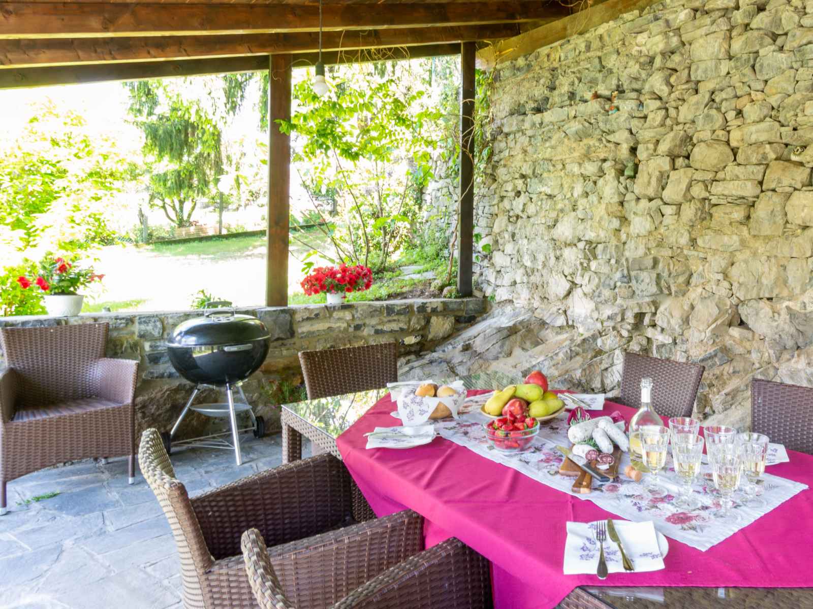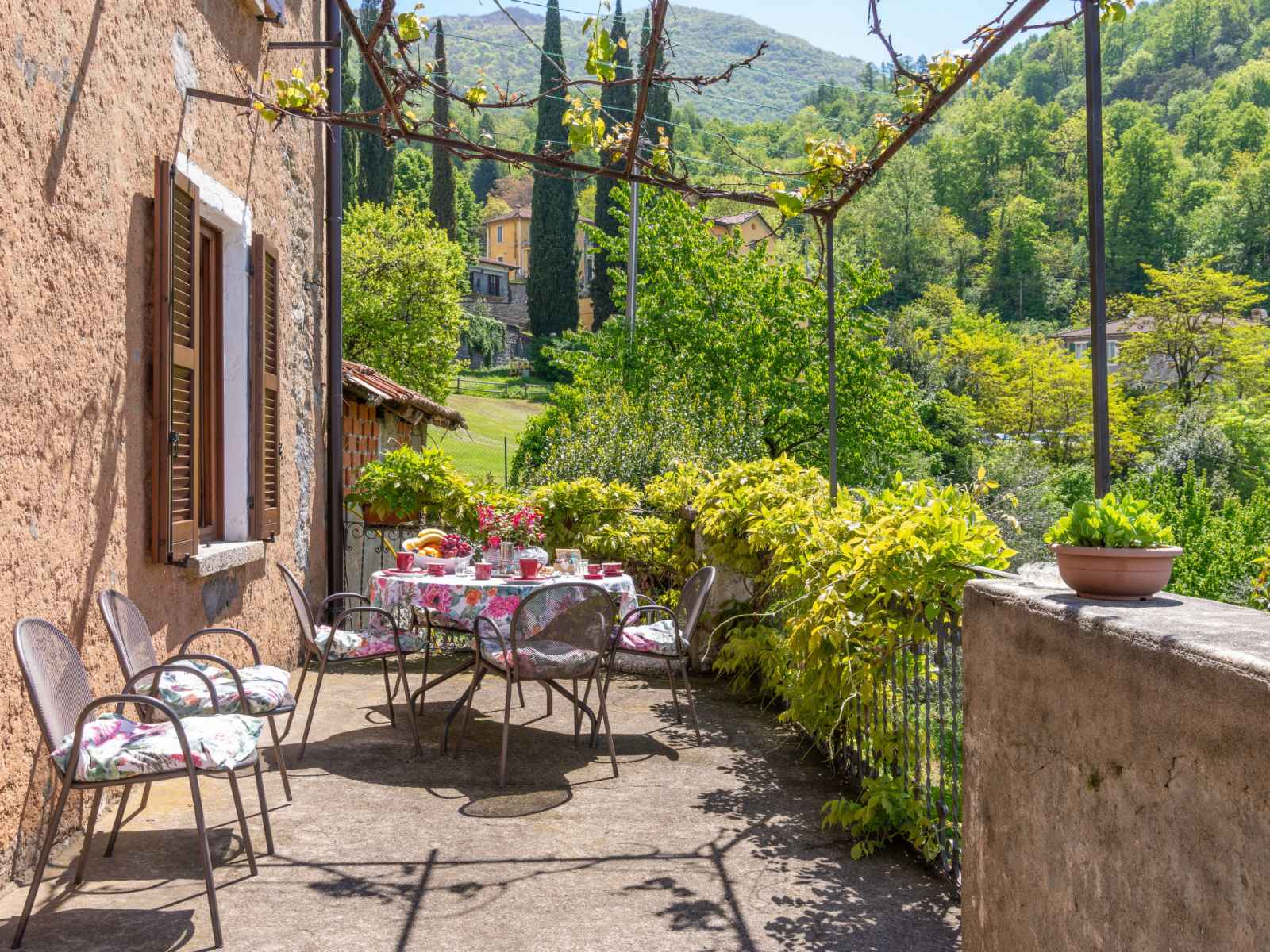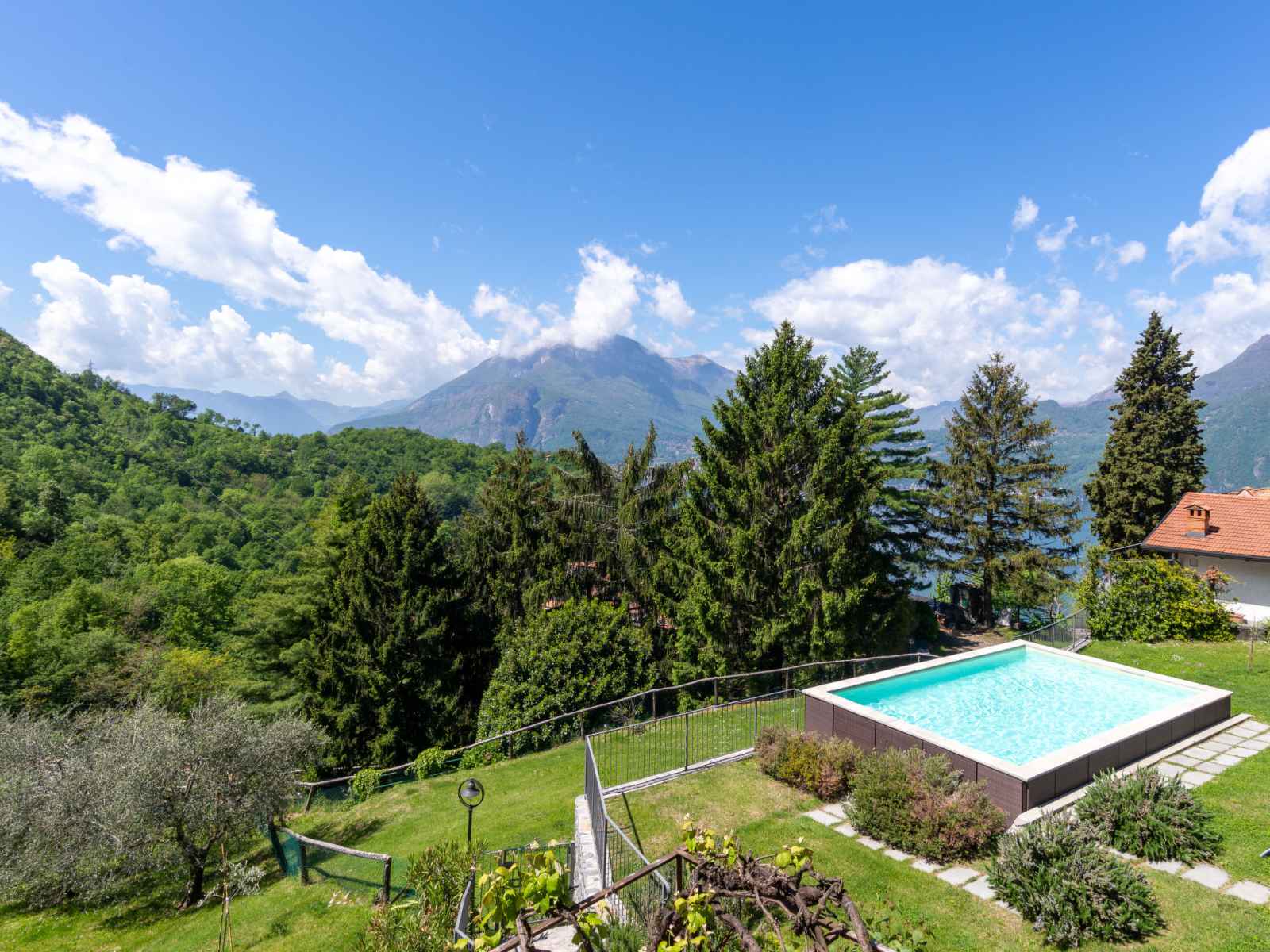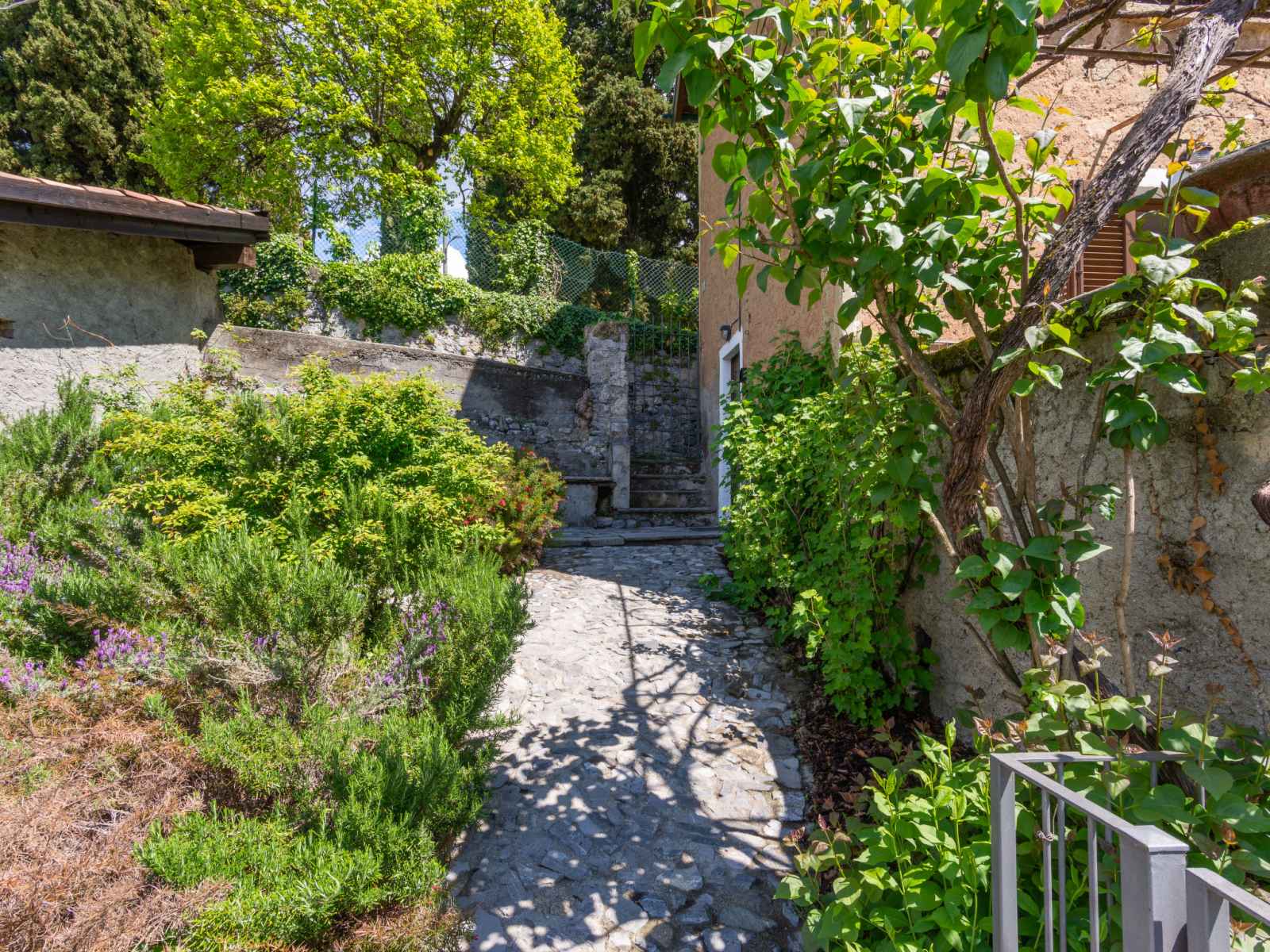 arbres, champ, piscine (hors sol) (7 x 4 m, profondeur 130 cm, disponibilité saisonnière: 01.avr. - 31.oct.) avec systeme d'électolyseur au sel. douche extérieure, pergola, meubles de jardin, entretien de la piscine par le propriétaire/jardinier. accès en voiture par un chemin étroite de 4.6 km de long (route de montagne). place de parking (pour 2 voitures) sur le terrain. magasins 4.6 km, supermarché 7.7 km, arrêt de bus 1.7 km, gare ferroviaire "varenna" 3.7 km, plage de graviers "lido di gittana" 5.7 km (petit[e]), parc "lido di varenna" 4 km. marina 6 km, terrain de golf (18 trous) 48 km. le propriétaire utilise des pièces dans la maison.