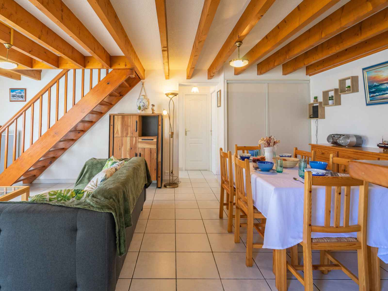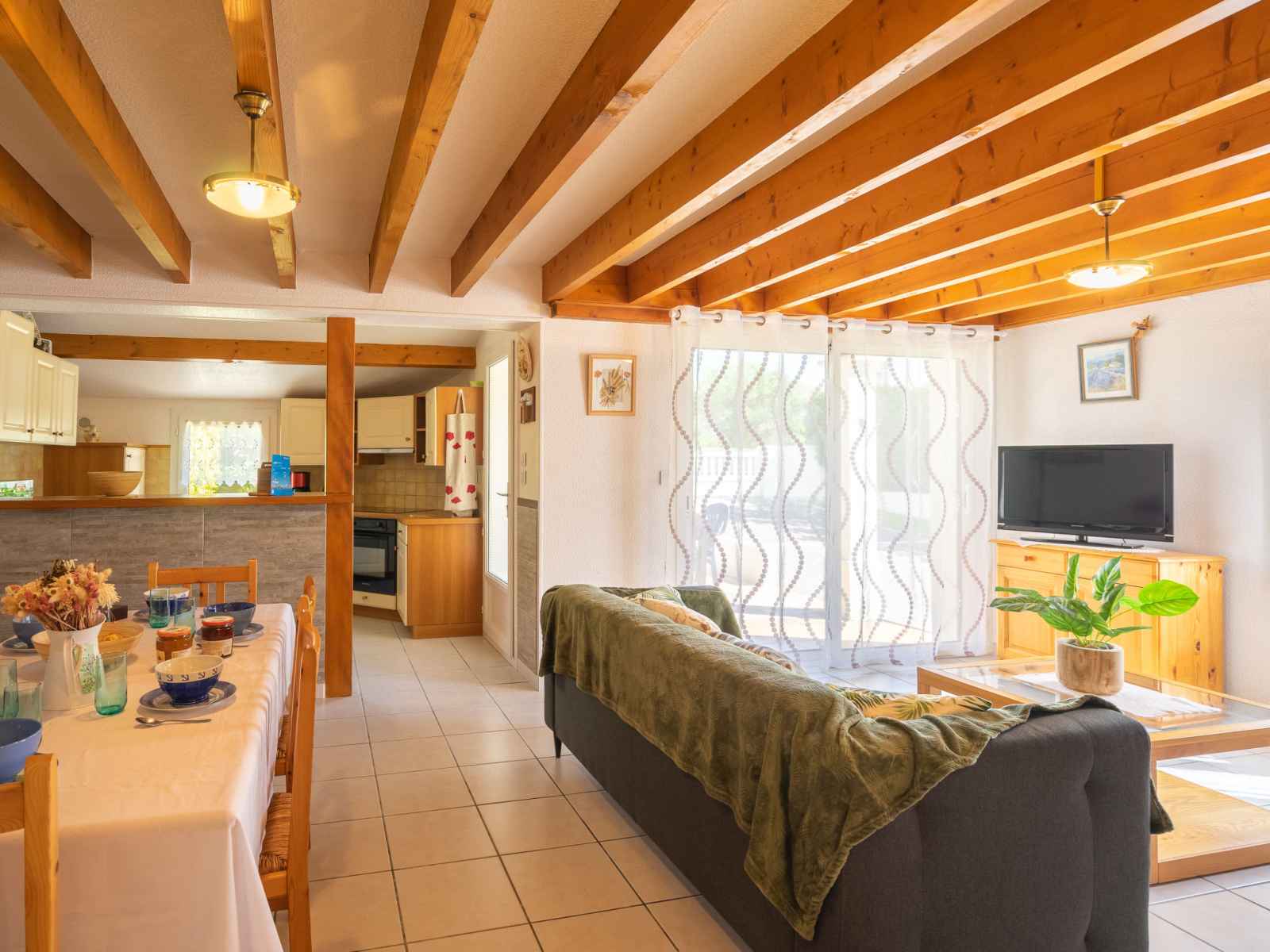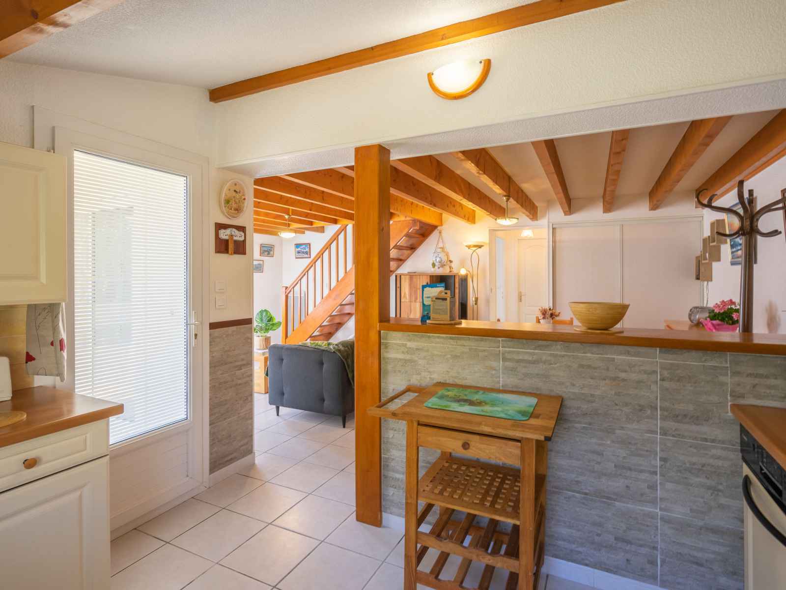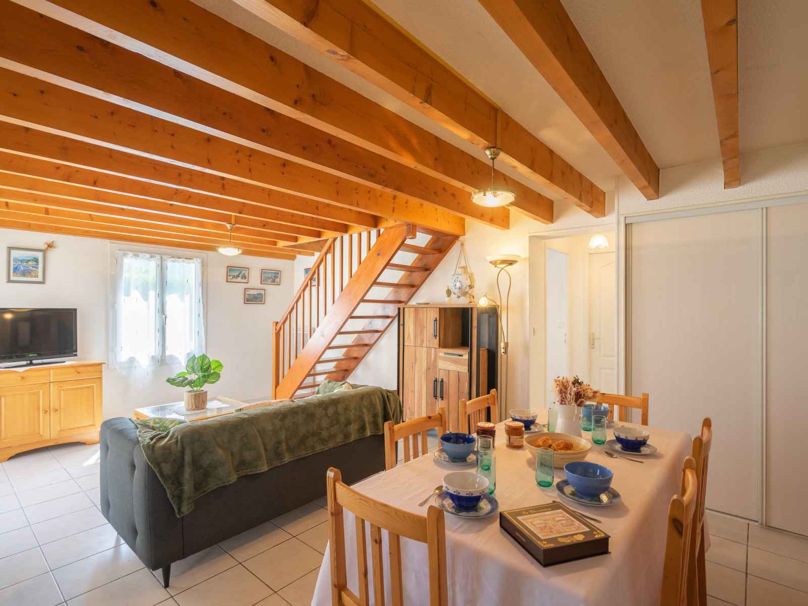 Maison 4 pièces 70 m2 sur 2 niveaux. aménagement confortable: séjour/salle à manger avec tv (écran plat). sortie sur la terrasse. 1 chambre avec 1 grand-lit (1 x 140 cm, longueur 190 cm). cuisine ouverte (four, lave-vaisselle, 4 plaques vitrocéramiques, micro-ondes, cafetière électrique). salle de bains, wc séparé. chauffage électrique.