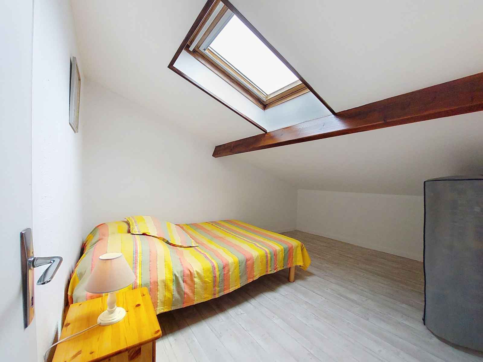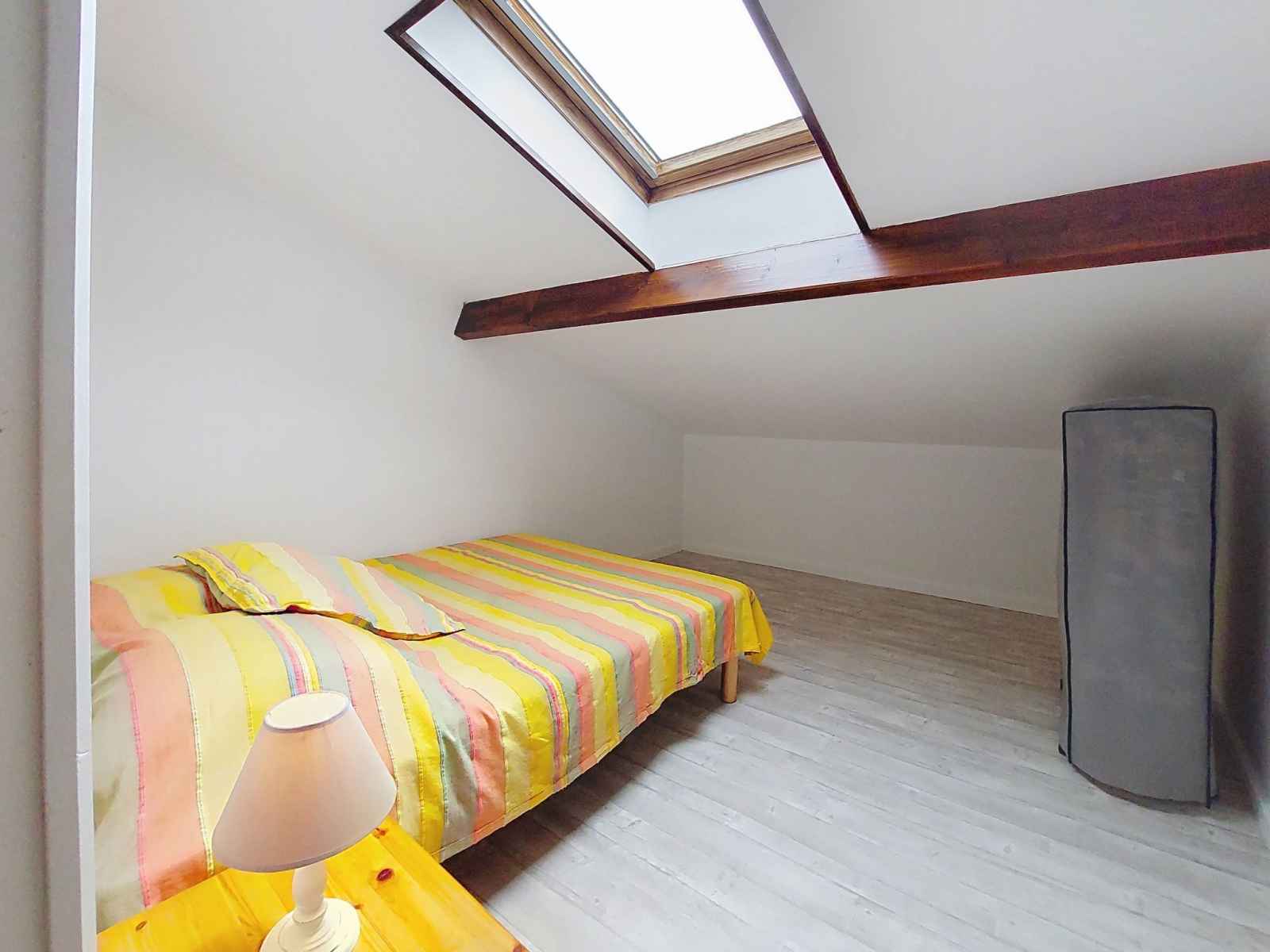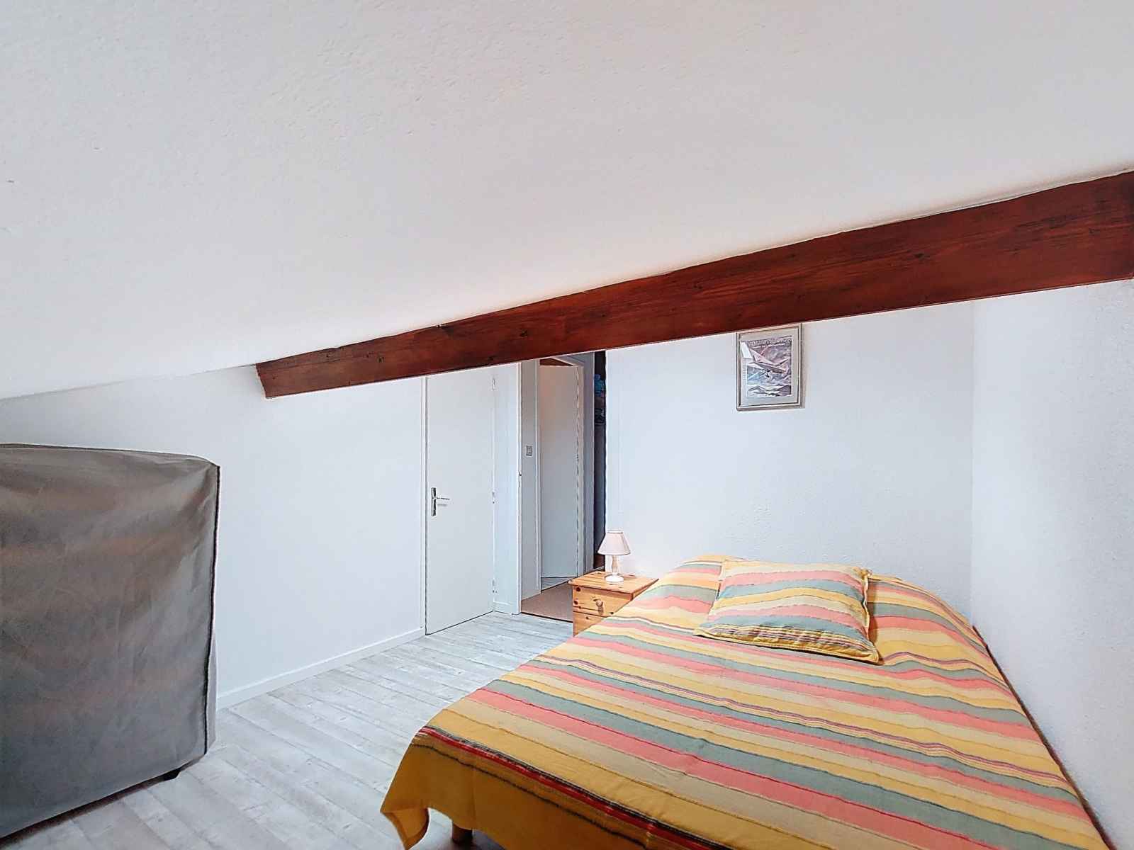 (écran plat). 1 chambre, mansardée avec 1 grand-lit (1 x 140 cm, longueur 190 cm). Terrasse 12 m2, situation ouest. Meubles de terrasse. A disposition: lave-linge. Internet (Connexion WIFI, en sus). Place de parking No 1. Veuillez noter: maximum 1 animal/ chien de petite taille autorisé. Détecteur de fumée. Annonce d'un particulier (art 155, IV du CGI).