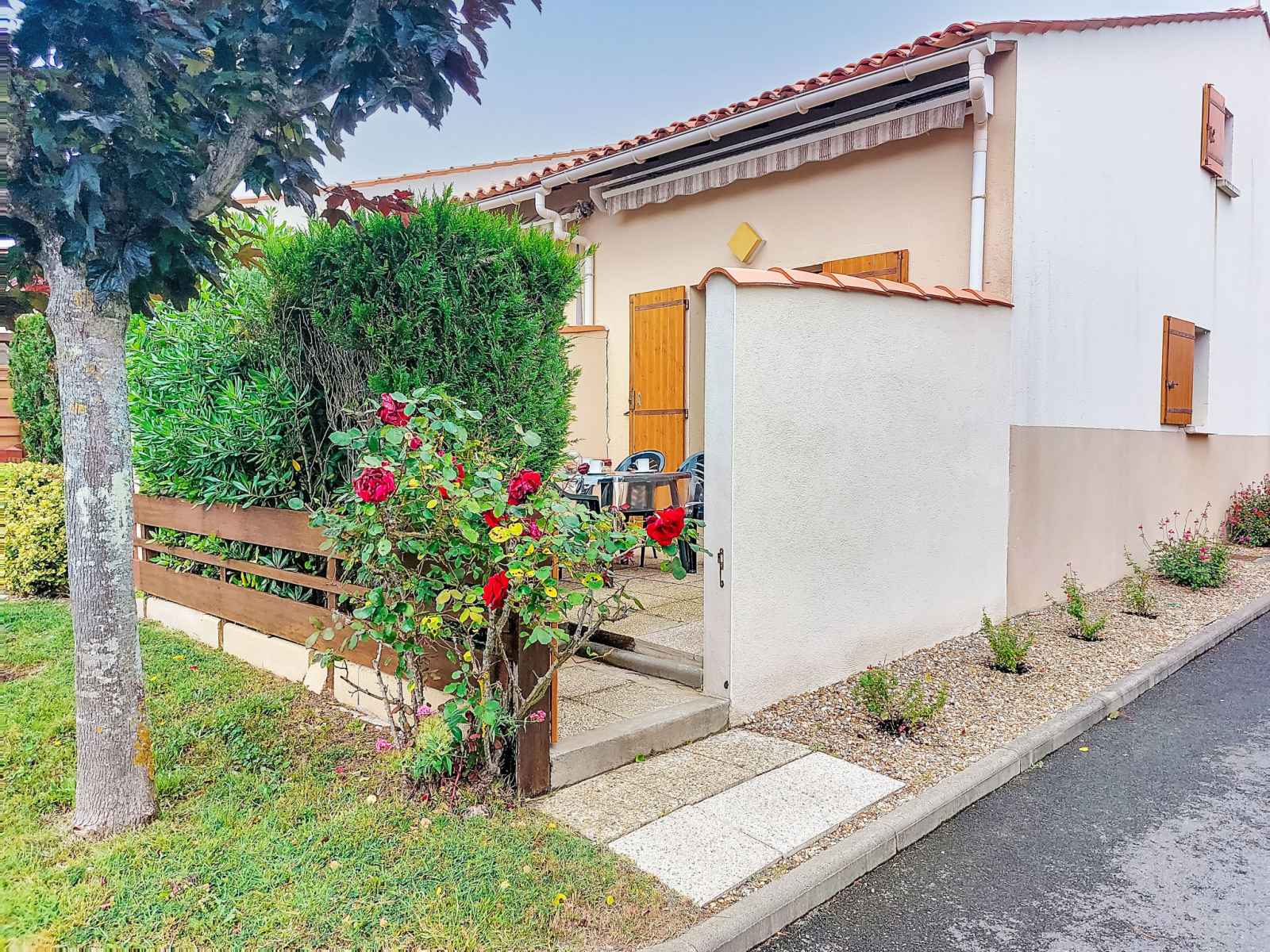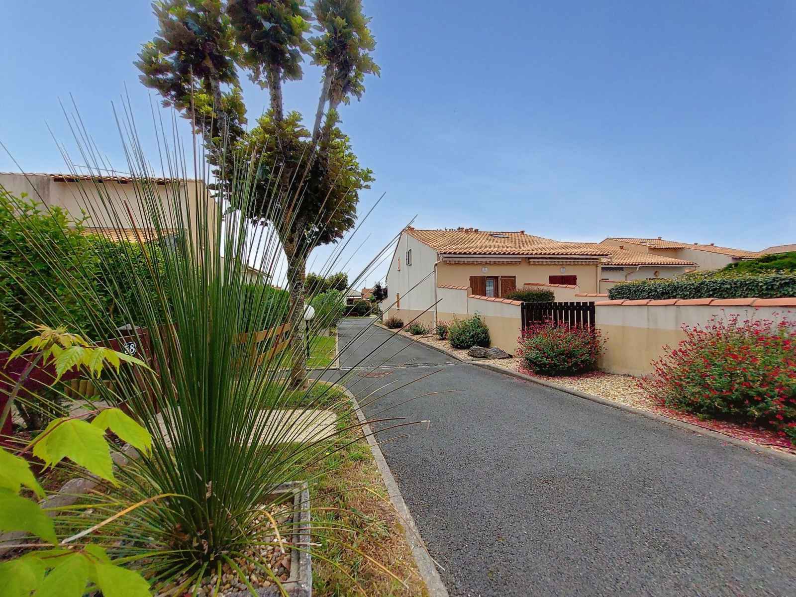 Composée de plusieurs maisons mitoyennes, résidence "la coralline". en bordure de la localité, à 1.2 km du centre de vaux sur mer, dans un quartier résidentiel, à 400 m de la mer, à 400 m de la plage. place de parking. supermarché 400 m, restaurant 800 m, location de bicyclettes 1 km, gare ferroviaire "royan" 5 km, plage de sable "saint