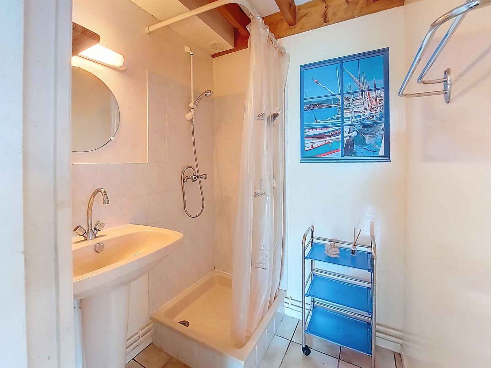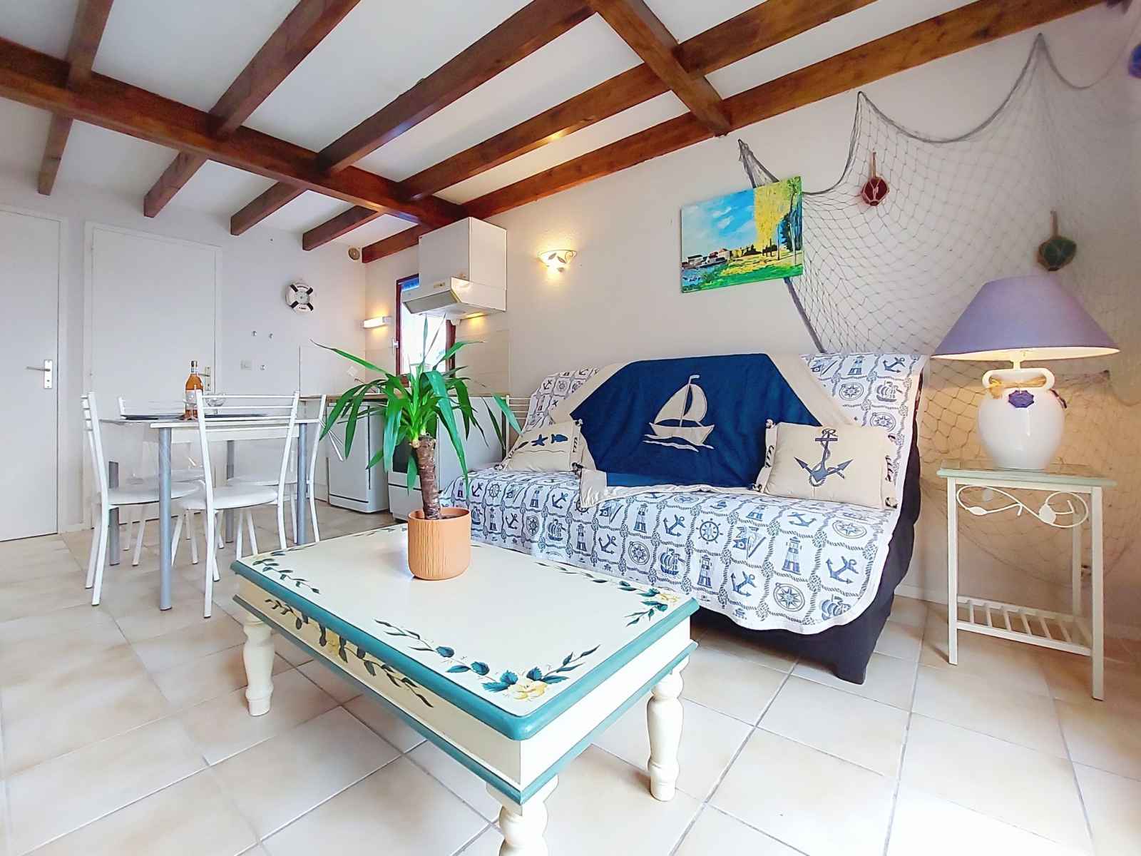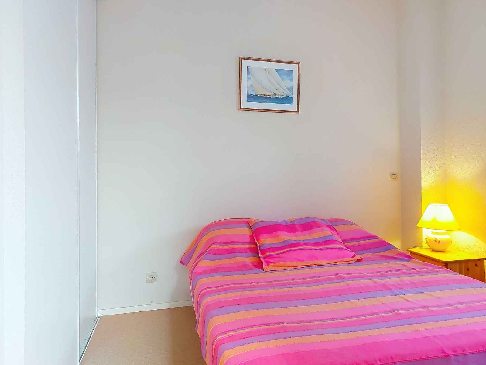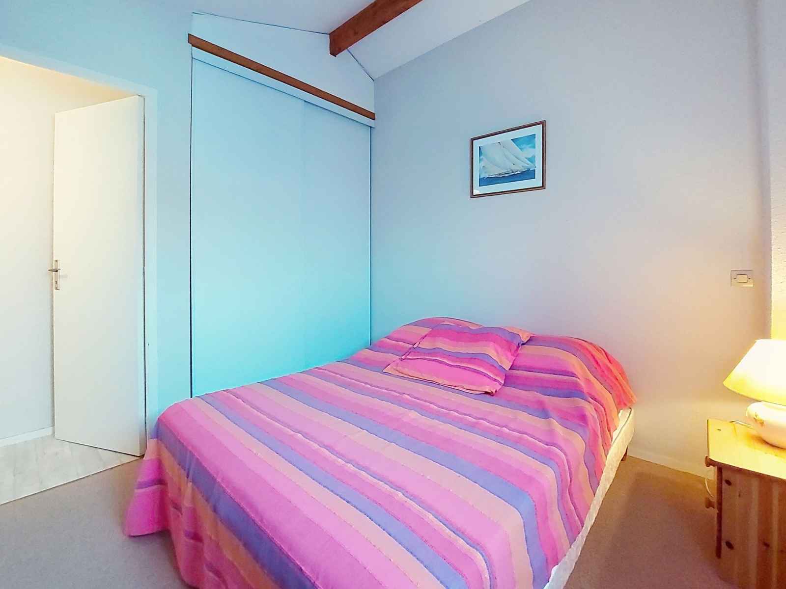 Maison mitoyenne 3 pièces 42 m2 sur 2 niveaux, situation ouest. séjour avec tv (écran plat). sortie sur la terrasse. coin cuisine (four, lave-vaisselle, 4 plaques à induction, congélateur, cafetière électrique). douche, wc séparé. chauffage électrique. À l'étage supérieur: 1 chambre avec 1 grand-lit (1 x 140 cm, longueur 190 cm), tv