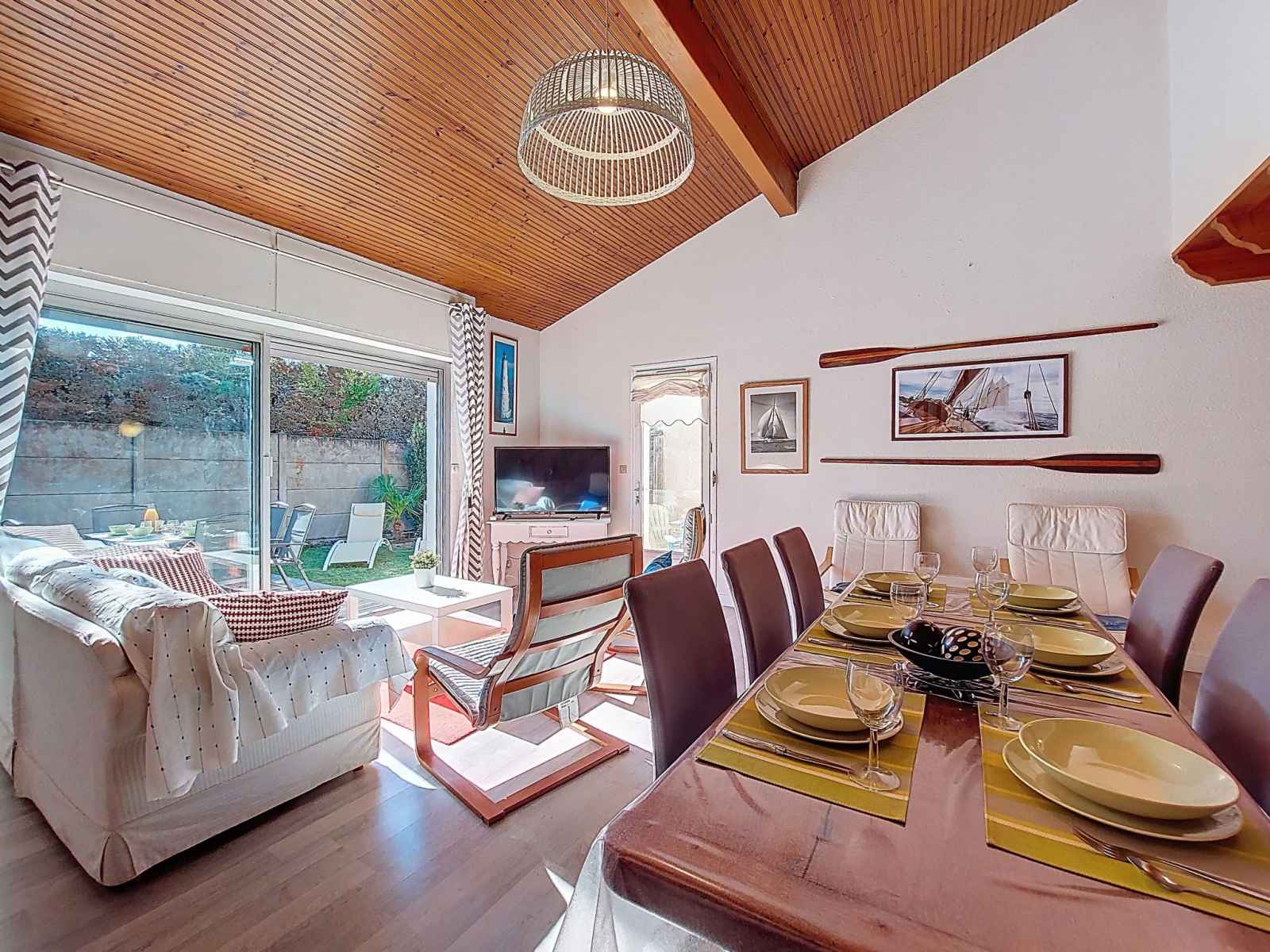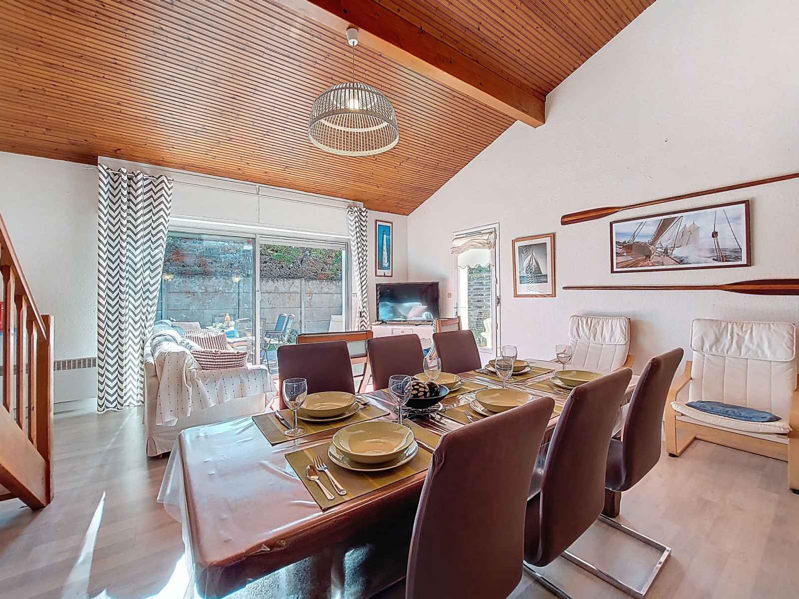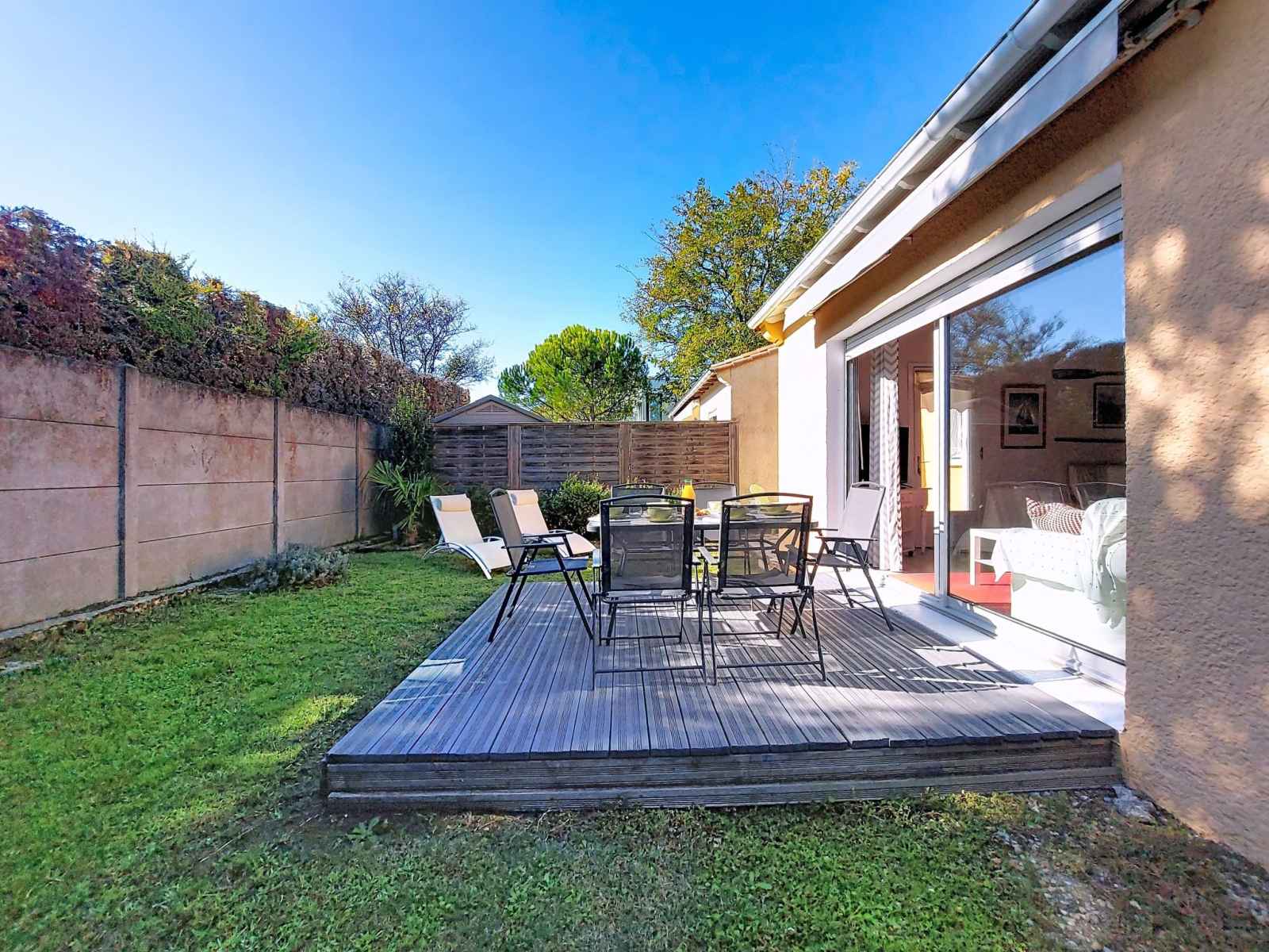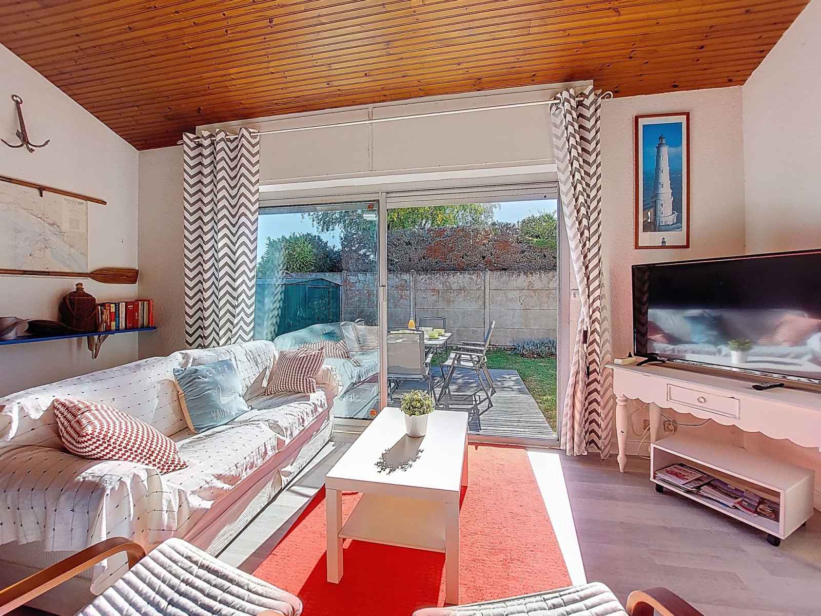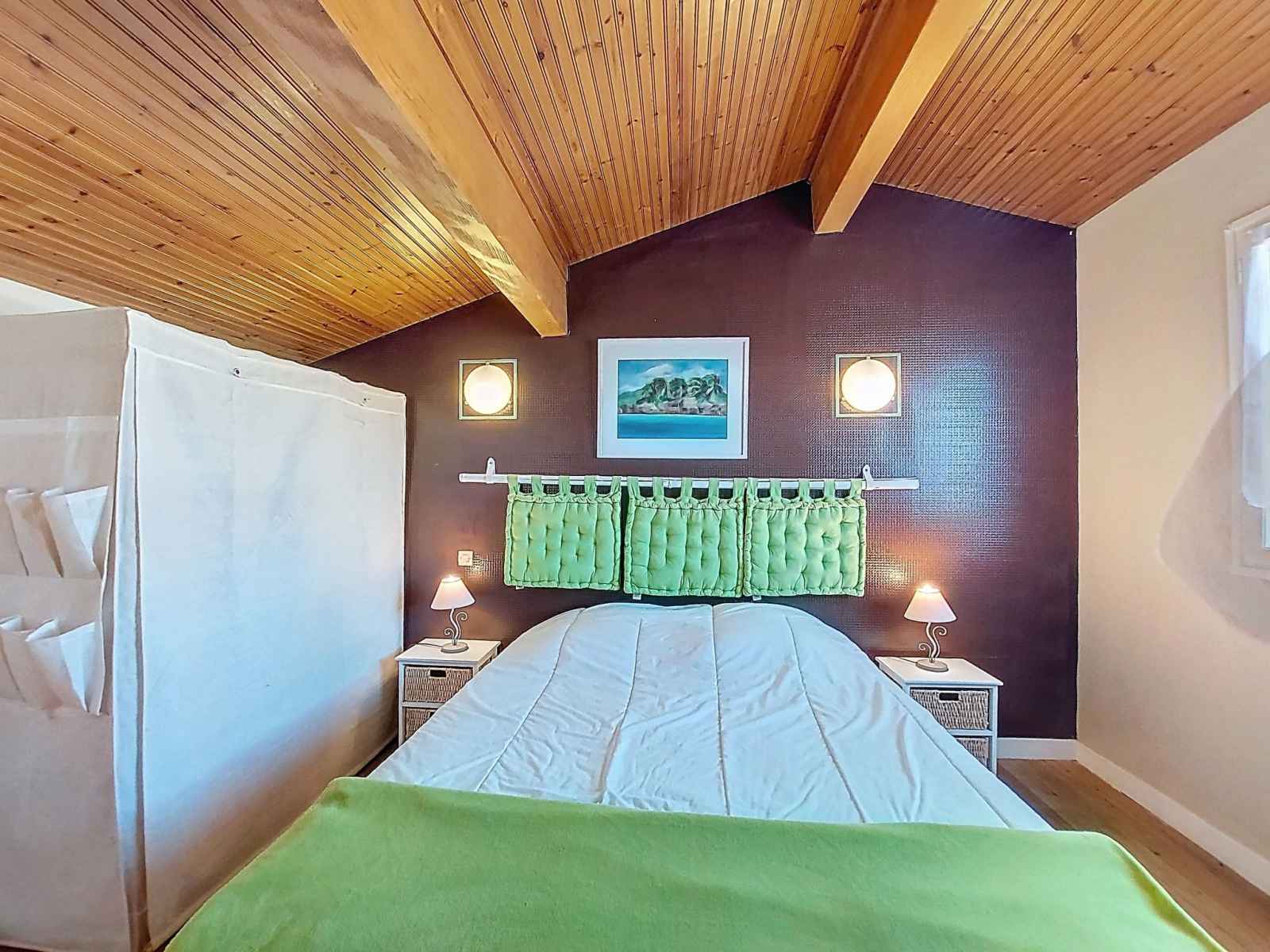 Maison 4 pièces 83 m2 sur 2 niveaux. séjour/salle à manger avec tv (écran plat). sortie sur la terrasse. 1 chambre avec 1 grand-lit (1 x 180 cm, longueur 190 cm). cuisine (four, lave-vaisselle, 3 plaques à induction, micro-ondes, congélateur, cafetière électrique, capsules pour machine à café (magimix) (non incluses)). douche, wc