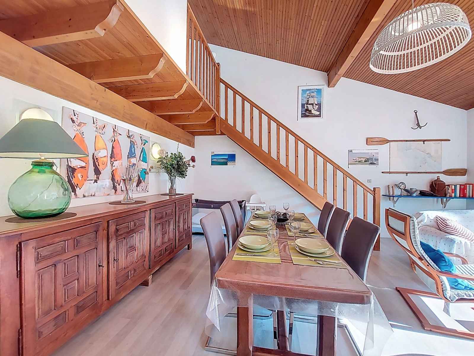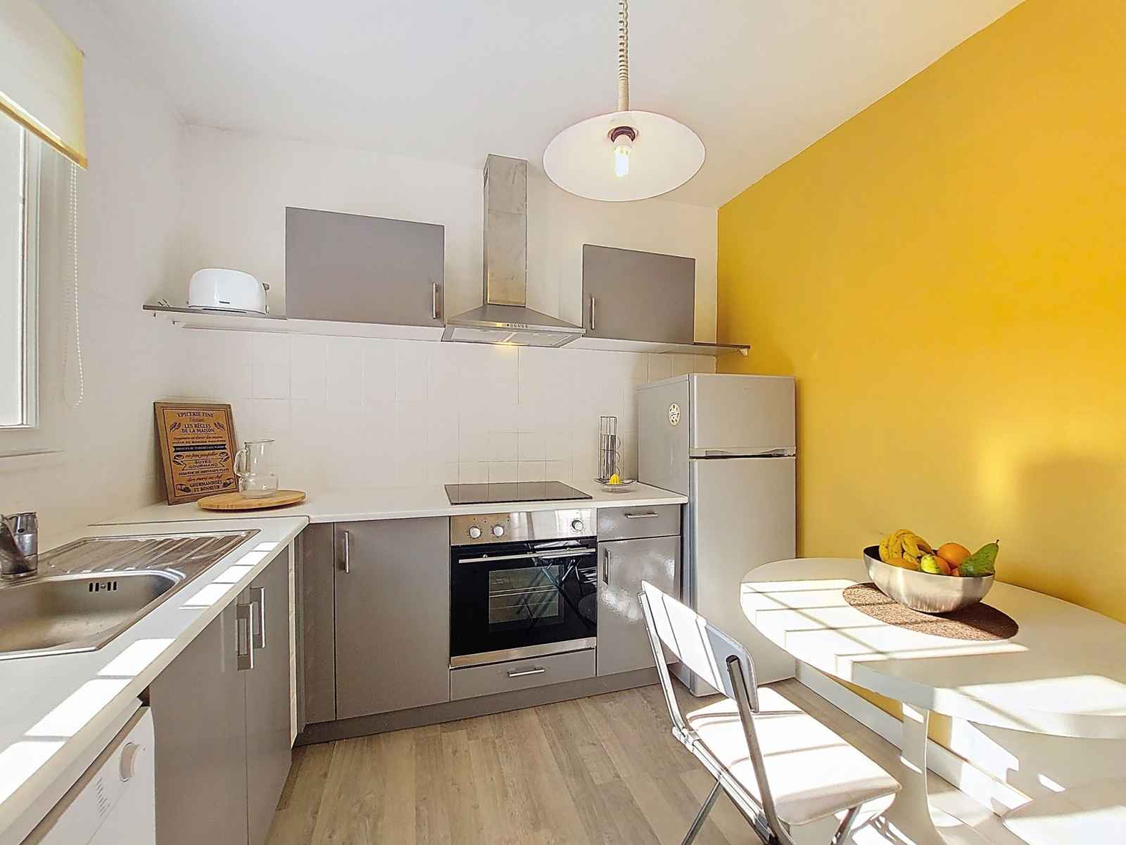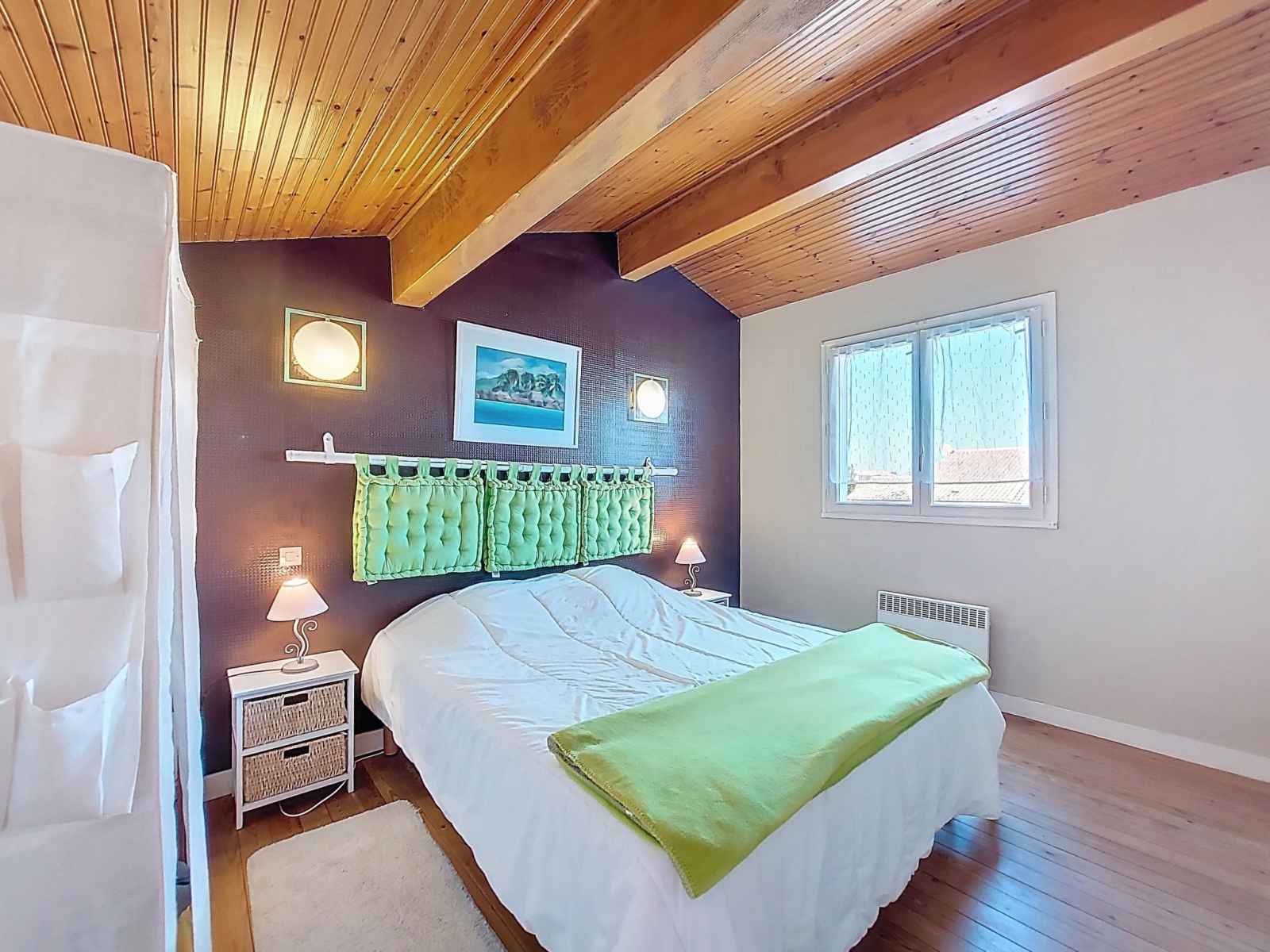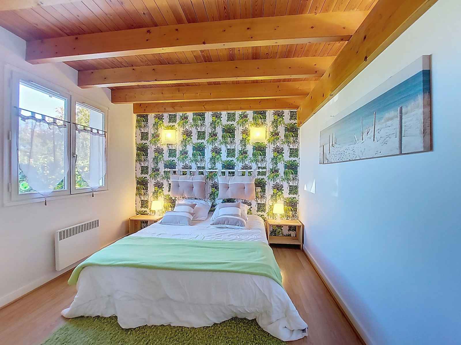 Maison 4 pièces 83 m2 sur 2 niveaux. séjour/salle à manger avec tv (écran plat). sortie sur la terrasse. 1 chambre avec 1 grand-lit (1 x 180 cm, longueur 190 cm). cuisine (four, lave-vaisselle, 3 plaques à induction, micro-ondes, congélateur, cafetière électrique, capsules pour machine à café (magimix) (non incluses)). douche, wc