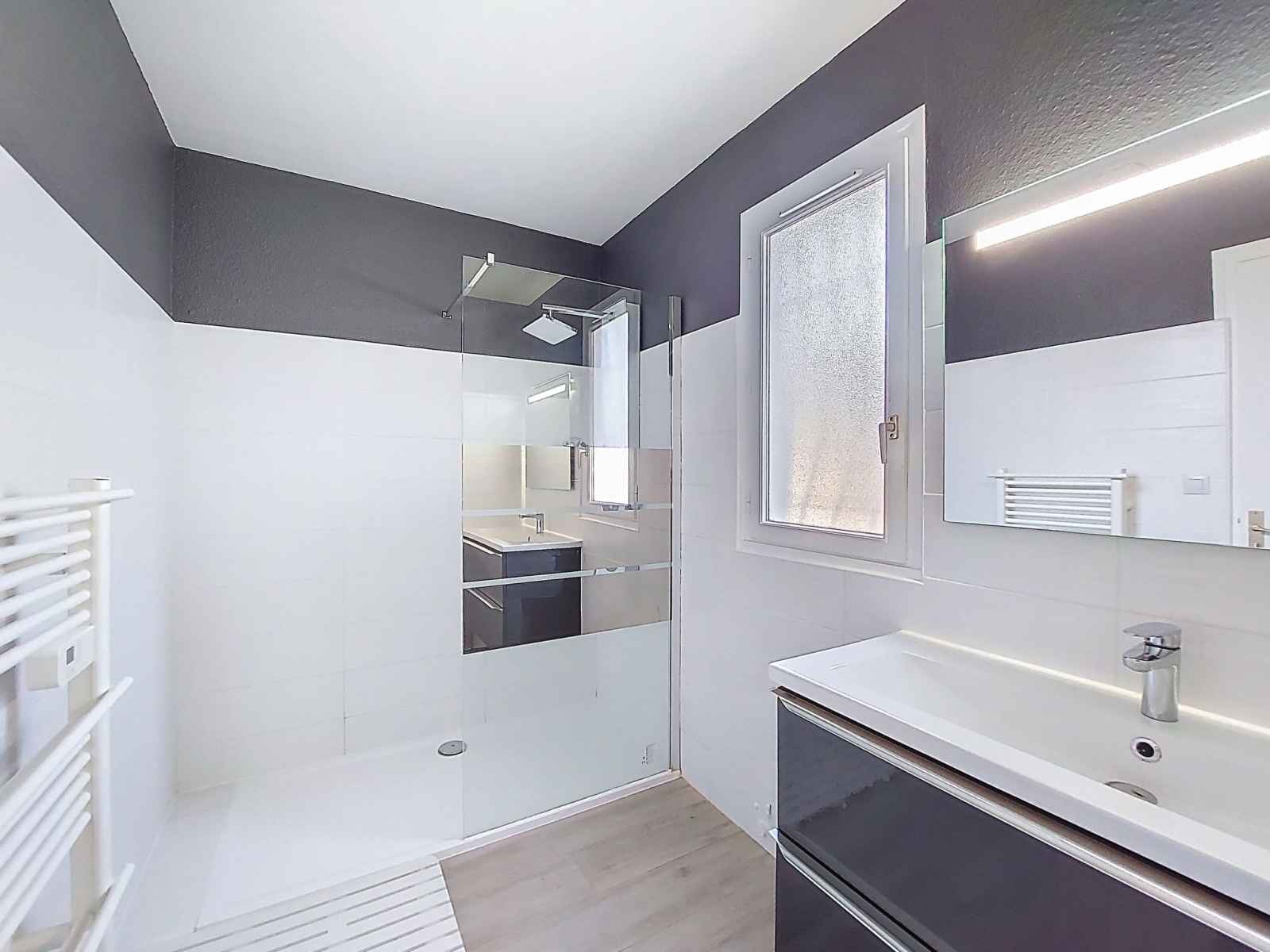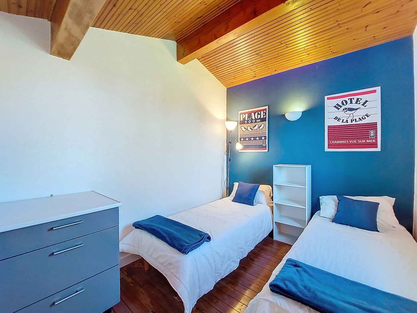 séparé. Chauffage électrique. À l'étage supérieur: 1 chambre avec 2 lits (80 cm, longueur 190 cm). 1 chambre avec 1 lit double (2 x 80 cm, longueur 190 cm). 2 terrasses 10 m2, jardin 250 m2. Meubles de terrasse, barbecue. A disposition: lave-linge, fer à repasser, chaise haute pour enfant, lit bébé. Internet (Connexion WIFI, en sus). Place de parking (2 Voitures). Veuillez noter: maximum 1 animal/ chien de petite taille autorisé. Détecteur de fumée. Annonce d'un particulier (art 155, IV du CGI).