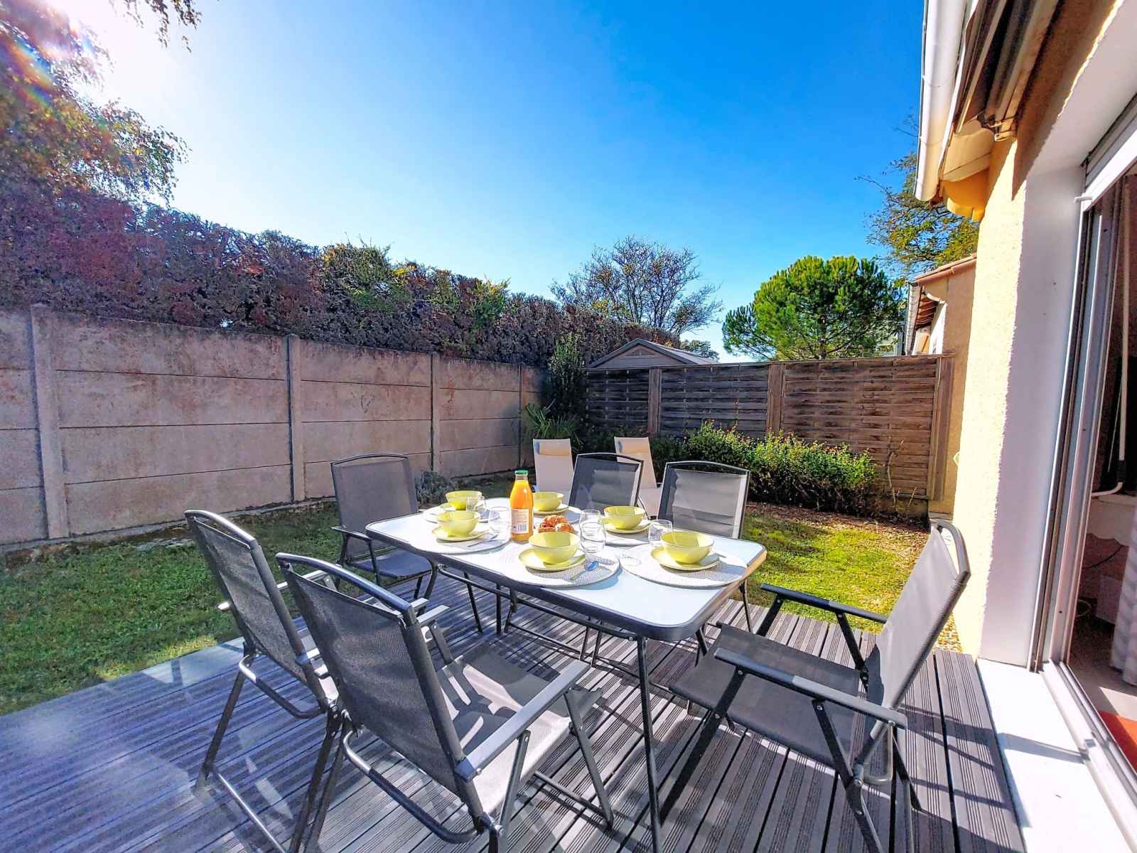 Petite résidence "les floriales". 4 maisons dans la résidence. au centre de vaux sur mer, excellente situation: centrale mais tranquille, à 2 km de la mer, à 2 km de la plage. magasin d'alimentation 350 m, supermarché 1.5 km, bar, boulangerie 350 m, arrêt de bus "courtot" 350 m, gare ferroviaire "royan" 6 km, plage de sable "nauzan" 2 km,