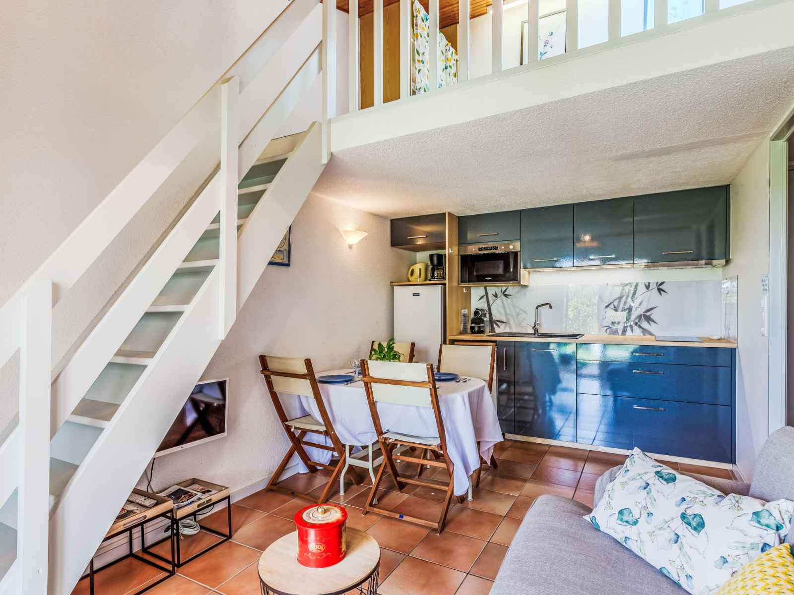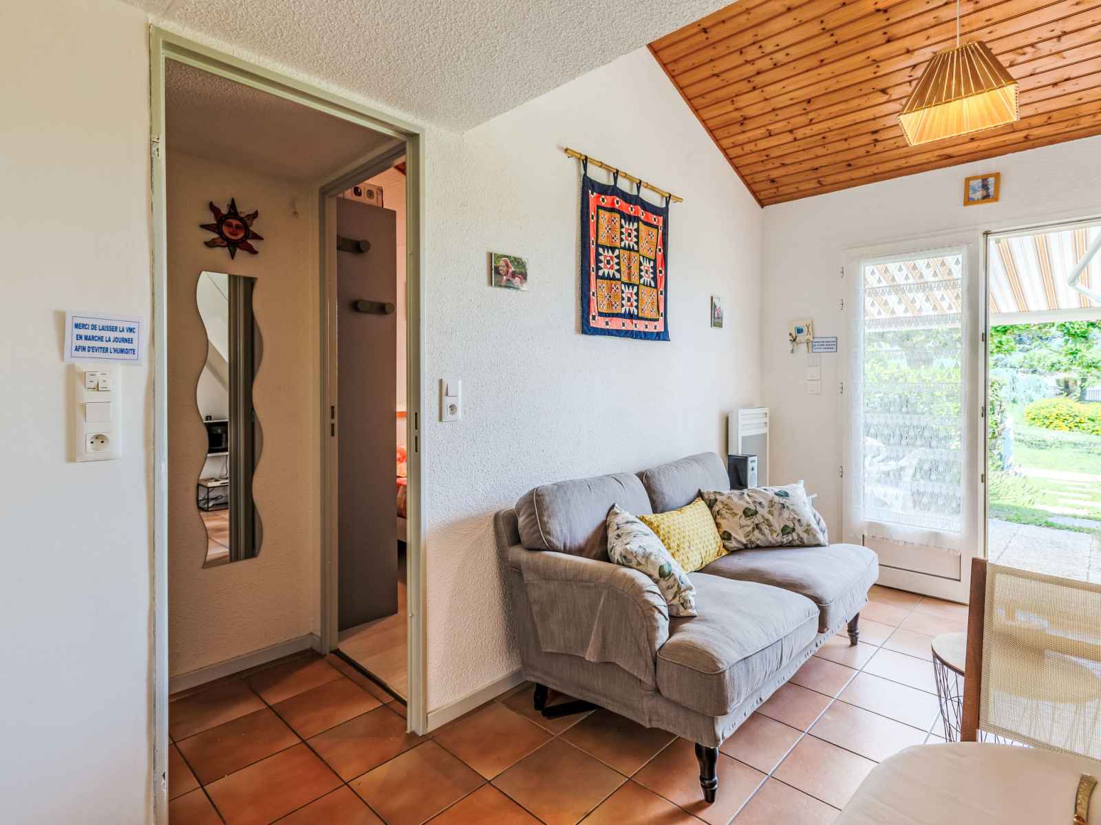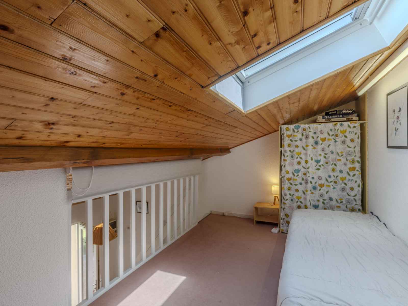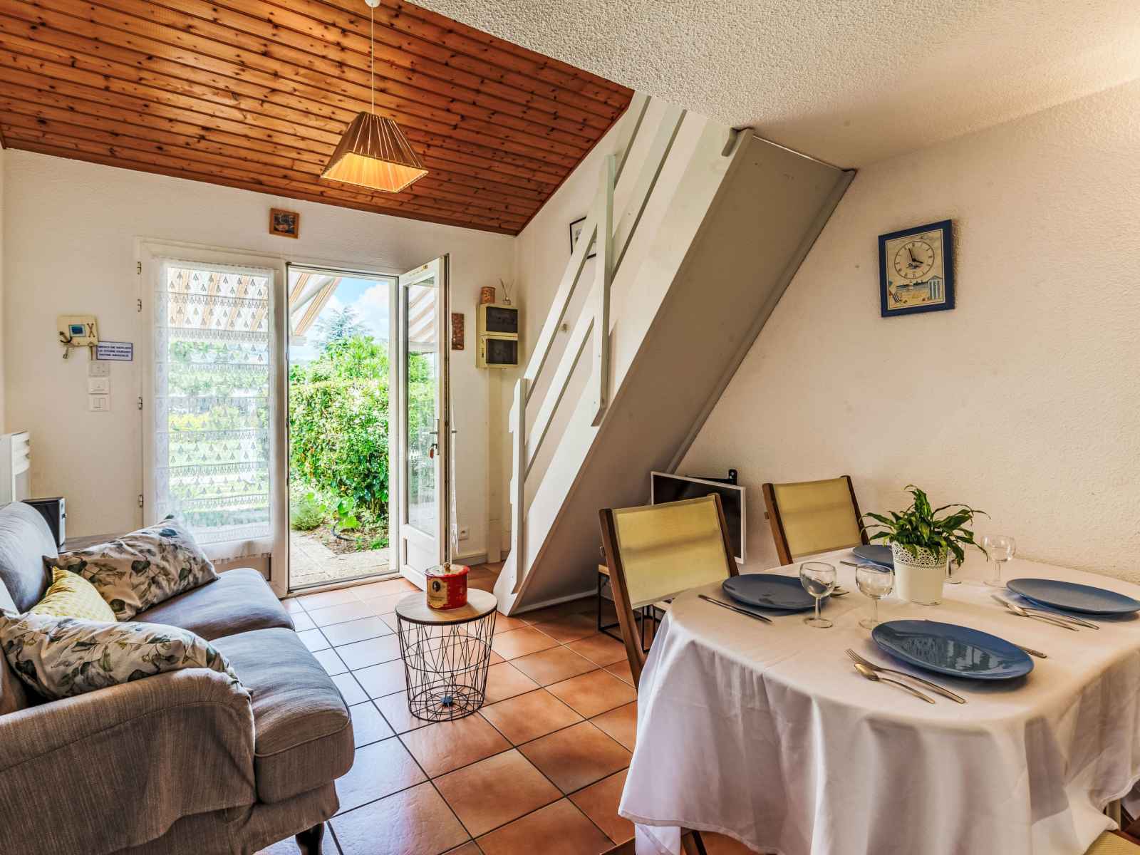 Maison mitoyenne 2 pièces 27 m2. séjour/salle à manger avec tv, écran plat et chaîne stéréo. sortie sur le jardin. 1 chambre avec 1 grand-lit (1 x 140 cm, longueur 190 cm). coin cuisine (2 plaques de cuisson, mini-four, four, lave-vaisselle, micro-ondes, cafetière électrique). douche, wc séparé. chauffage électrique. À l'étage