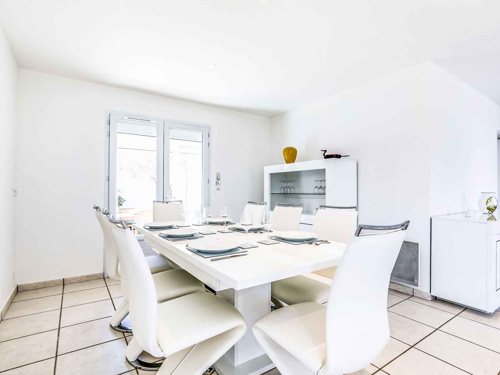 Villa 4 pièces 97 m2. clair, aménagement moderne: séjour/salle à manger avec tv. sortie sur le jardin, sur la véranda. 2 chambres, chaque chambre avec: 1 grand-lit (1 x 160 cm, longueur 190 cm). 1 chambre avec 2 lits (90 cm, longueur 190 cm). cuisine (four, lave-vaisselle, 4 plaques vitrocéramiques, congélateur). salle de bains, wc