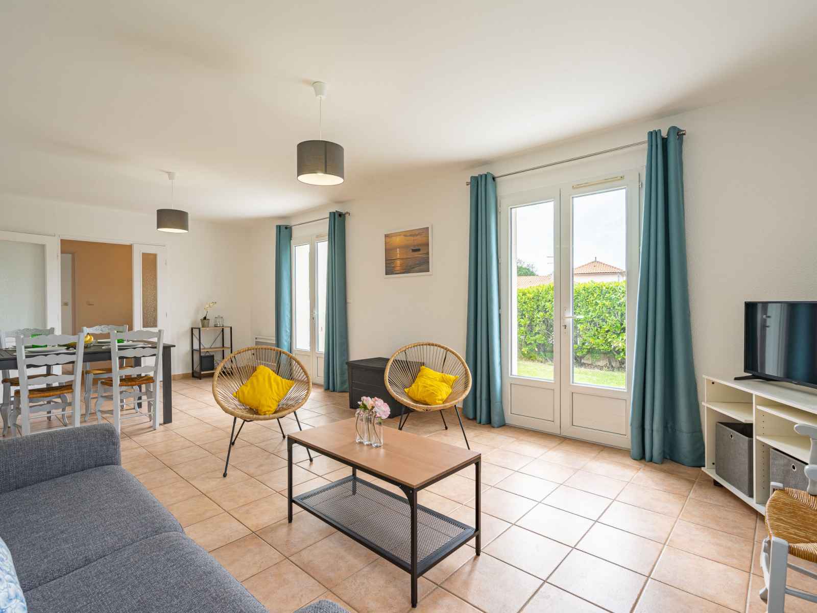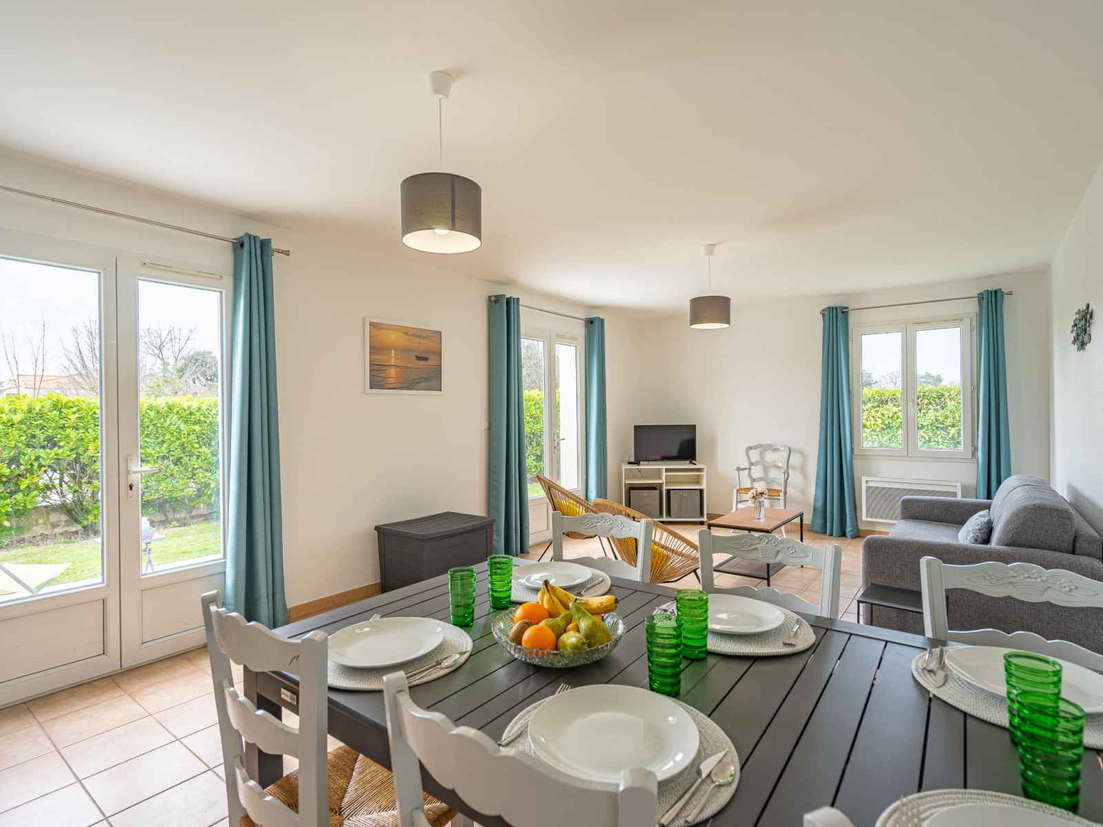 Maison 4 pièces 96 m2. grand séjour/salle à manger avec tv (écran plat). sortie sur la terrasse. 1 chambre avec 1 grand-lit (1 x 160 cm, longueur 200 cm). 1 chambre avec 1 lit double (2 x 80 cm, longueur 200 cm). 1 chambre avec 2 lits (90 cm, longueur 190 cm). cuisine (4 plaques de cuisson, four, lave-vaisselle, 4 plaques à induction,
