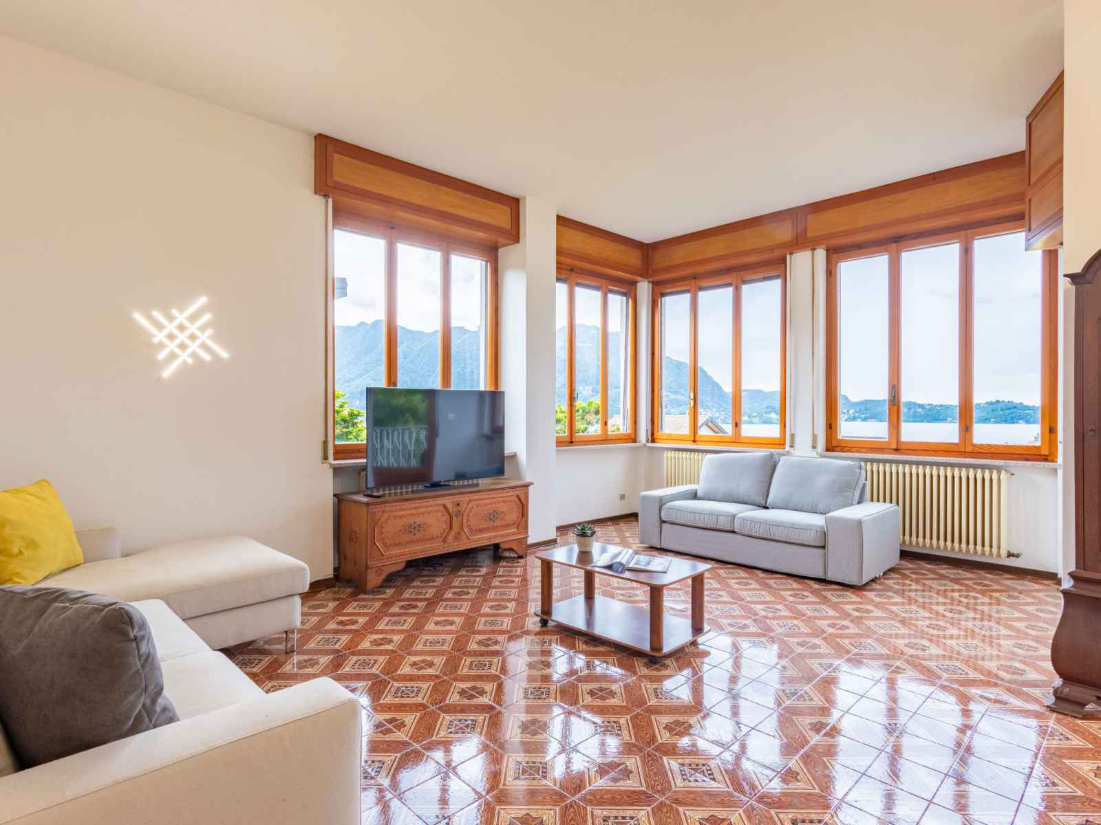 grand séjour avec TV. Sortie sur le balcon. 2 chambres doubles. 1 chambre avec 1 lit. Cuisine (4 plaques de cuisson, bouilloire électrique, cafetière électrique). Bain/bidet/WC, douche/bidet/WC. Pas de chauffage. 2 balcons. Mobilier de balcon. Belle vue panoramique sur le lac. A disposition: lave-linge, sèche-cheveux. Internet (Connexion WIFI, gratuit). Maximum 2 animaux/ chiens autorisés. IT103072C2EUU2BNMU