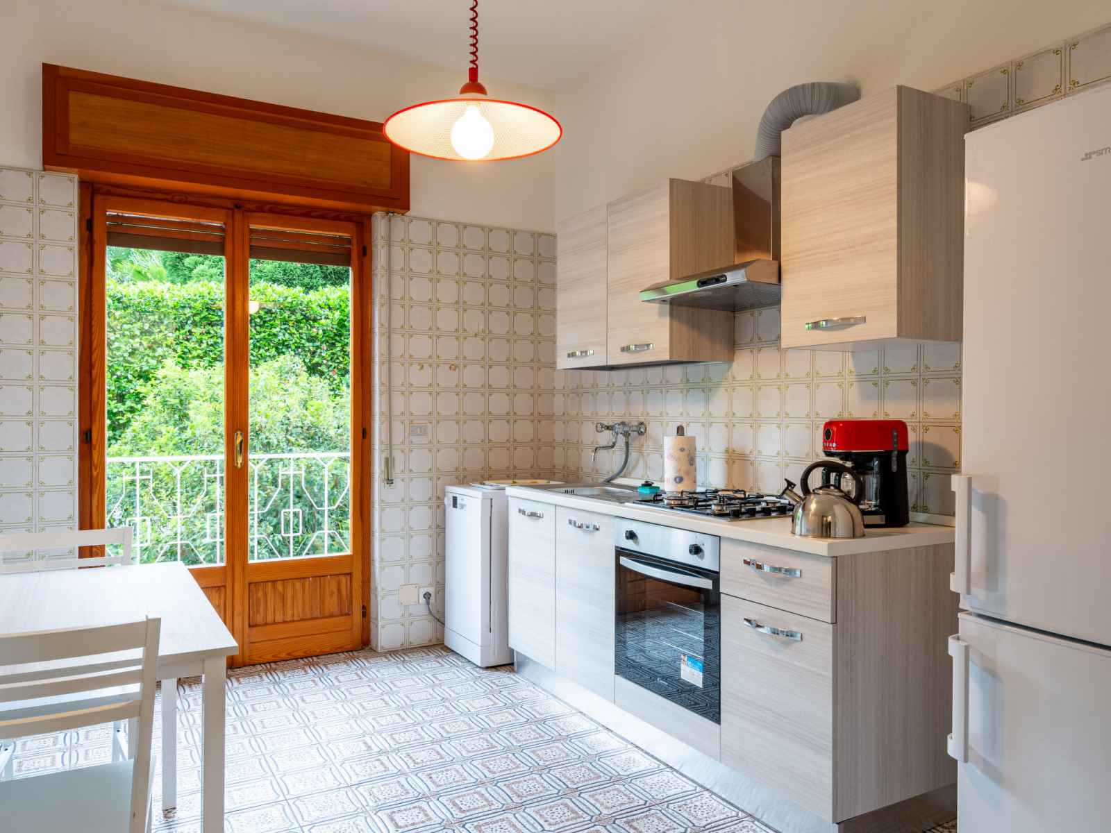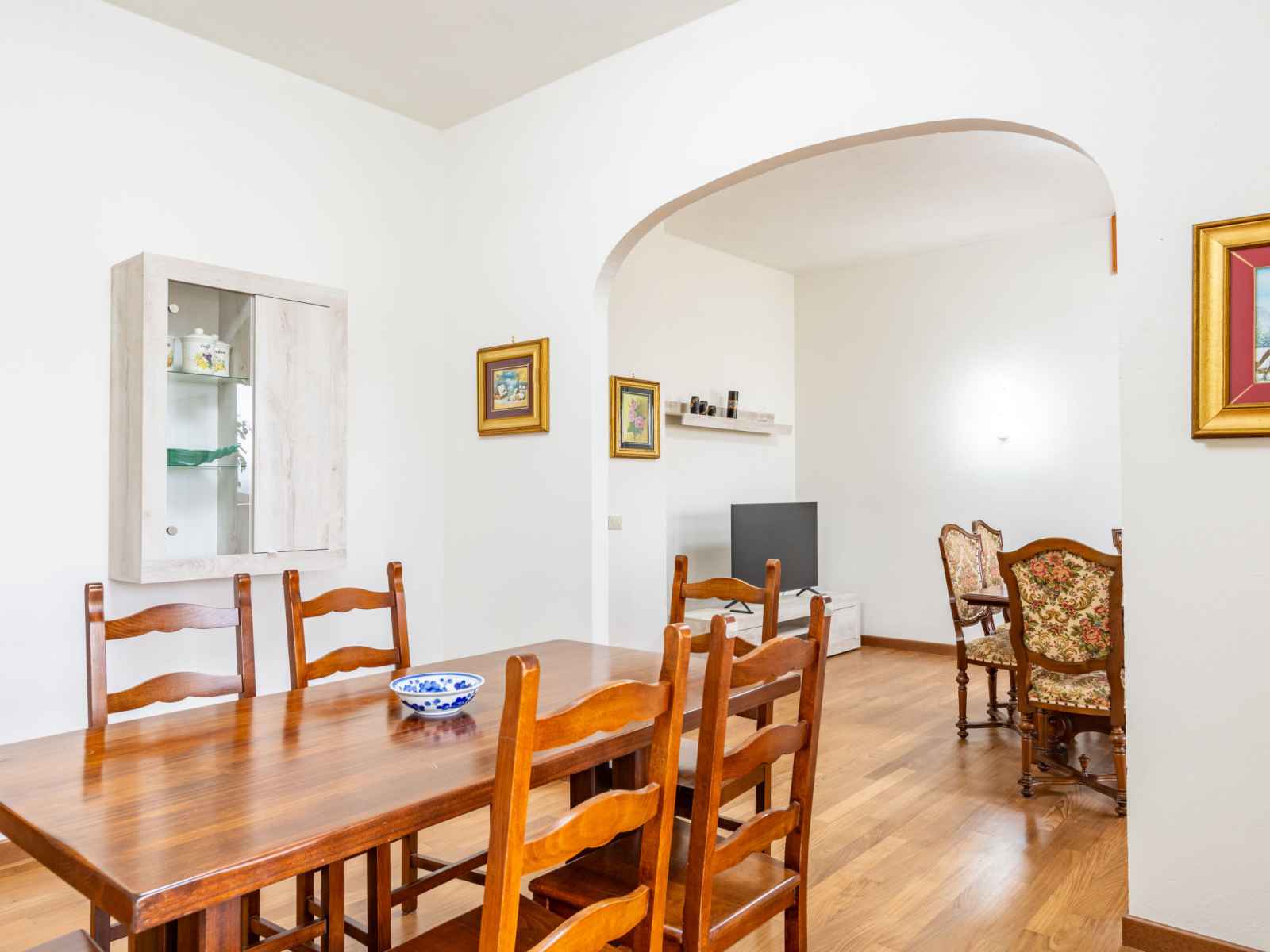 Maison 8 pièces 240 m2 au 1er étage. aménagement fonctionnel: grand séjour/salle à manger avec tv. sortie sur le balcon. 2 chambres doubles. 1 chambre avec 1 lit et 1 lit gigogne. cuisine (4 plaques de cuisson, four, lave-vaisselle, micro-ondes, congélateur, cafetière électrique). bain/bidet/wc, douche/bidet/wc. À l'étage supérieur: