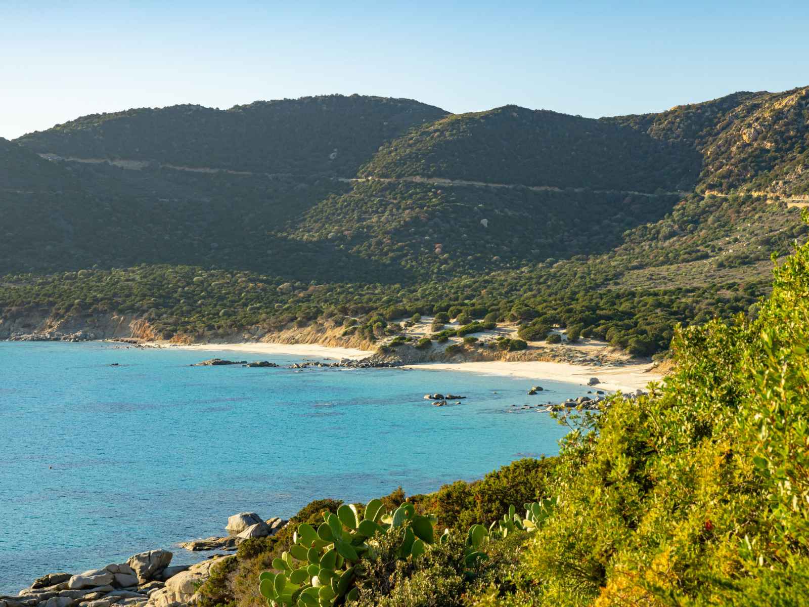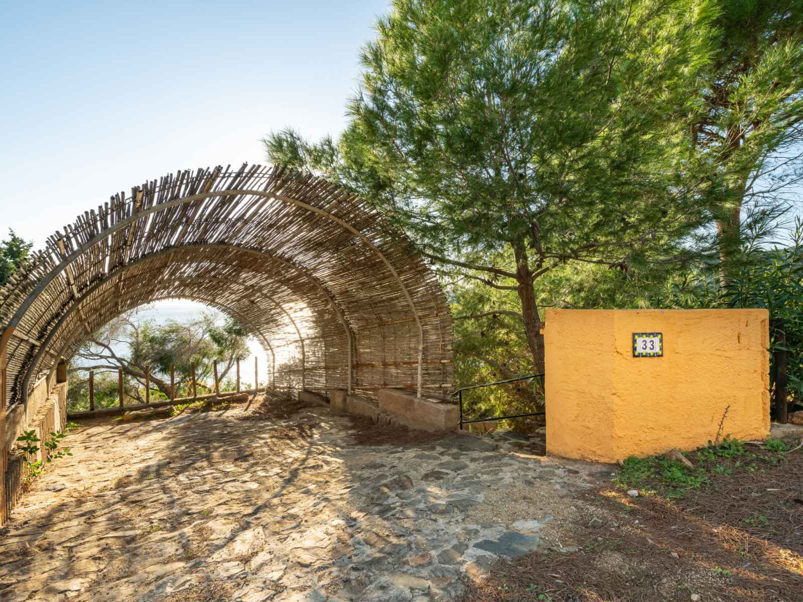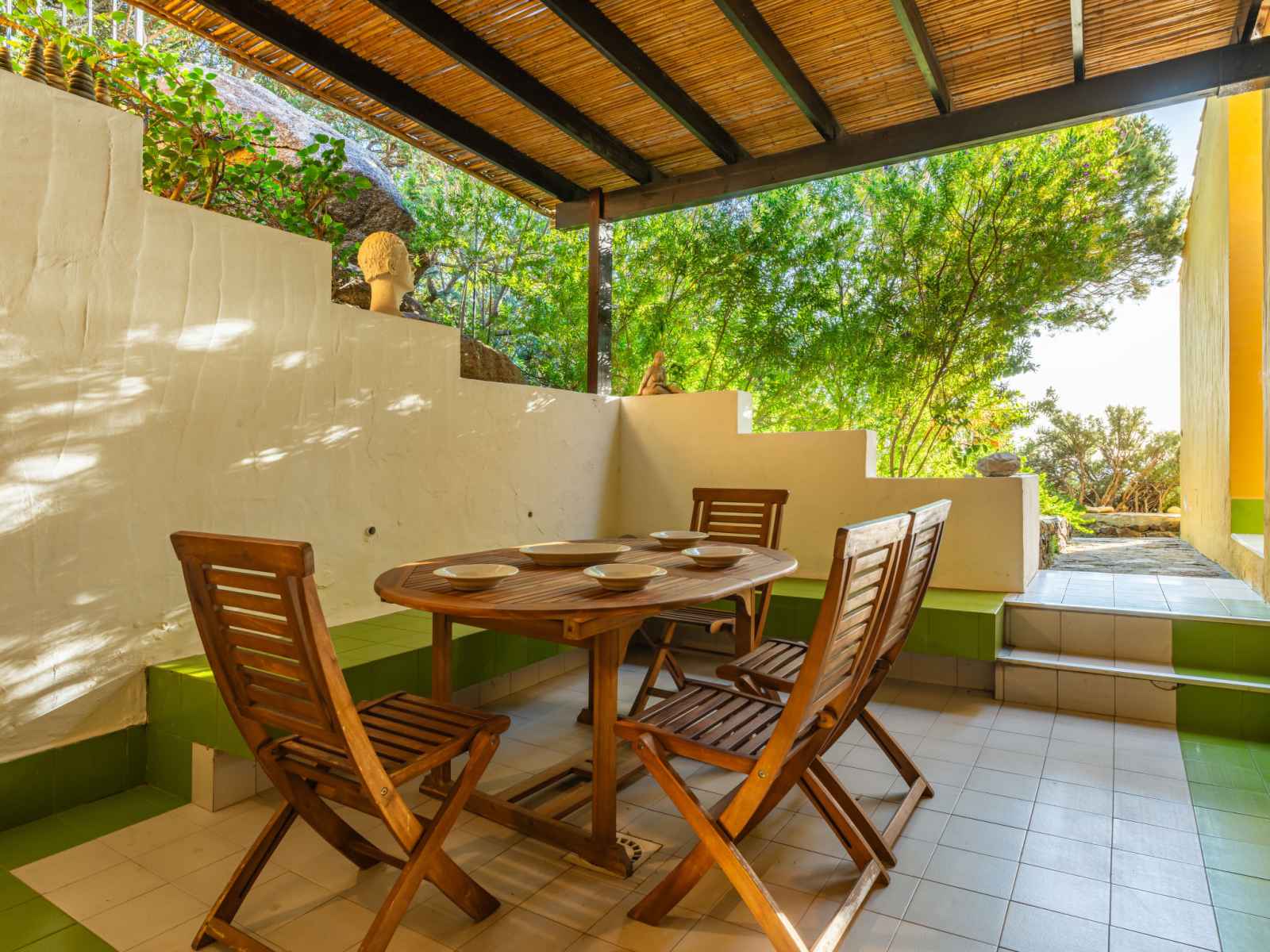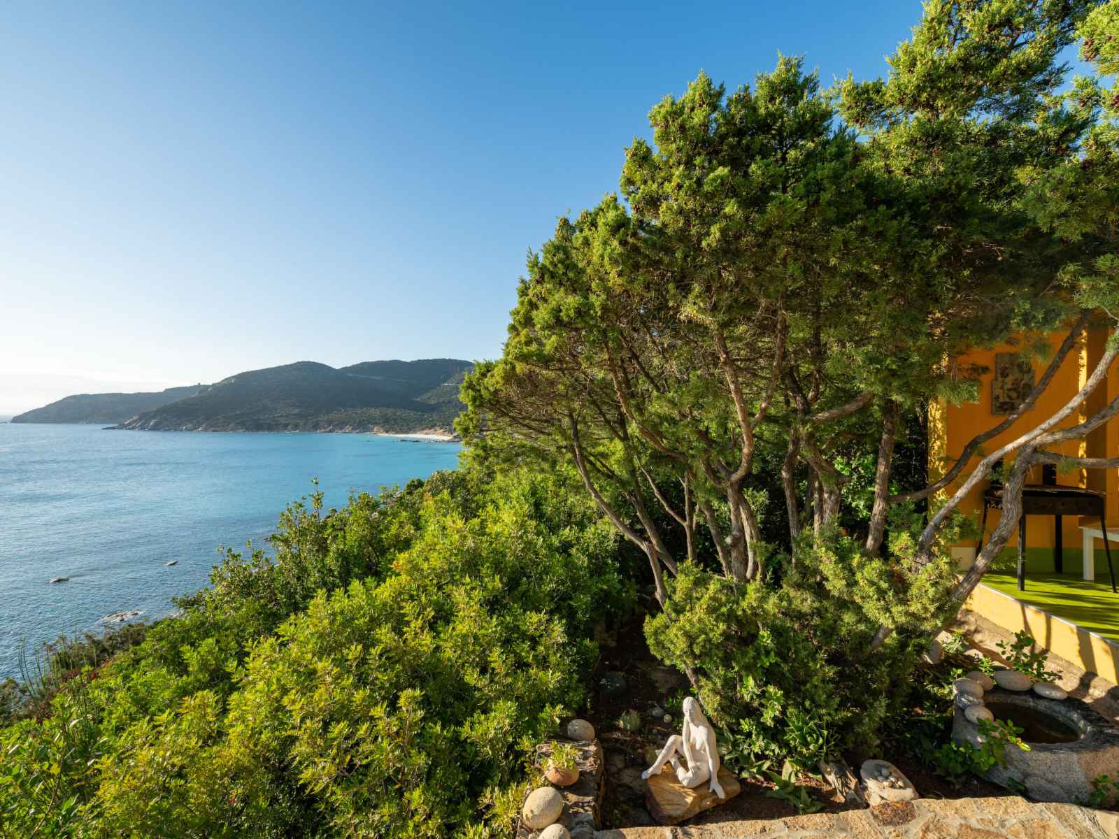 Belle résidence "capo boi", environnée par les arbres et prés. en bordure de la localité, à 6 km du centre de villasimius, à 300 m de la mer, à 300 m de la plage, accès direct à la plage, dans la verdure. a usage privé: terrain (clôturé). accès en voiture par un chemin raide de 500 m de long (chemin non goudronné). place de parking.