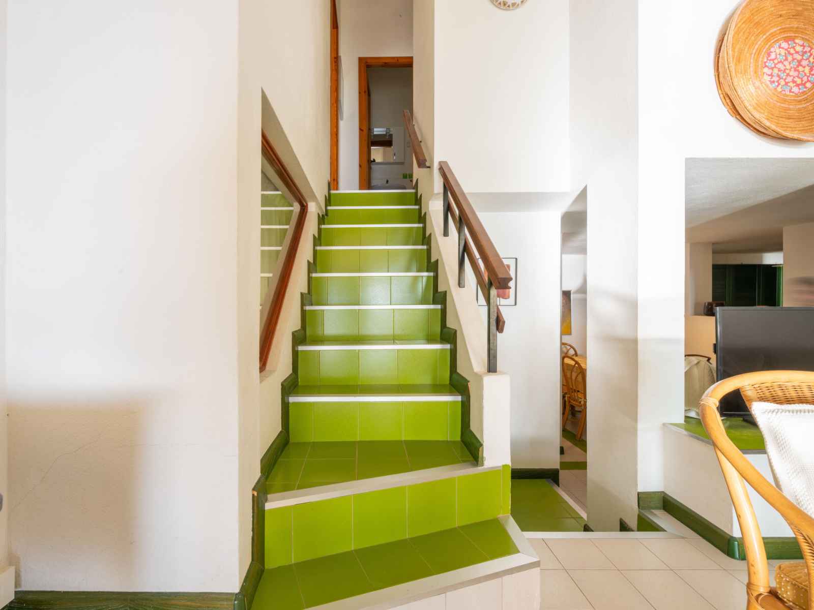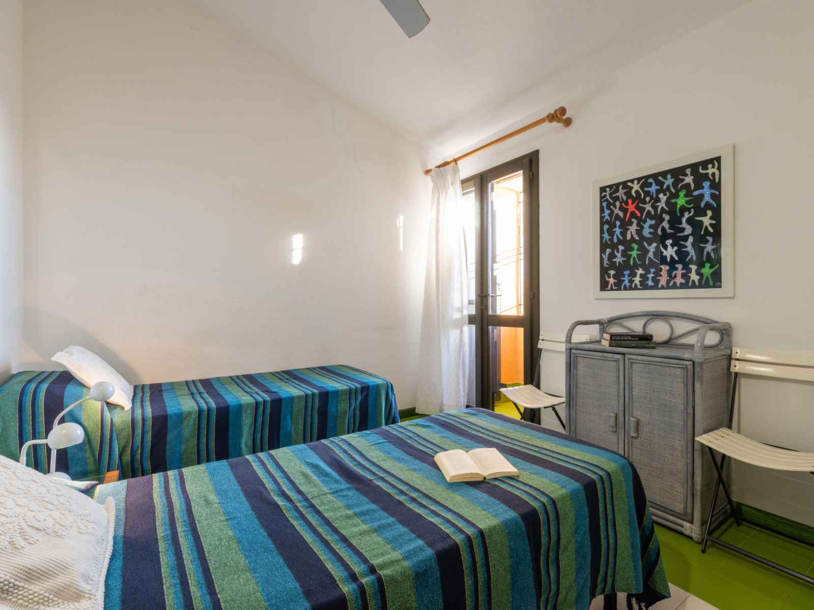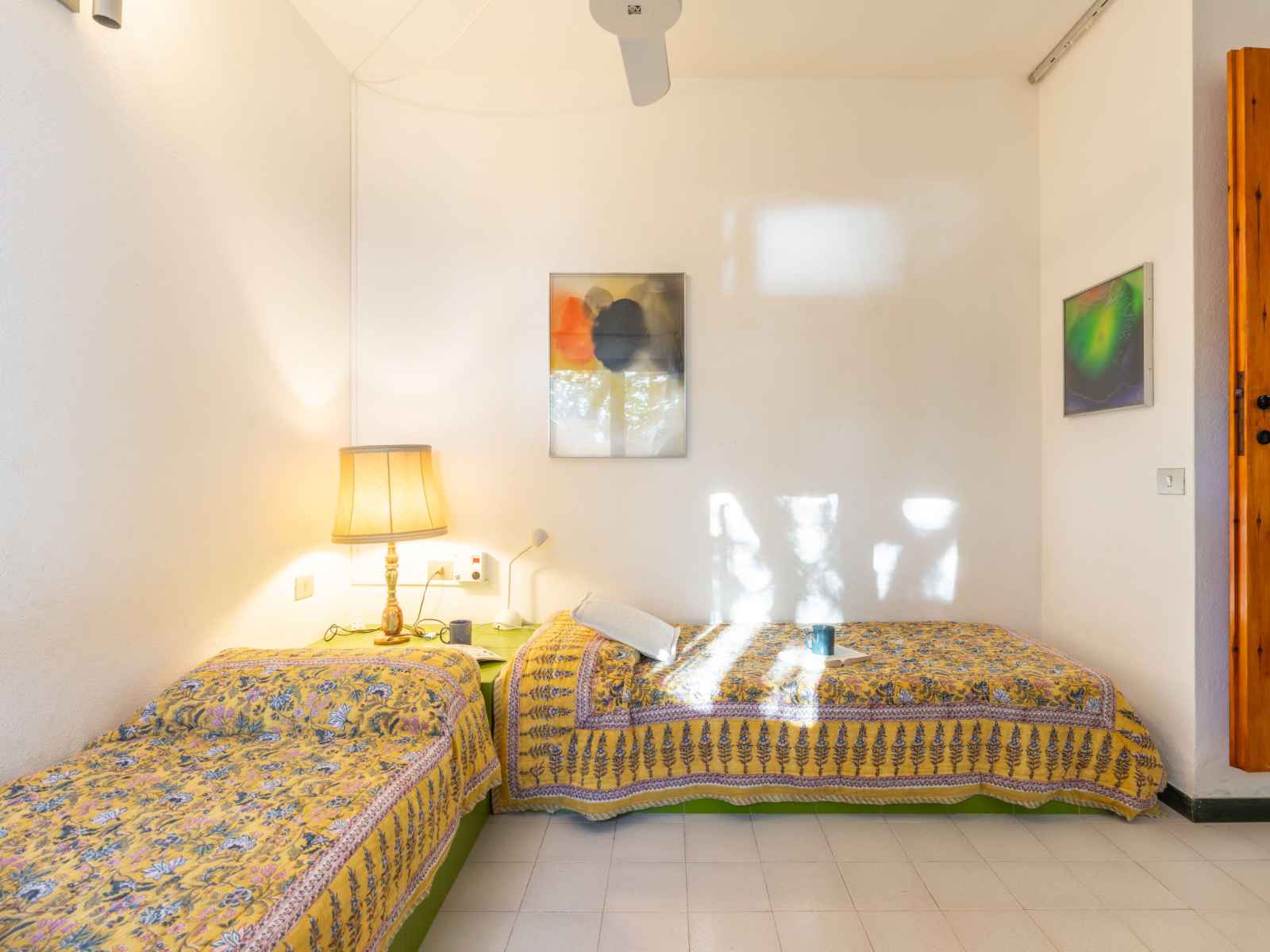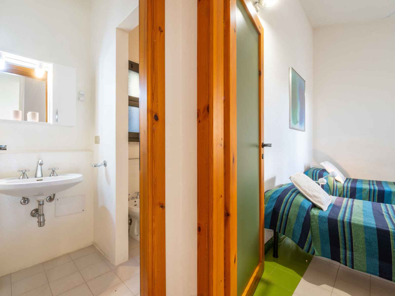 Maison 5 pièces 80 m2 sur 2 niveaux. aménagement simple et confortable: séjour/salle à manger avec table pour les repas et tv. sortie sur la véranda. 1 chambre avec 2 lits. 1 chambre avec 1 lit. cuisine (four, 4 feux, bouilloire électrique). 2 douches/bidet/wc. À l'étage supérieur: 1 chambre avec 1 lit double. 1 chambre avec 2 lits. 2