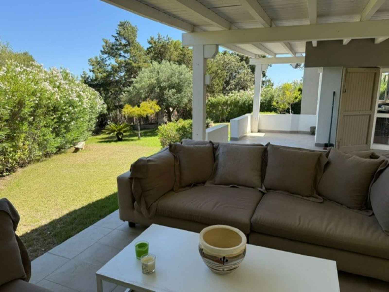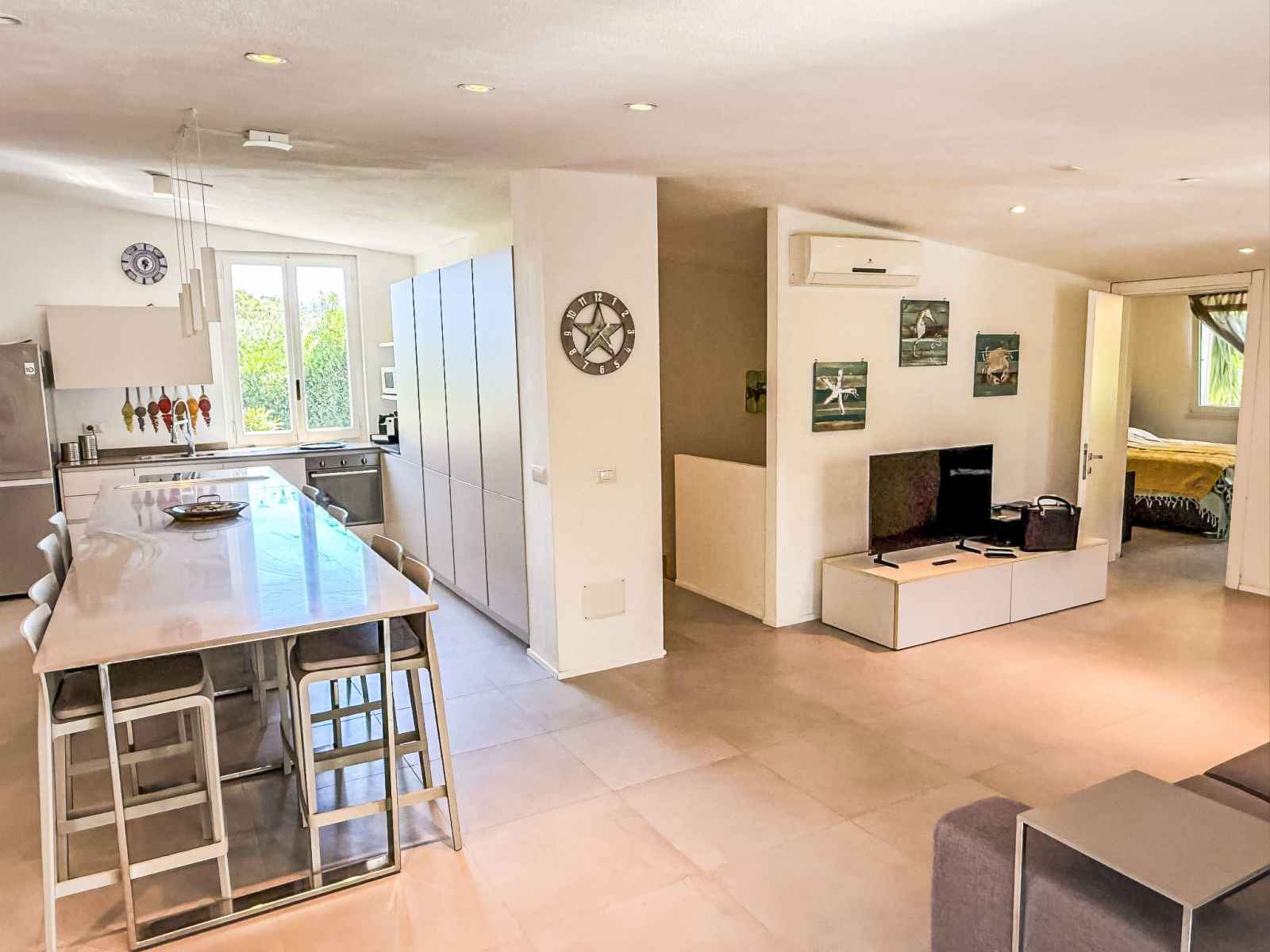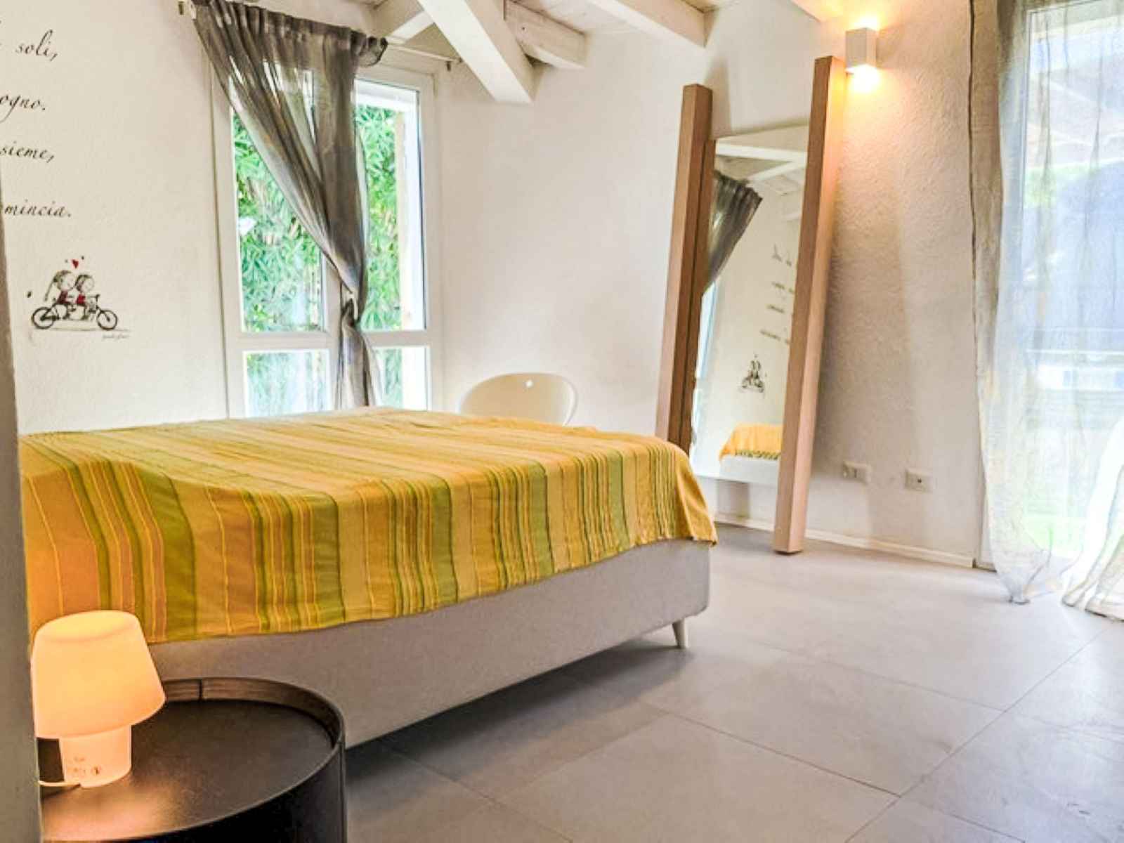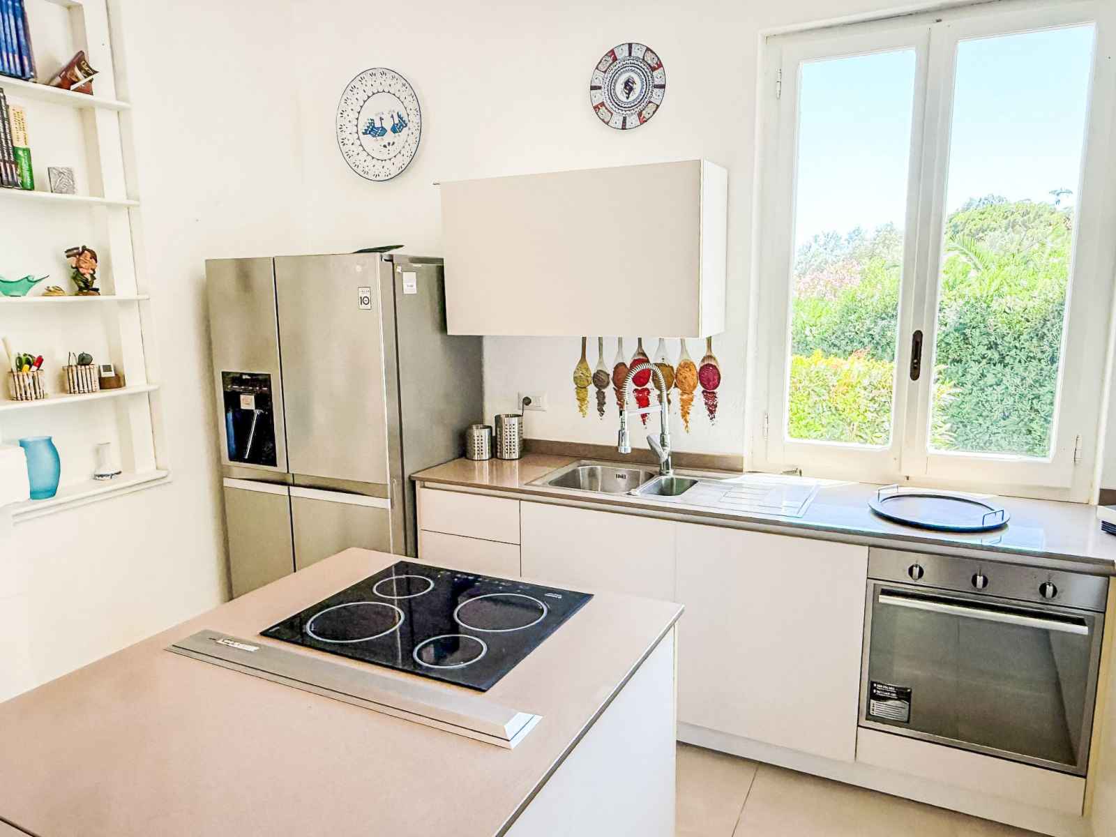 "villa mandorli", villa 6 pièces 150 m2. aménagement confortable et de bon goût: séjour/salle à manger avec tv et air-conditionné. sortie sur le jardin, sur la véranda. 1 chambre avec 1 lit et 1 lit double. 1 chambre avec 1 lit double. grande cuisine (four, 4 plaques vitrocéramiques, grille-pain, bouilloire électrique, micro-ondes,