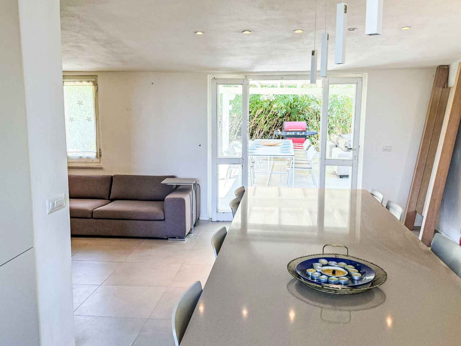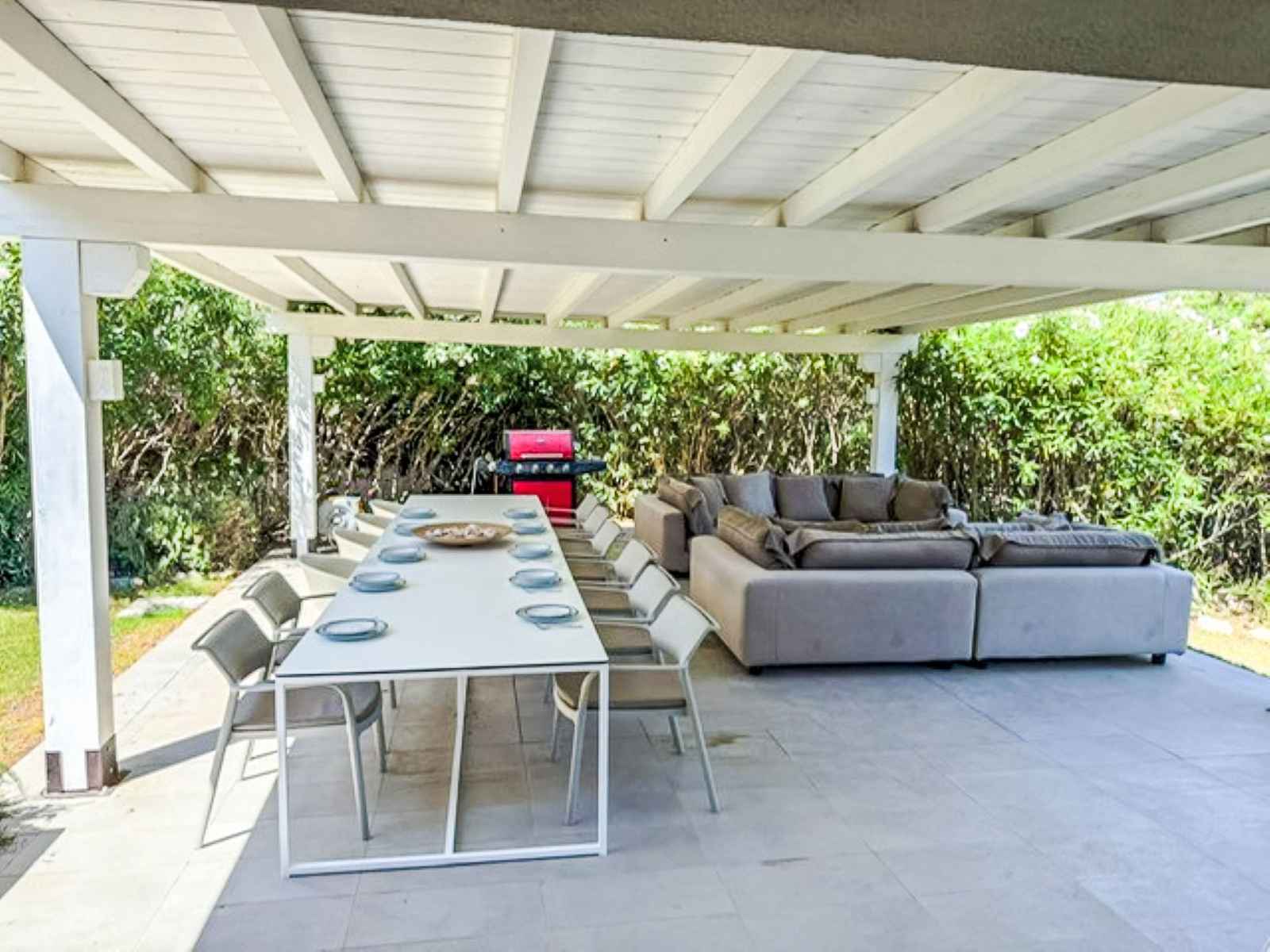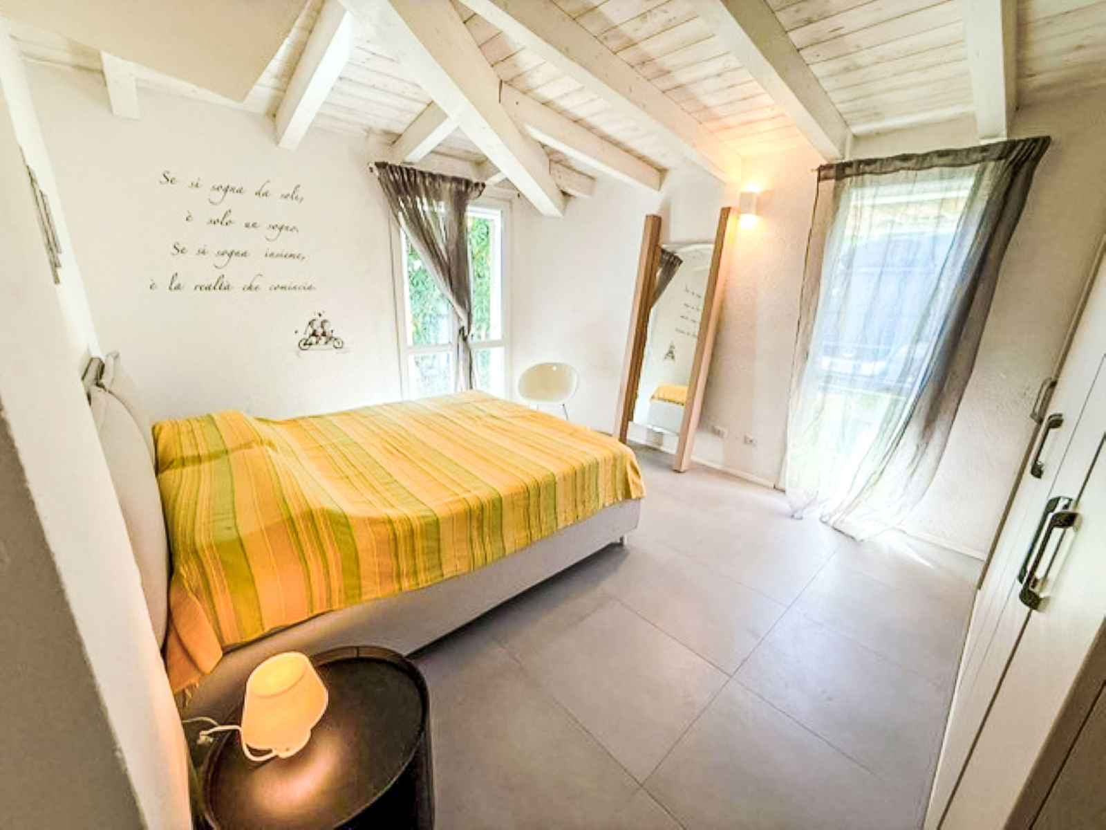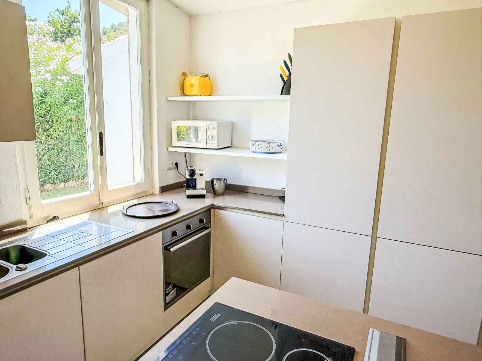 "villa mandorli", villa 6 pièces 150 m2. aménagement confortable et de bon goût: séjour/salle à manger avec tv et air-conditionné. sortie sur le jardin, sur la véranda. 1 chambre avec 1 lit et 1 lit double. 1 chambre avec 1 lit double. grande cuisine (four, 4 plaques vitrocéramiques, grille-pain, bouilloire électrique, micro-ondes,