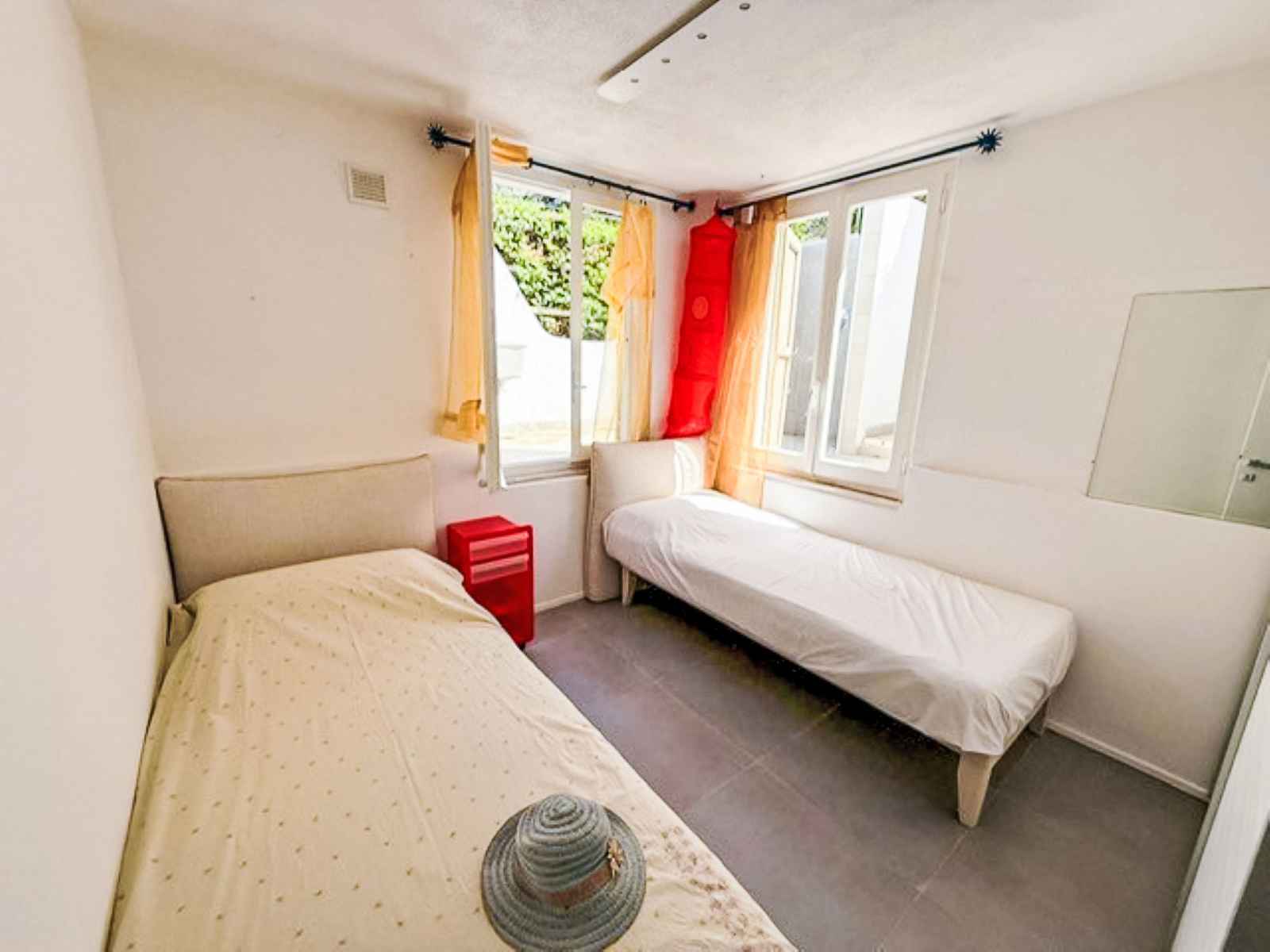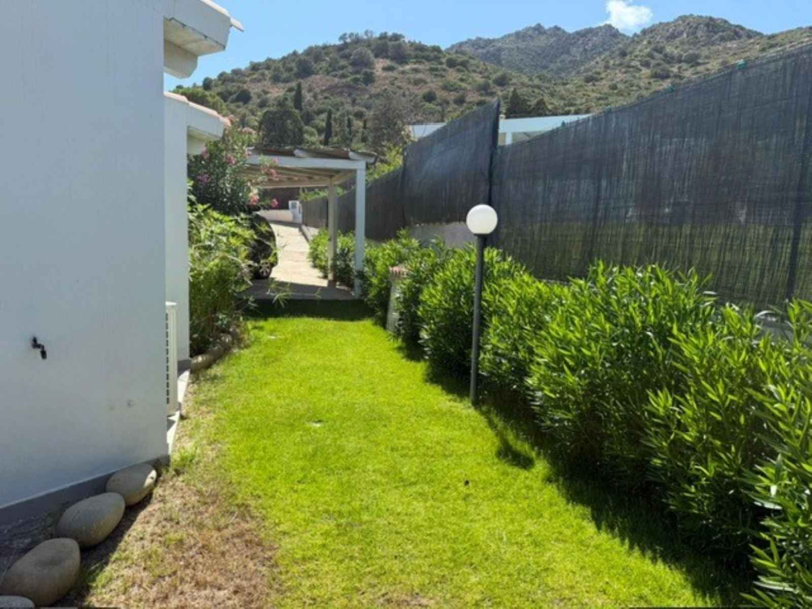 Maison individuelle accueillante, confortable, environnée par les arbres. À 2.5 km du centre de villasimius, à 500 m de la mer, à 500 m de la plage, dans la verdure. en commun: jardin (clôturé) avec plantes et arbres. accès en voiture par un chemin difficile de 800 m de long. place de parking près de la maison. magasins, supermarché,