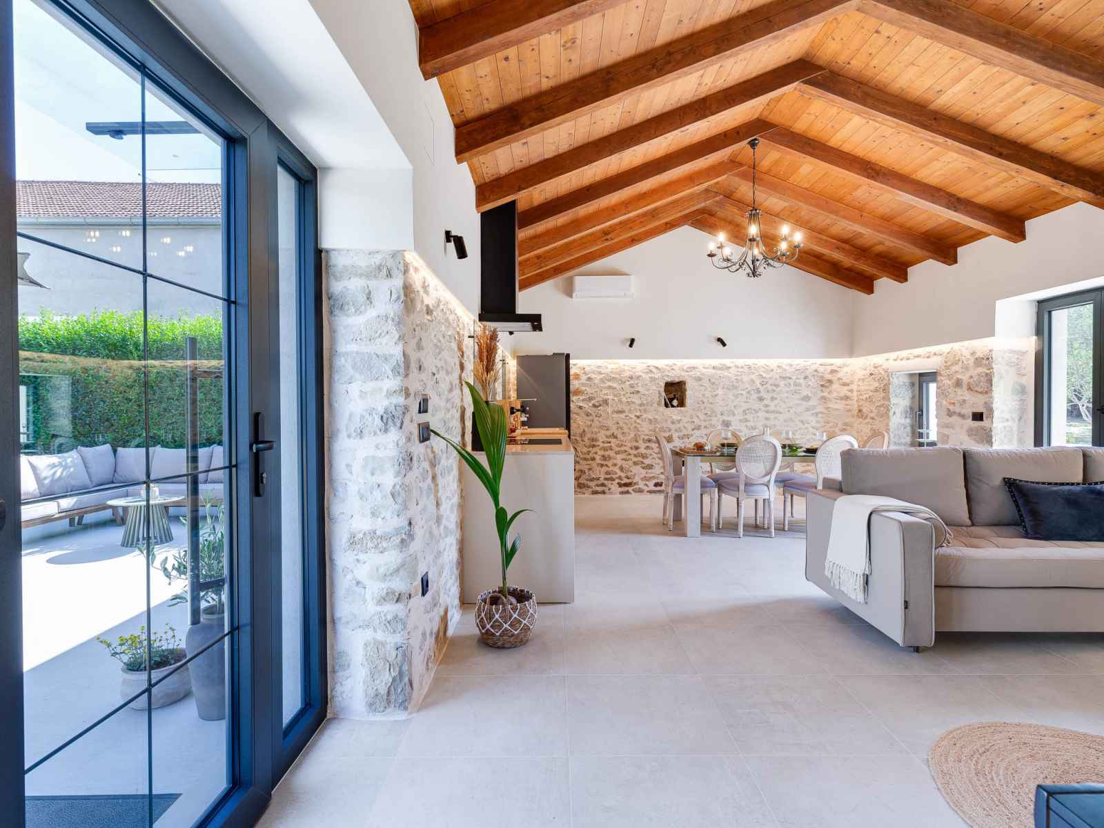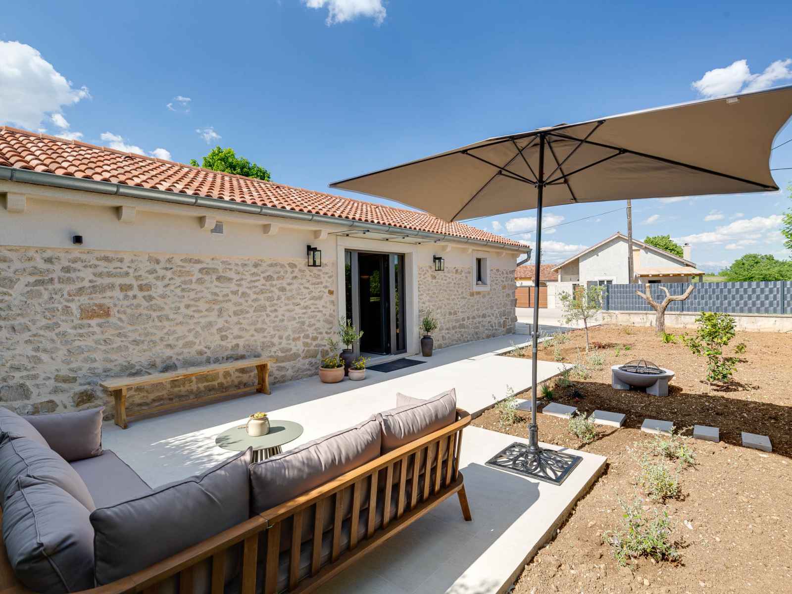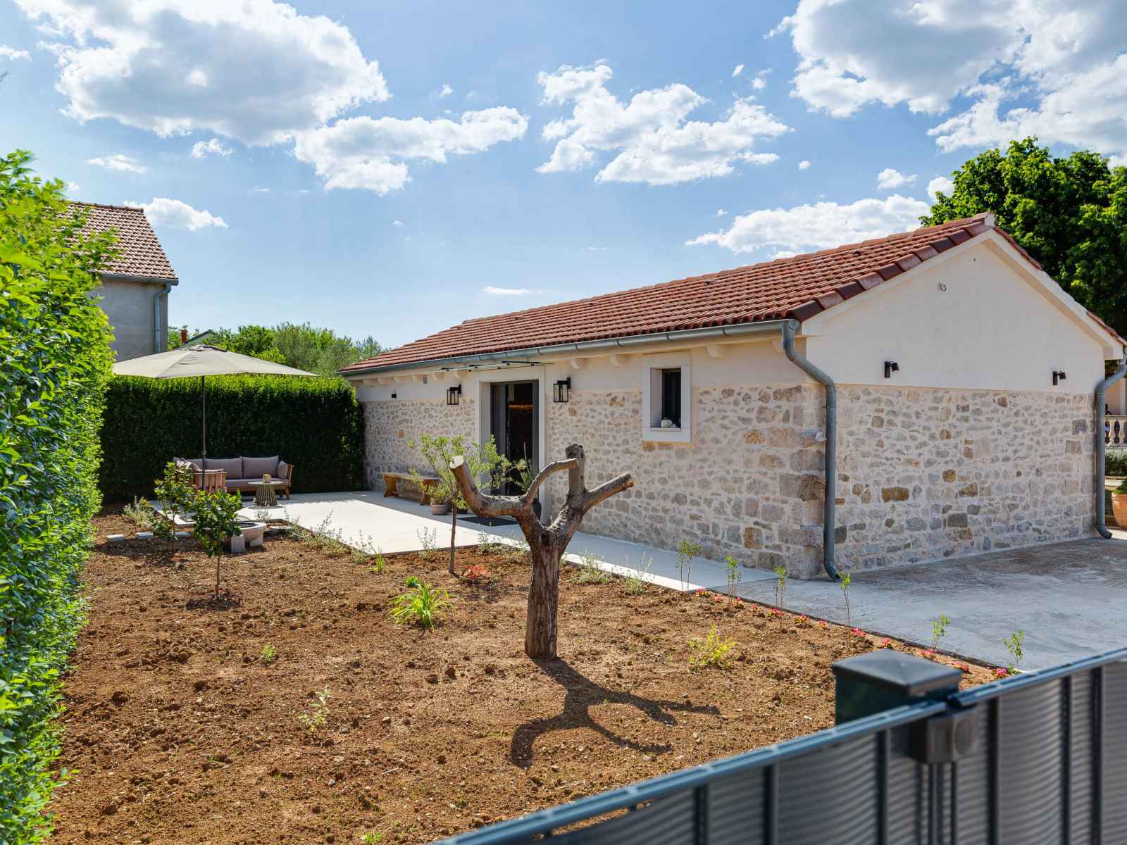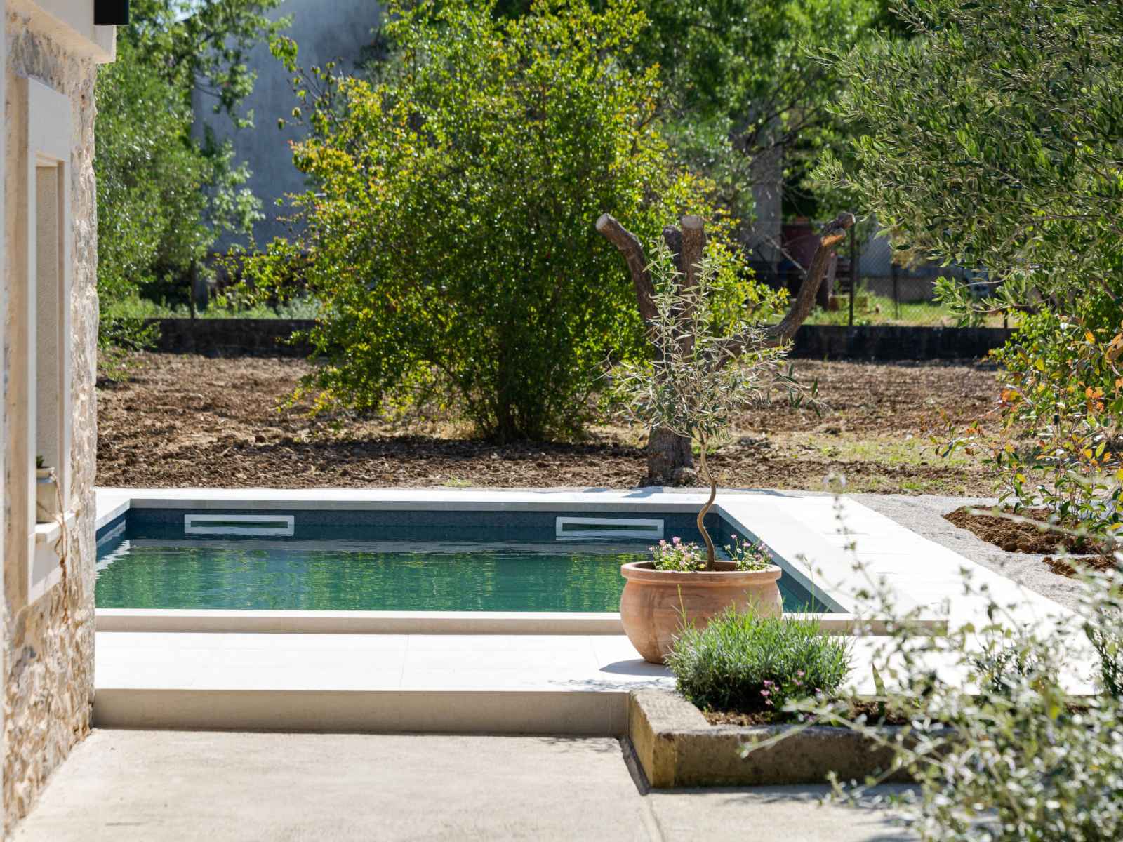 Zemunik à 10 km de zadra: belle maison individuelle "stanca", rénovée en 2024. À 800 m du centre, situation ensoleillée, surélevée, à 10 km de la mer, à 10 km de la plage. entretien de la piscine par le propriétaire/jardinier. a usage privé: terrain 200 m2 (clôturé), piscine en forme d’haricot (7 x 4 m, 28 m2, profondeur 140 cm,