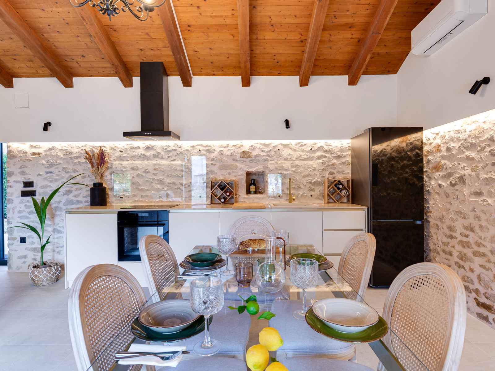 Maison 2 pièces 80 m2, situation sud-ouest. séjour/salle à manger 45 m2 avec 1 divan-lit double (140 cm, longueur 200 cm), tv (satellite) (écran plat), air-conditionné. sortie sur la véranda. 1 chambre avec 1 grand-lit (160 cm, longueur 200 cm). cuisine ouverte (four, lave-vaisselle, 4 plaques à induction, cafetière électrique).