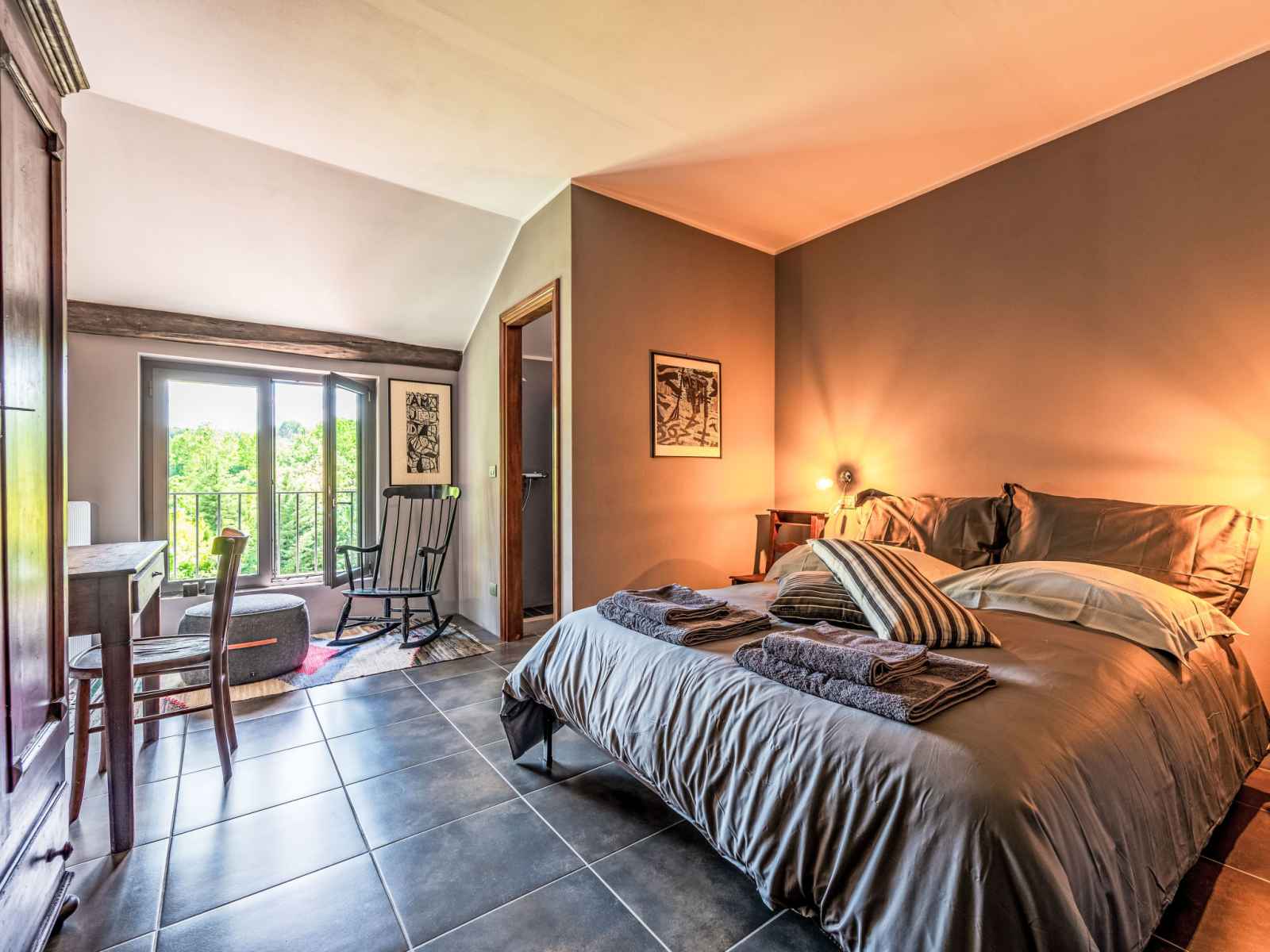 "beppe country house", maison mitoyenne 7 pièces 200 m2 sur 3 niveaux. complètement rénovée, aménagement moderne et de bon goût: 2 chambres doubles, chaque chambre avec: douche/bidet/wc. À l'étage inférieur: grand séjour/salle à manger avec baie vitrée avec poêle suédois (uniquement à titre de décoration), table pour les repas et