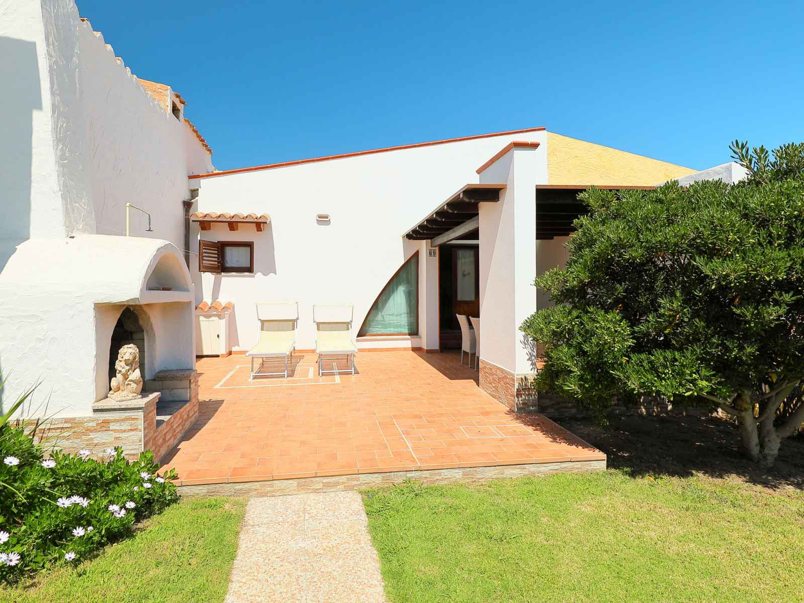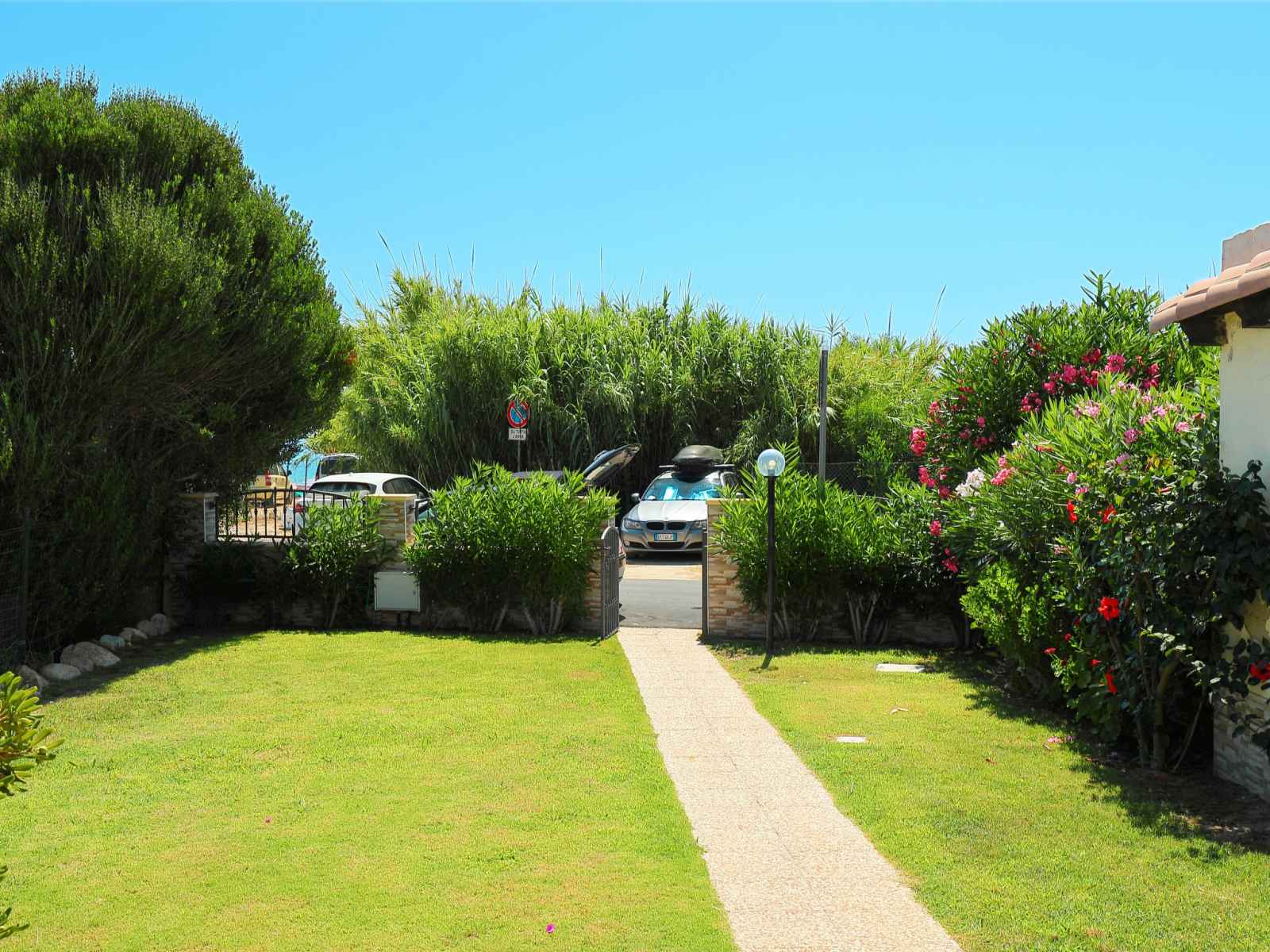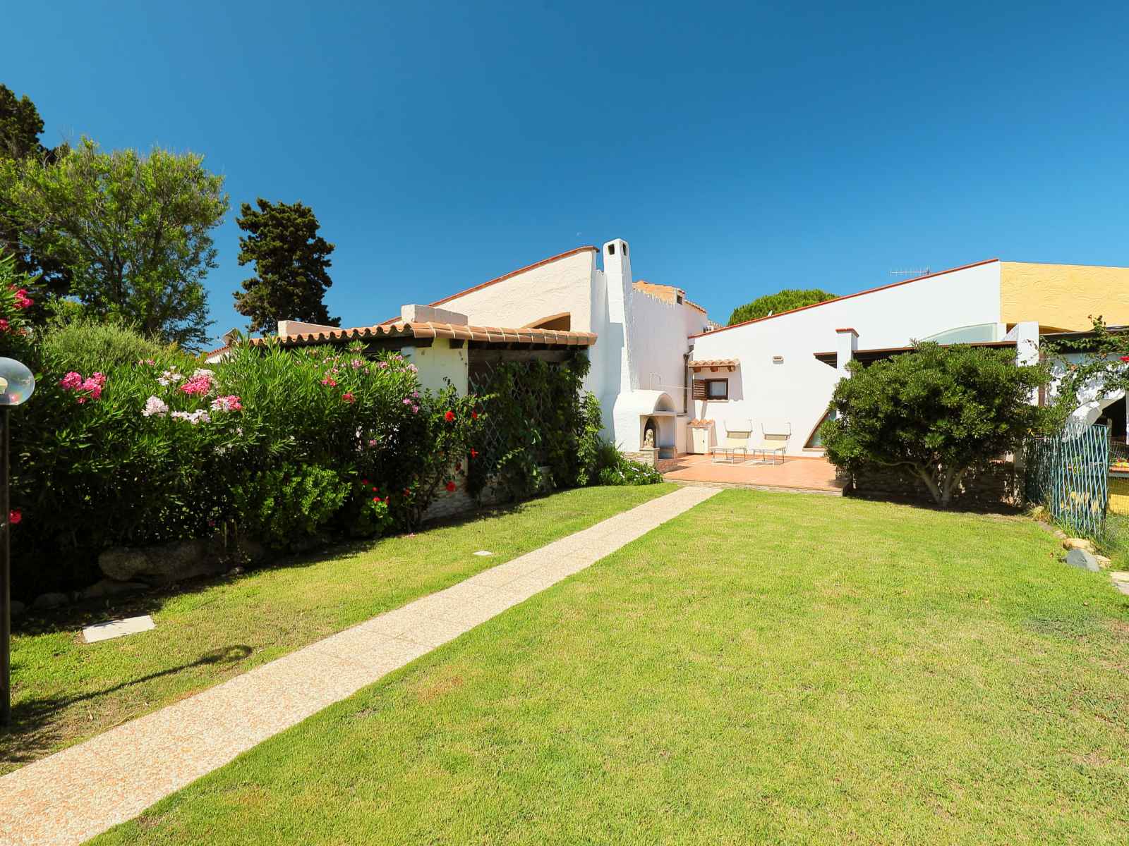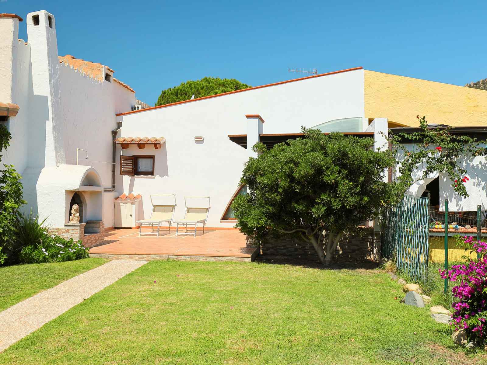 Belle maison mitoyenne "mirto marino". dans le quartier de monte nai, à 250 m du centre de costa rei, à 16 km du centre de villasimius, à 60 km du centre de cagliari, juste au bord de la mer, accès direct à la plage. a usage privé: beau jardin (pas clôturé) avec pelouse et plantes. douche extérieure, place de parking près de la maison.