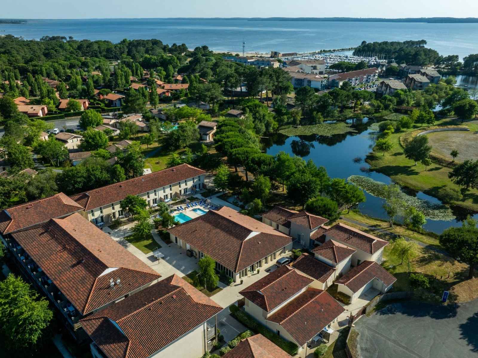 Hourtin est une station familiale et un lieu de vacances idéal entre la forêt des landes de gascogne et le lac d’hourtin carcans. À 5 mn du port, la résidence vous propose des logements avec terrasse ou balcon, une piscine semi-couverte chauffée (short de bain et bermuda interdits) avec bain à remous et pataugeoire, un hammam (avec