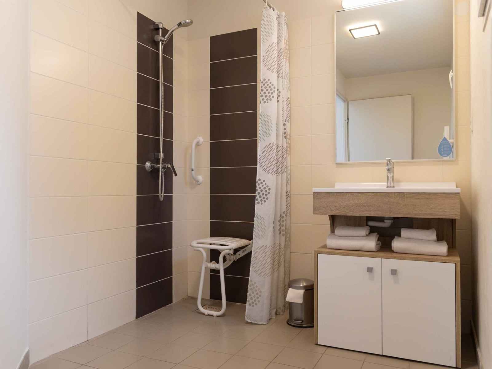 kitchenette (réfrigérateur, plaque vitrocéramique (4 feux), micro-ondes mixte, lave-vaisselle, grille-pain, bouilloire et cafetière à capsules)