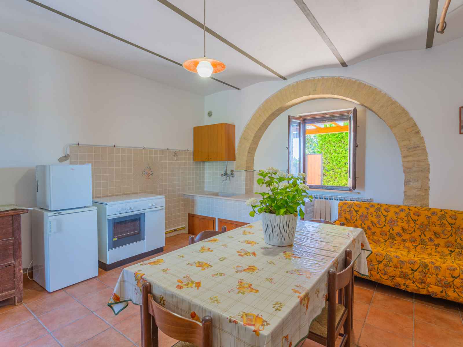"borgo agrituristico il pino (ona200)", maison mitoyenne 2 pièces 60 m2 sur 2 niveaux. aménagement fonctionnel et rustique: cuisine/séjour (5 plaques de cuisson, four) avec table pour les repas, cheminée et tv. sortie sur la terrasse. À l'étage supérieur: (escalier extérieur) 1 chambre avec 1 x 2 lits superposés, 1 grand-lit (160 cm),