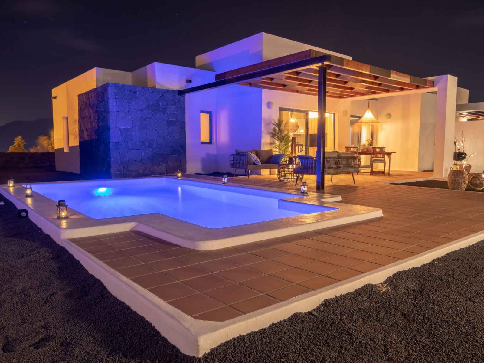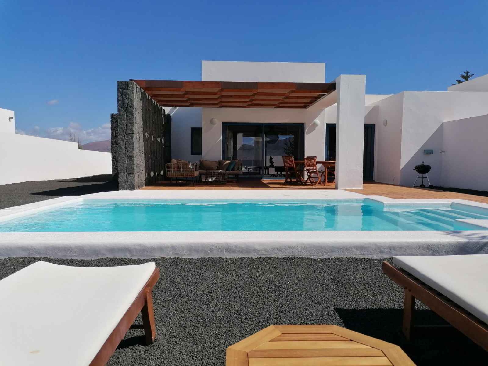 Bellavista à 3 km de playa blanca: belle maison mitoyenne "bellavista". À 2.5 km de la mer. a usage privé: terrain 500 m2, piscine rectangulaire, chauffée (6 x 4 m, disponibilité saisonnière: 01.jan. - 31.dec.) avec marches intérieures. barbecue. sentier en escalier (14 marches) jusqu'à la maison. supermarché 500 m, restaurant 1.5 km,