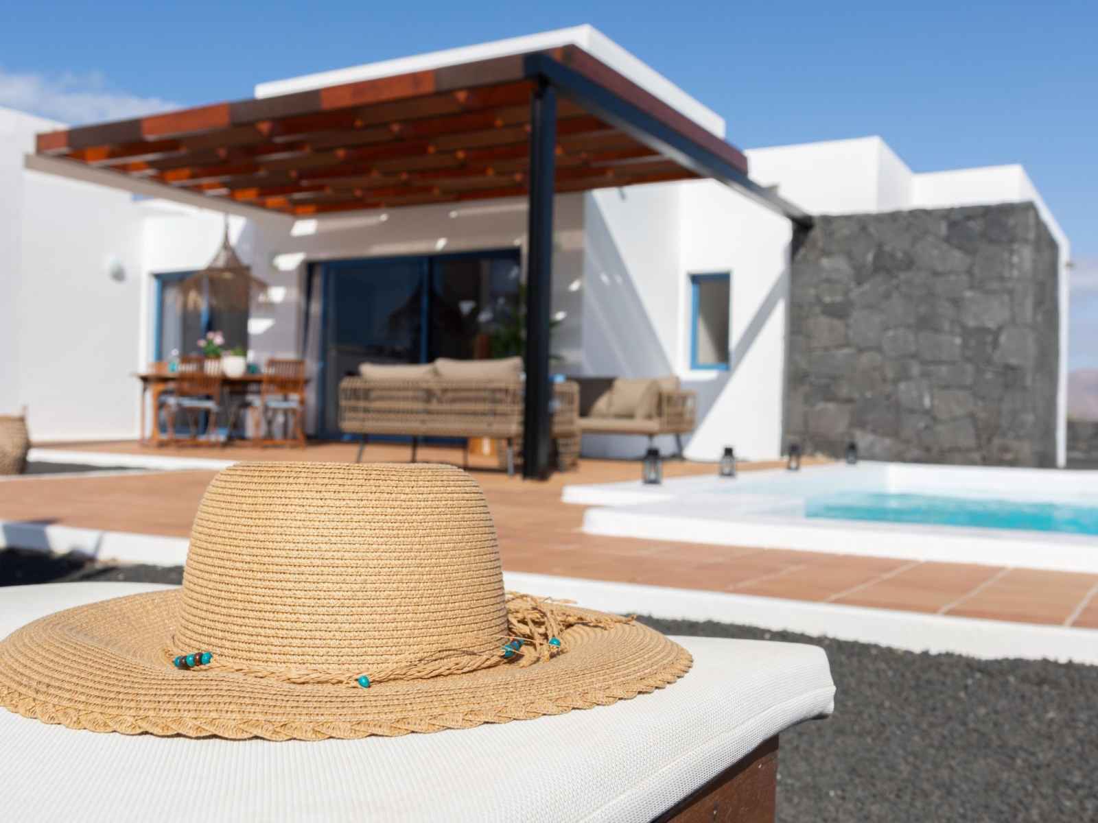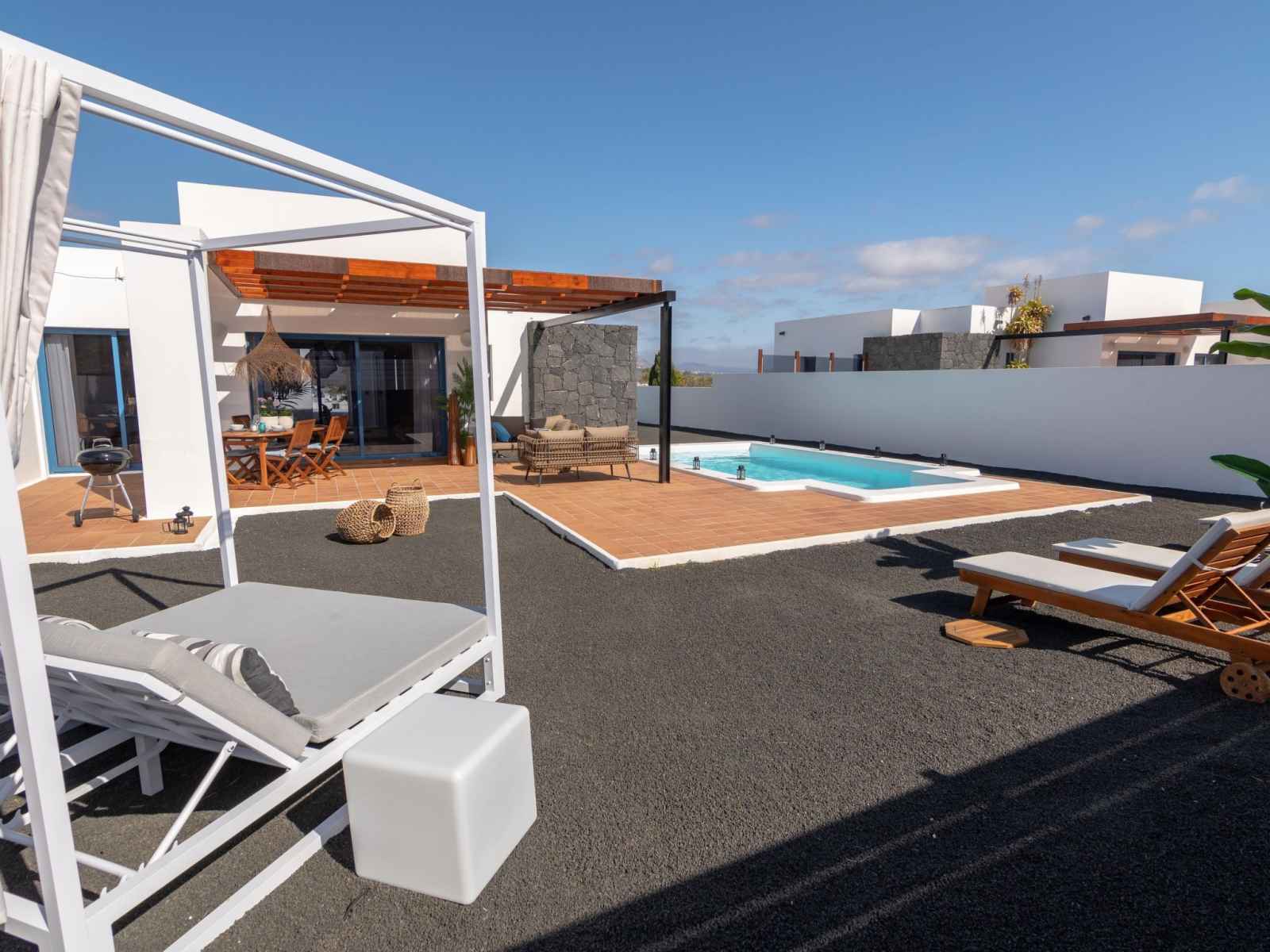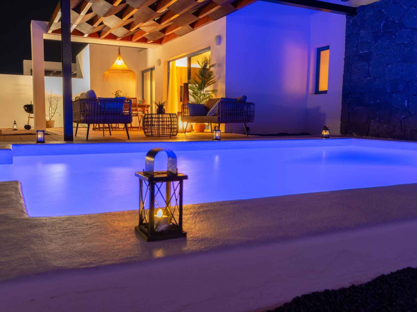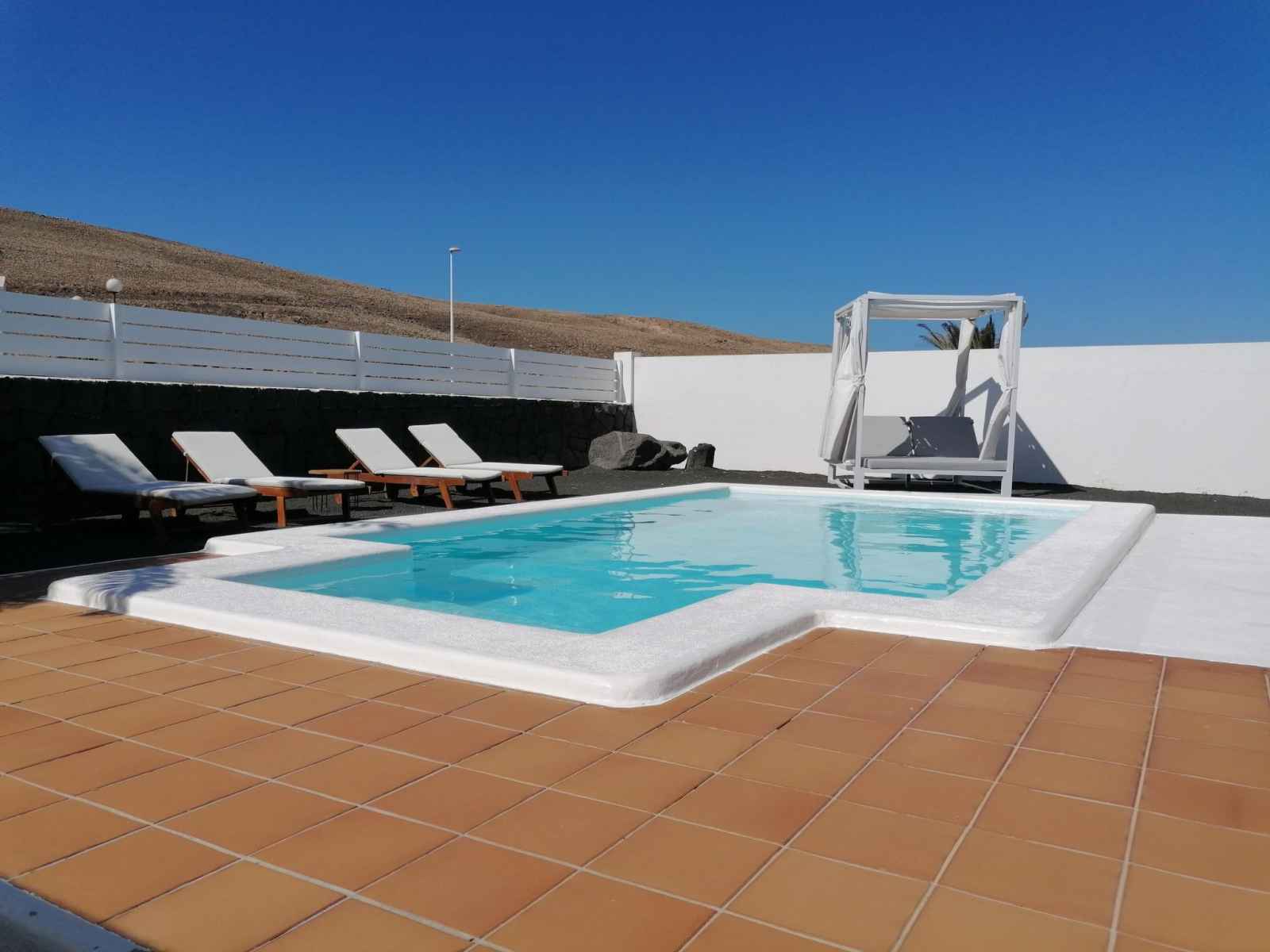 Bellavista à 3 km de playa blanca: belle maison mitoyenne "bellavista". À 2.5 km de la mer. a usage privé: terrain 500 m2, piscine rectangulaire, chauffée (6 x 4 m, disponibilité saisonnière: 01.jan. - 31.dec.) avec marches intérieures. barbecue. sentier en escalier (14 marches) jusqu'à la maison. supermarché 500 m, restaurant 1.5 km,