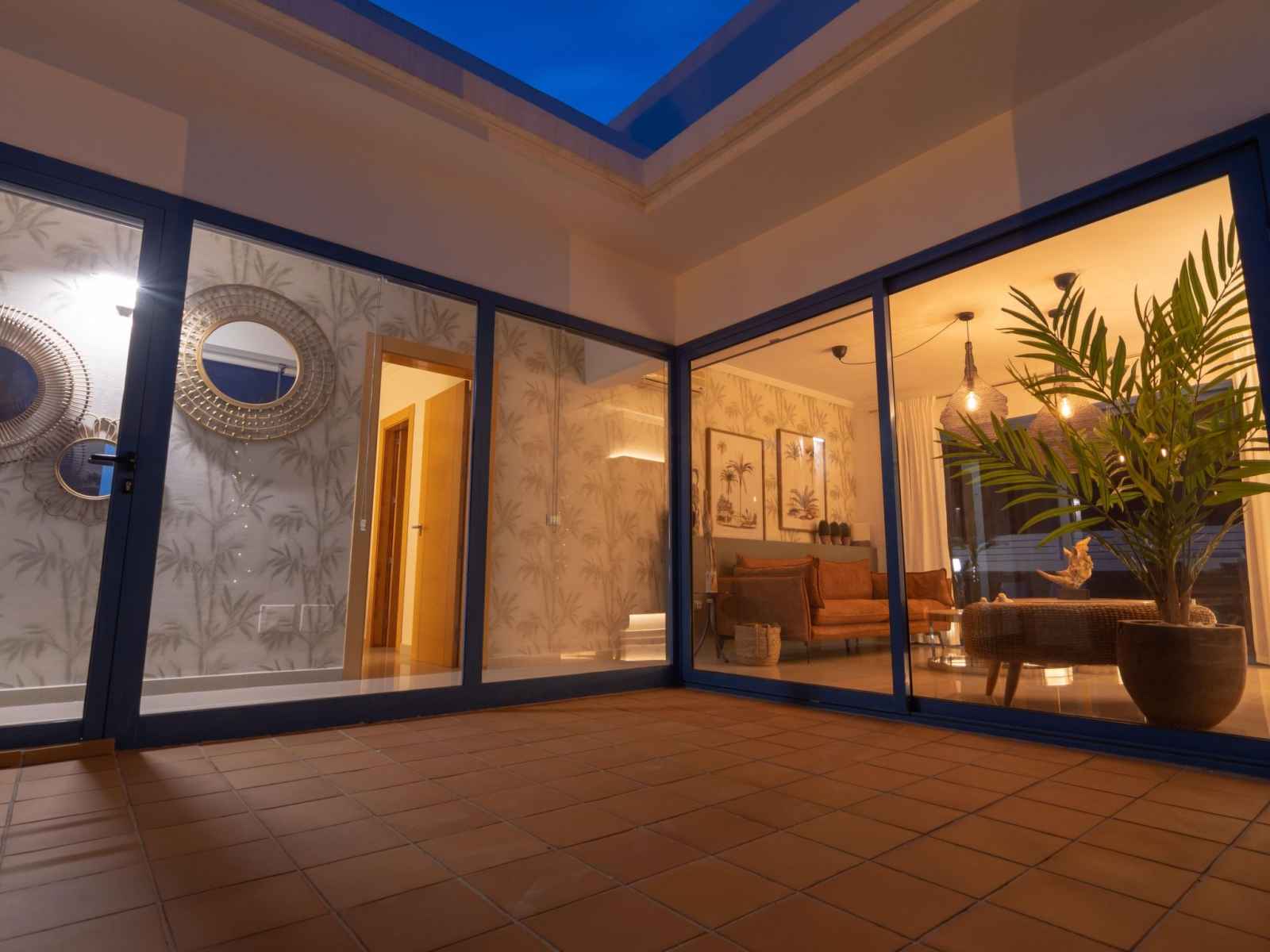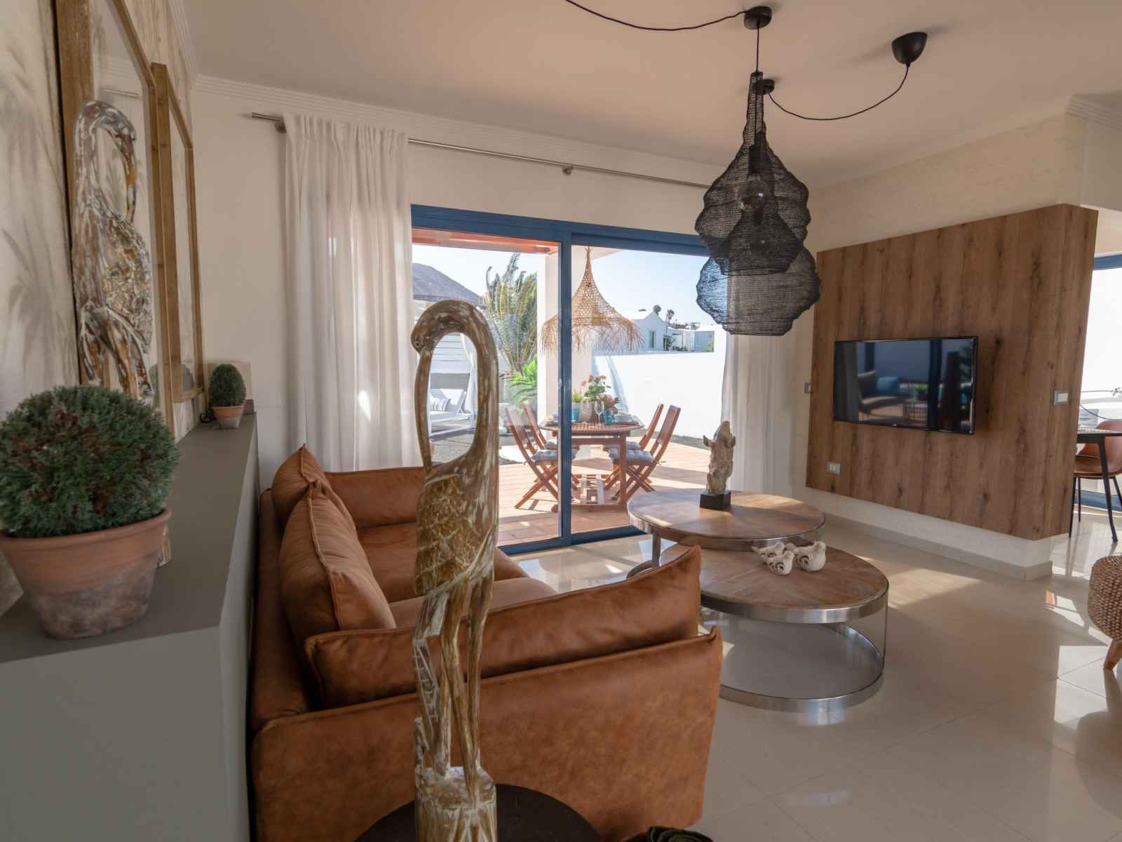 "guajara", maison mitoyenne 3 pièces 65 m2. aménagement fonctionnel et confortable: séjour/salle à manger avec tv (satellite), télévision numérique, écran plat et air-conditionné. sortie sur la terrasse, sur la piscine. 1 chambre avec 1 grand-lit (150 cm, longueur 190 cm), bain/wc et air-conditionné. 1 chambre avec 2 lits (90 cm,