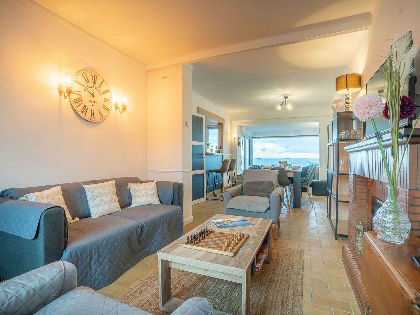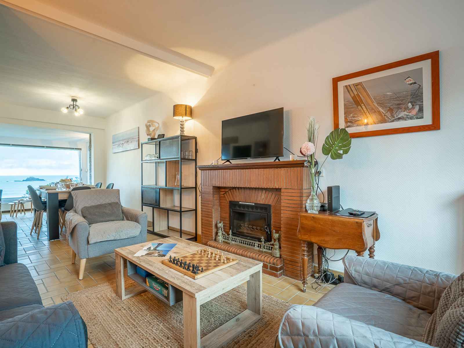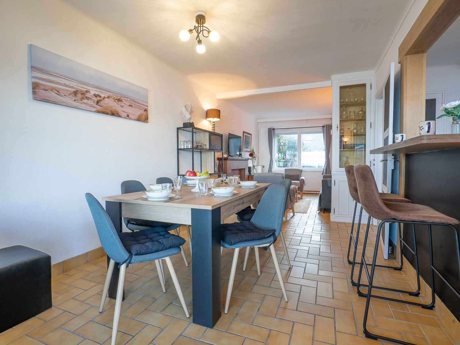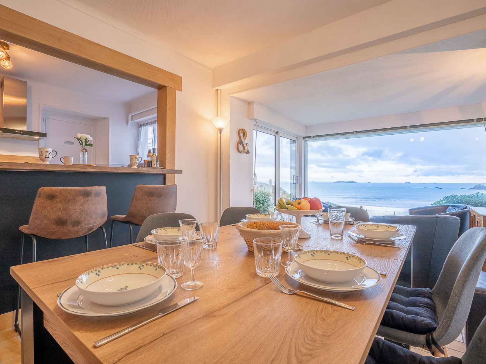 "la longue vue", maison mitoyenne 4 pièces 90 m2 sur 2 niveaux. logement idéal pour 4 adultes + 2 enfants. clair, aménagement confortable et de bon goût: séjour/salle à manger avec tv (écran plat). sortie sur la terrasse. cuisine ouverte (four, lave-vaisselle, 3 plaques à induction, grille-pain, bouilloire électrique, micro-ondes,