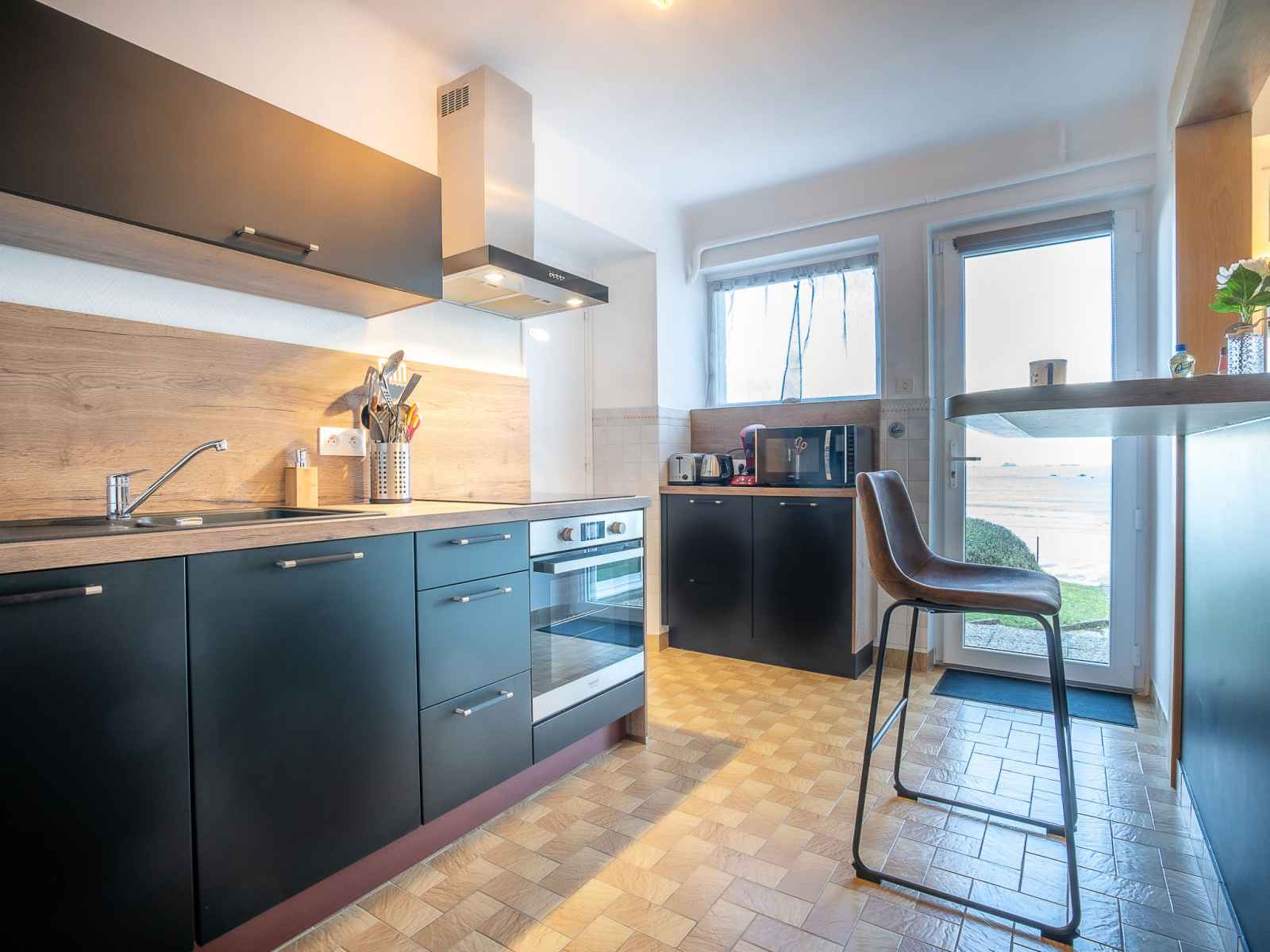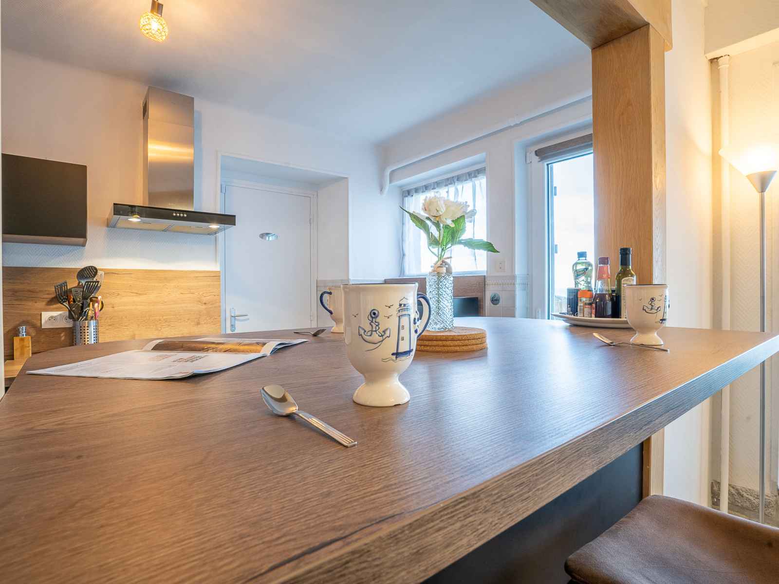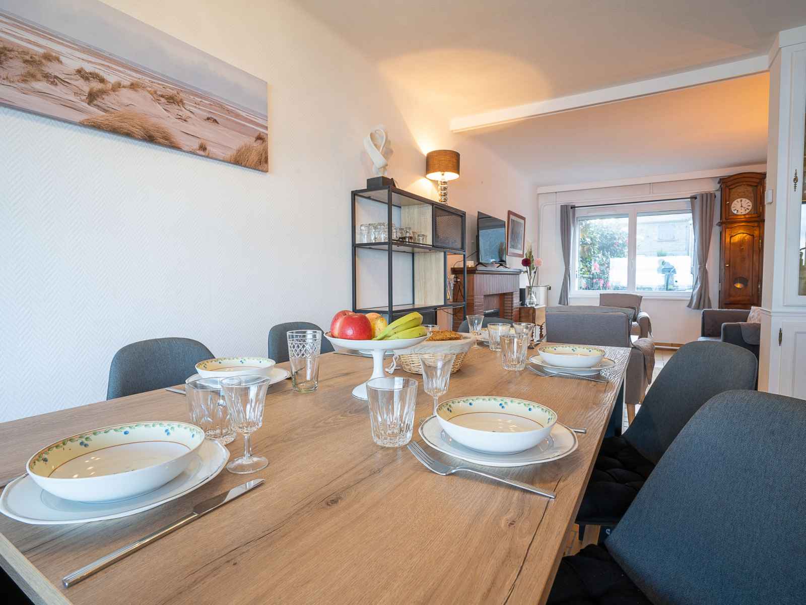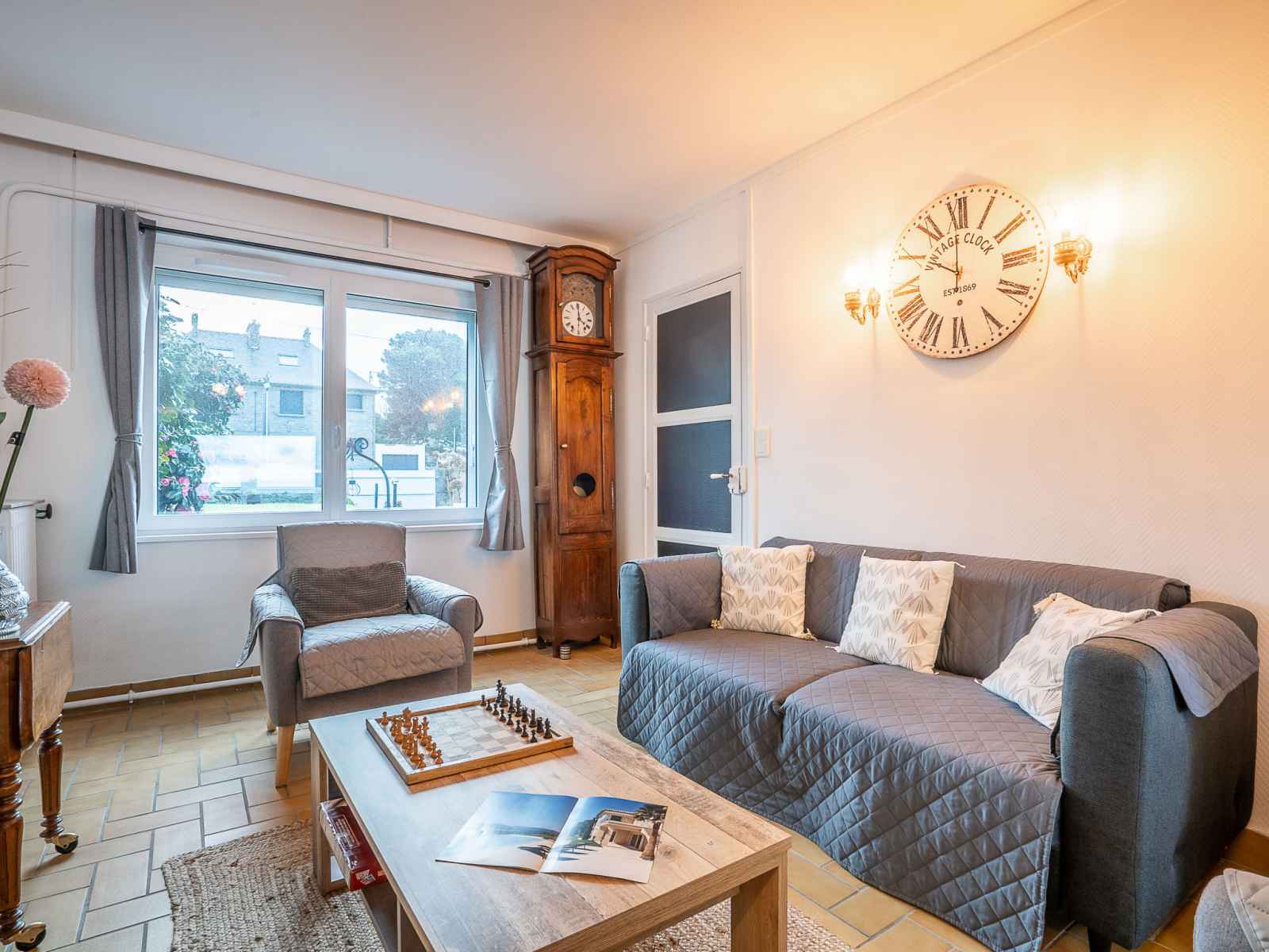 "la longue vue", maison mitoyenne 4 pièces 90 m2 sur 2 niveaux. logement idéal pour 4 adultes + 2 enfants. clair, aménagement confortable et de bon goût: séjour/salle à manger avec tv (écran plat). sortie sur la terrasse. cuisine ouverte (four, lave-vaisselle, 3 plaques à induction, grille-pain, bouilloire électrique, micro-ondes,