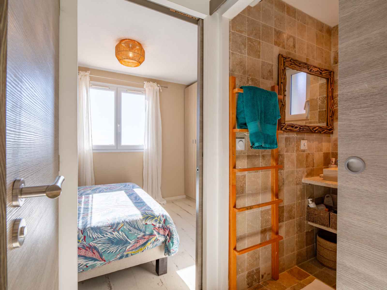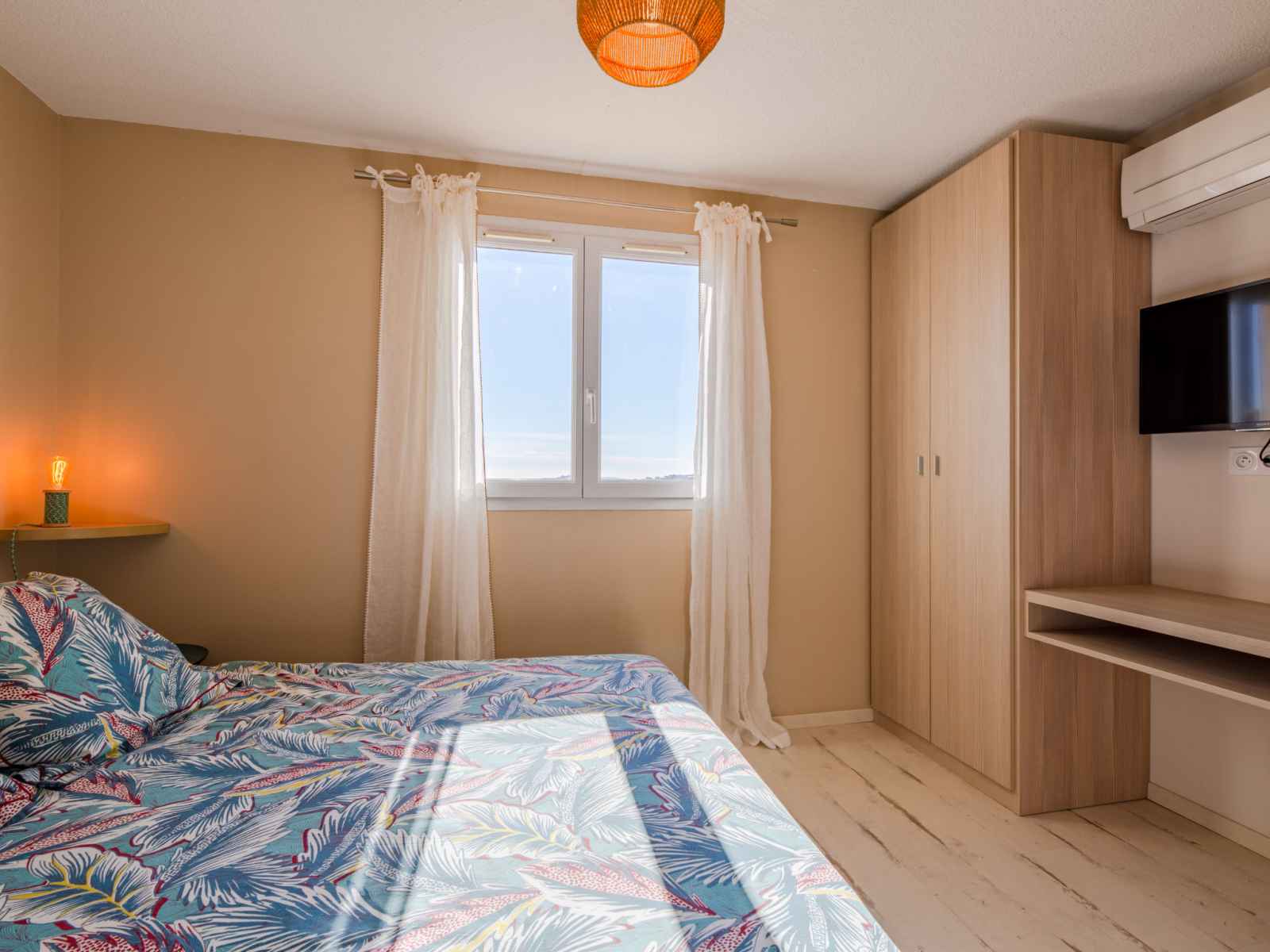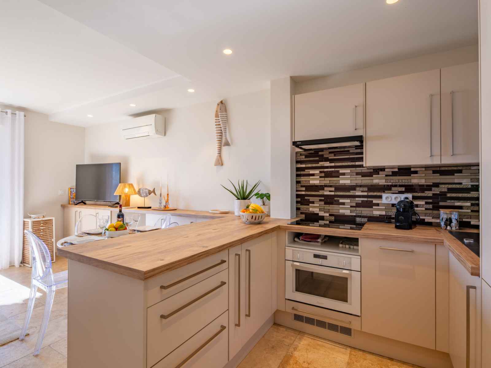 "le bougainvillier", maison mitoyenne 3 pièces 48 m2 sur 2 niveaux, situation sud. logement idéal pour 2 adultes + 2 enfants. rénovée en 2024, aménagement moderne et de bon goût: séjour/salle à manger 22 m2 avec véranda avec tv (écran plat), air-conditionné. sortie sur la loggia. cuisine ouverte (four, lave-vaisselle, 4 plaques