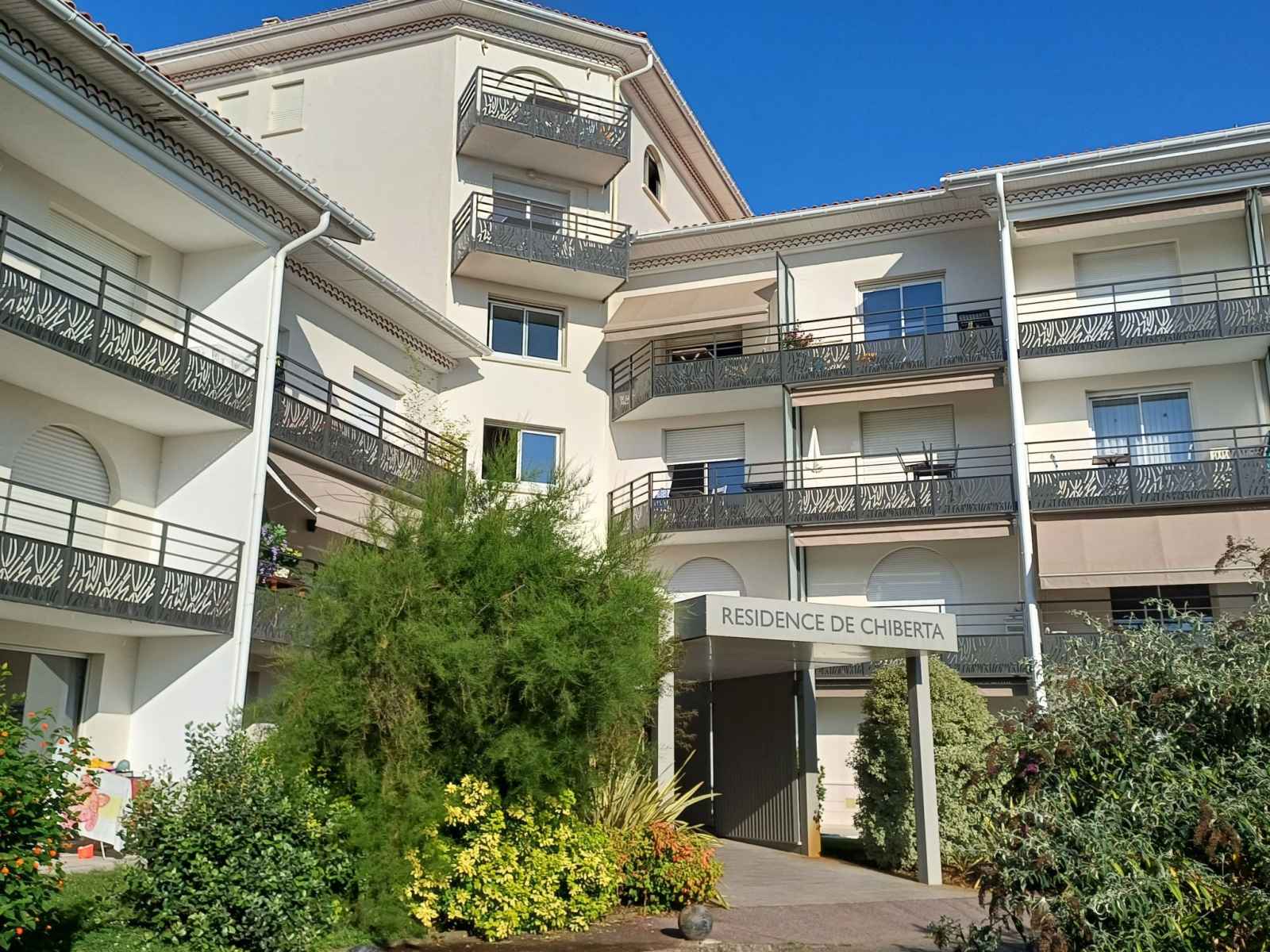 Anglet à 4 km de biarritz: résidence "golf de chiberta", de 3 étages. dans le quartier de chiberta, situation tranquille dans un quartier résidentiel, à 500 m de la forêt, à 500 m de la mer, à 100 m du lac, à 500 m de la plage, en bordure du terrain de golf. en commun: piscine cloturée (25 x 12 m, 310 m2, disponibilité saisonnière: