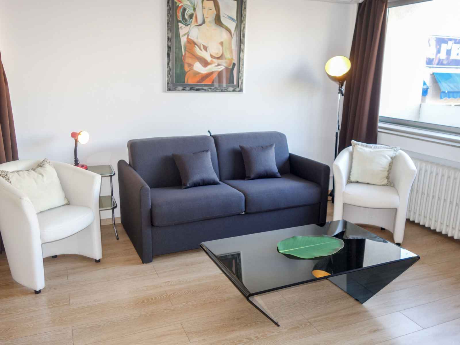 Studio 35 m2 au 1er étage. partiellement rénové en 2015, aménagement fonctionnel et confortable: séjour/salle à manger avec 1 divan-lit double (140 cm, longueur 190 cm), tv et écran plat. sortie sur le balcon. cuisine (four, lave-vaisselle, 4 plaques vitrocéramiques, micro-ondes, cafetière électrique). douche/wc. air-conditionné,