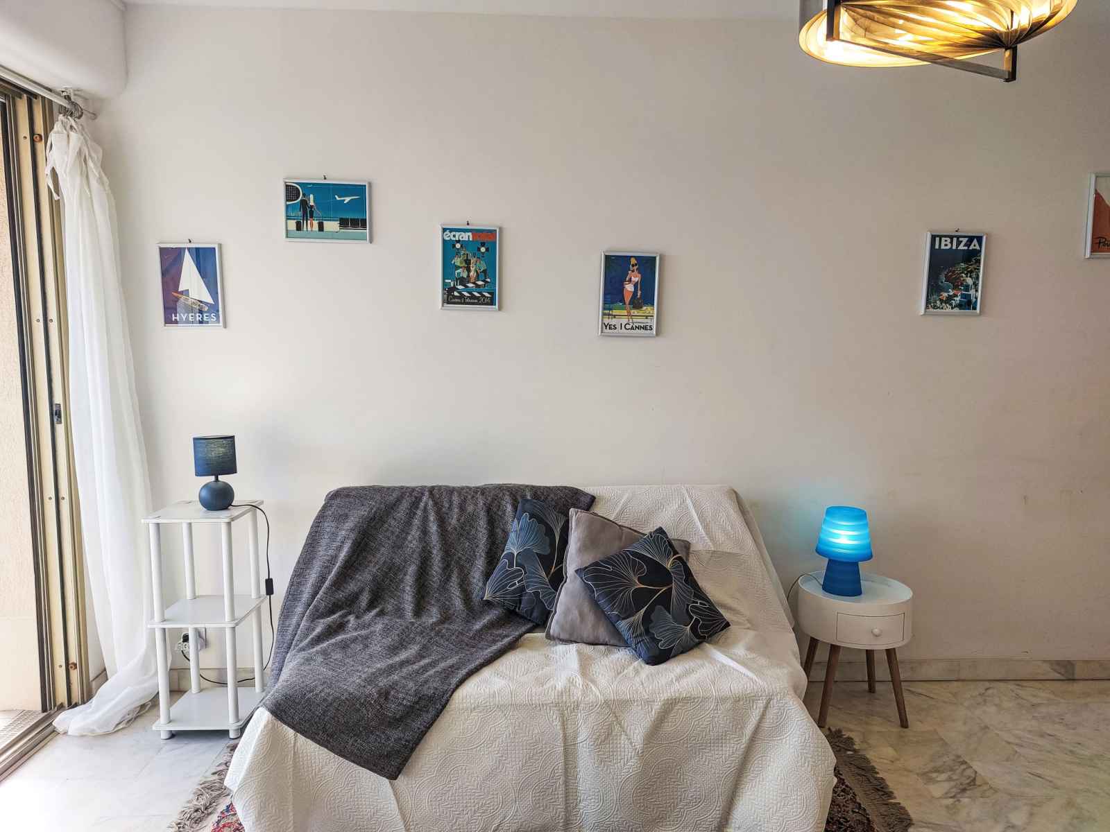 Studio 28 m2 au 5ème étage. aménagement confortable et agréable: séjour/salle à manger avec 1 divan-lit double (140 cm, longueur 190 cm), tv. sortie sur la terrasse. cuisine (2 plaques vitrocéramiques, micro-ondes, cafetière électrique, capsules pour machine à café (nespresso) (non incluses)). sortie sur la terrasse. douche/wc.