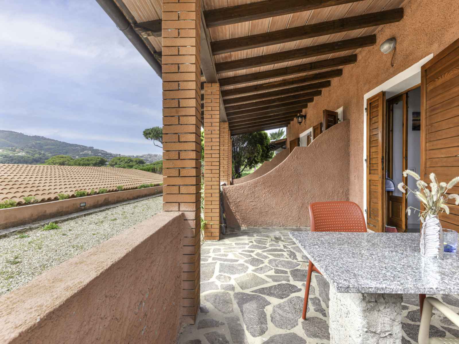 m2 (clôturé) avec plantes et arbres, jardin naturel, piscine (14 x 7 m, profondeur 110 - 250 cm, disponibilité saisonnière: 01.avr. - 30.oct.). douche extérieure, bain à remous , terrasse, barbecue. infrastructures de la maison: réception, connexion wifi, lave-linge (en commun, en sus), location de bicyclettes. place de parking sur le terrain. magasin d'alimentation 3 km, arrêt de bus 230 m, ferry "portoferraio" 17 km, plage de sable "naregno" 800 m. veuillez noter: résidence avec portail électrique. le propriétaire habite sur le même terrain.