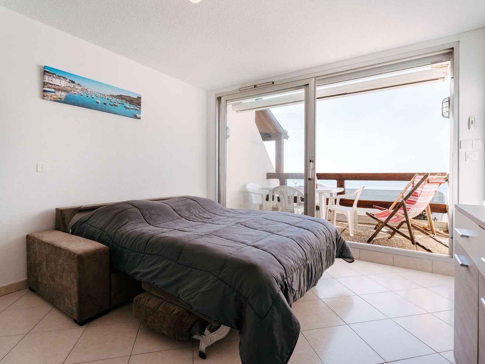 Rapido : couchage 2 personnes, 140, couette) donnant sur le balcon orienté Sud et vue mer (mobilier de jardin, store banne)