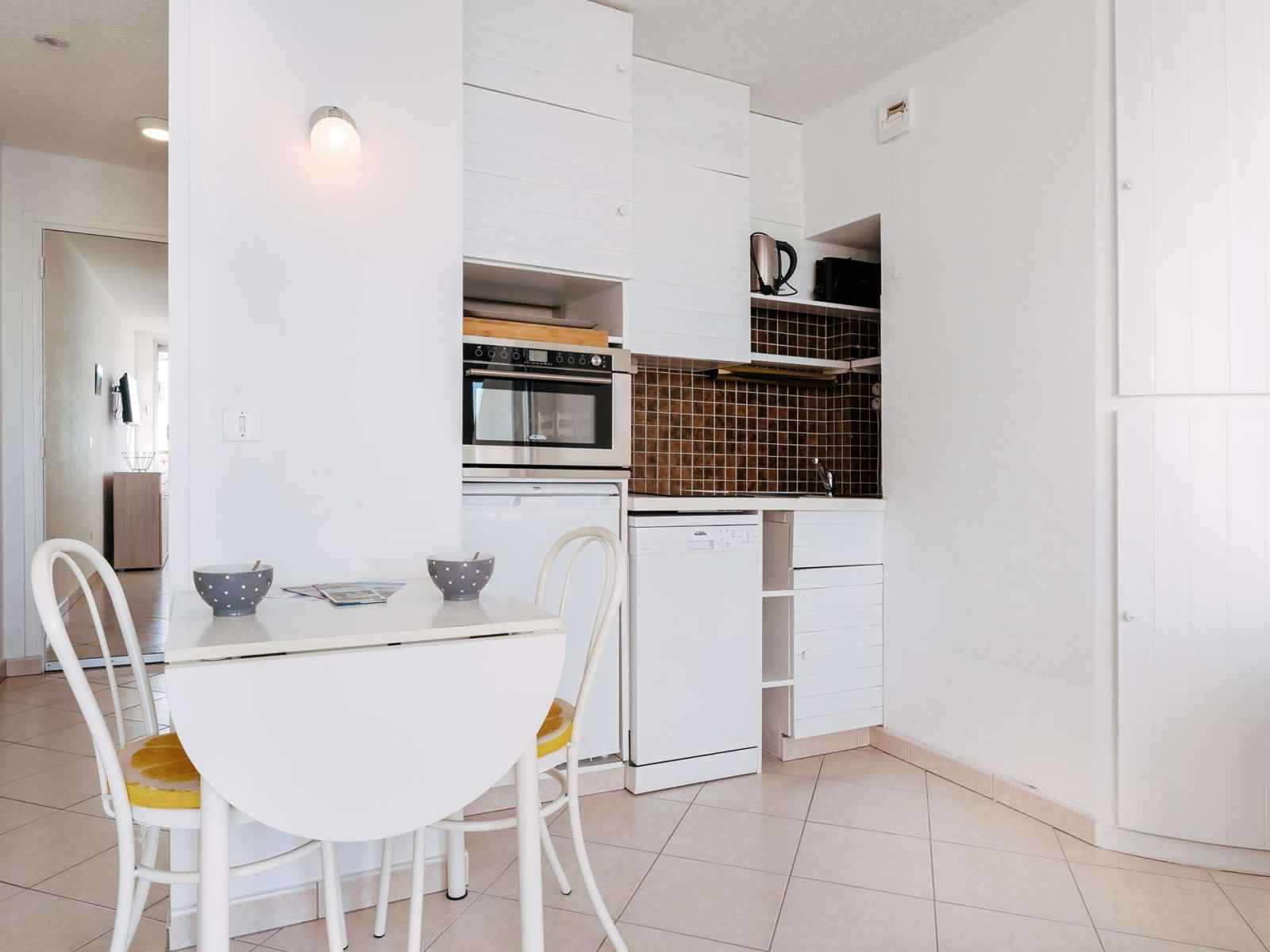 - Coin cuisine ouvert et équipé (plaque induction 2 feux, combiné four micro-ondes, lave-vaisselle, réfrigérateur-freezer)
